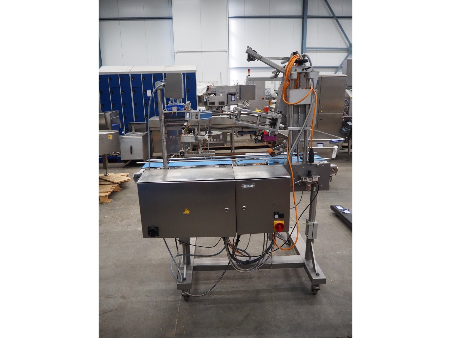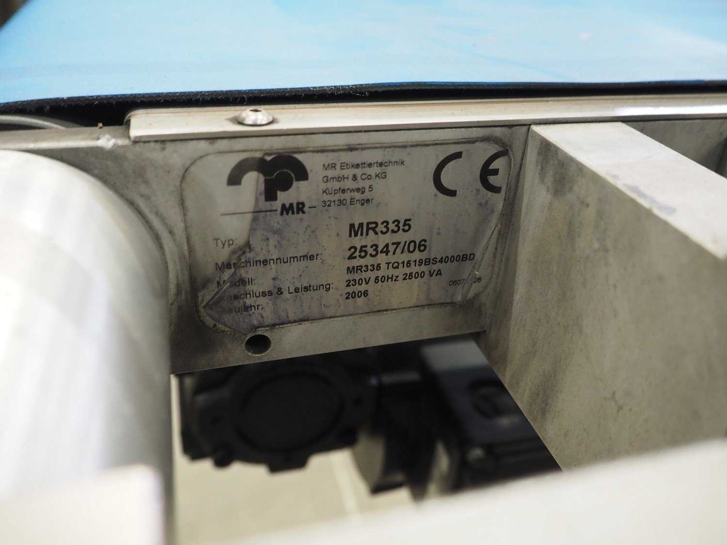 MR Etikettiertechnik mobile labelling machine, type: MR335, machine number: 25347/06, year of construction: 2006, 230 V, 50 Hz, 2500 VA, plastic belt, belt width: 195 mm, total dimensions: 1500 mm x 800 mm x 1800 mm. Kavel locatie: Schouwrooij 29, 5281 RE Boxtel, Nederland