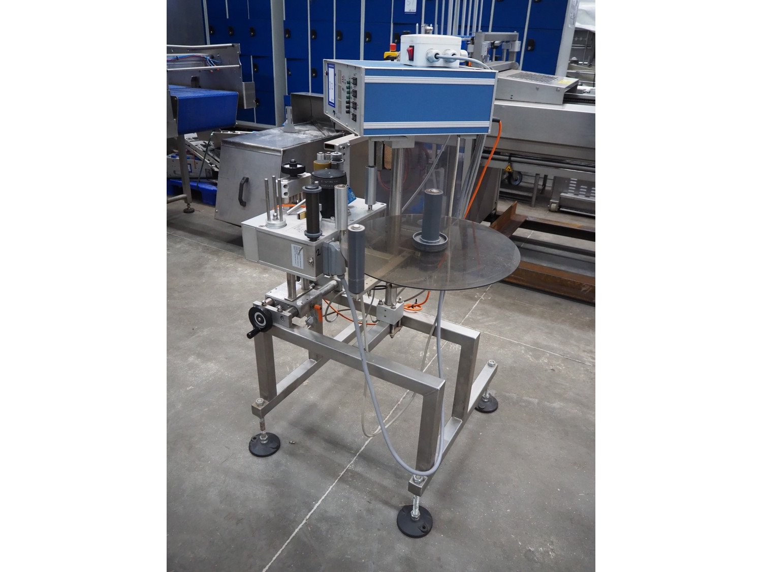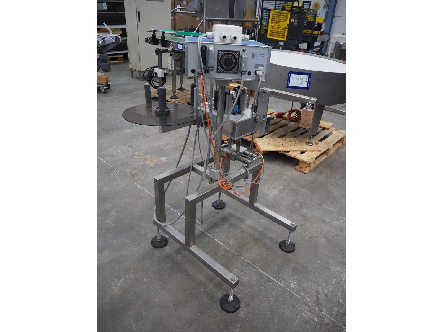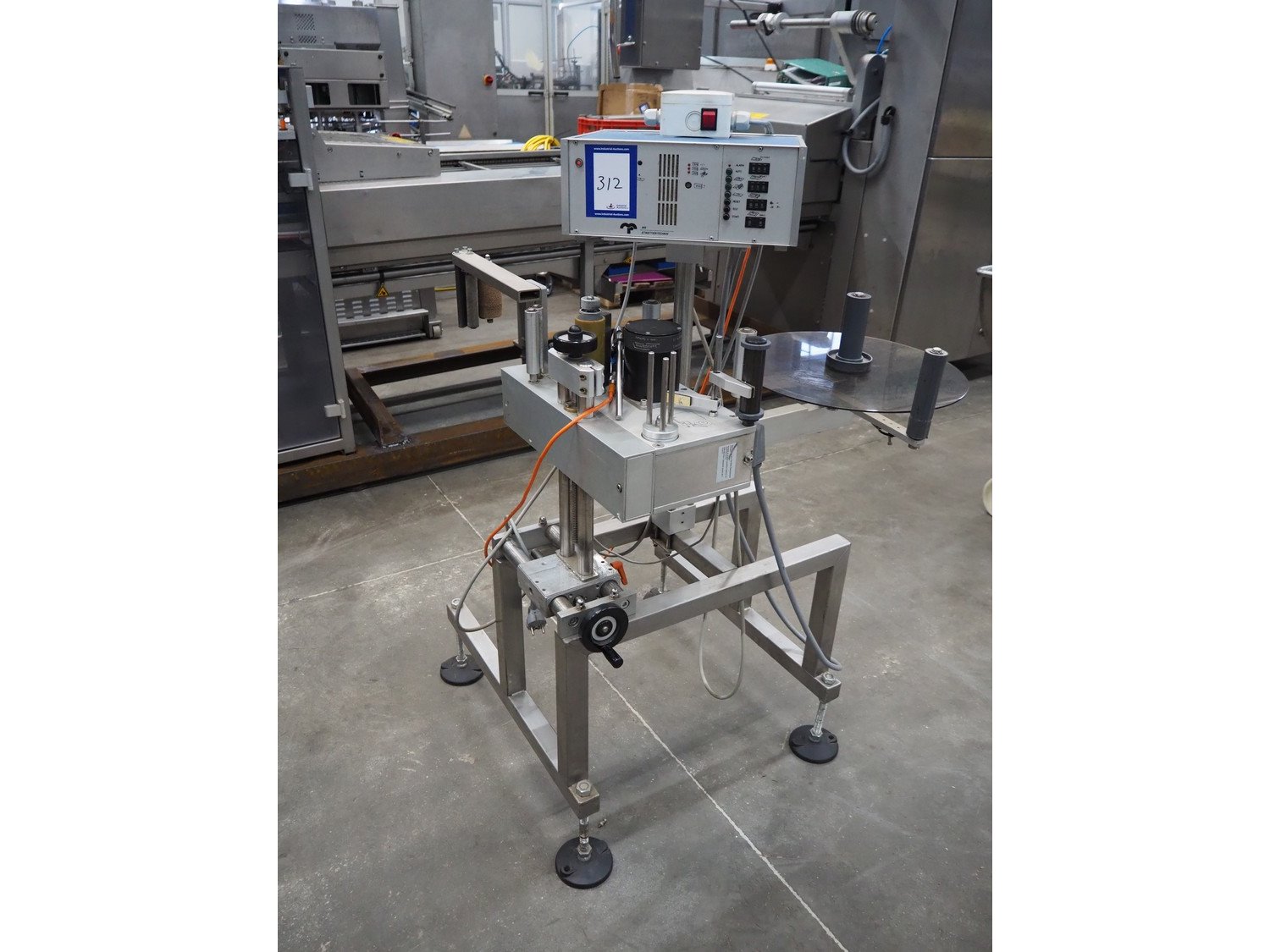 MR Etikettiertechnik labelling machine, type: MB000-00-00, plastic belt, belt width: 380 mm, total dimensions: 1250 mm x 1300 mm x 1350 mm. Kavel locatie: Schouwrooij 29, 5281 RE Boxtel, Nederland