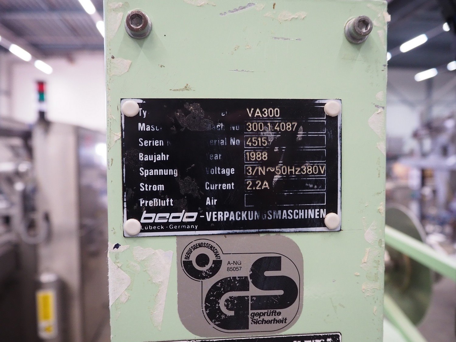 Bedo-Verpackungsmaschinen box closing machine, model: VA 300, serial number: 4515, year of construction: 1988, 380 V, 3 Ph, 50 Hz, 2.2 A, adjustable clearance, dimensions: 2100 mm x 1000 mm x 2150 mm. Kavel locatie: Schouwrooij 29, 5281 RE Boxtel, Nederland
