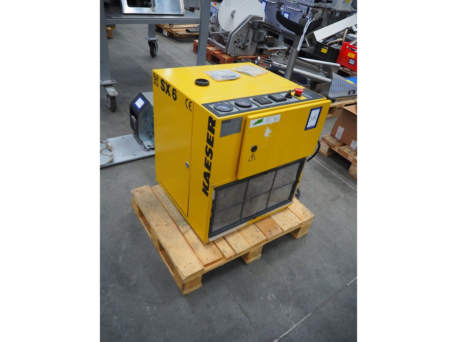 Kaeser Kompressoren GmbH air screw compressor, type: SX 6, serial number: 2452, year of construction: 2001, 4 kW, dimensions: 600 mm x 570 mm x 660 mm. Kavel locatie: Schouwrooij 29, 5281 RE Boxtel, Nederland