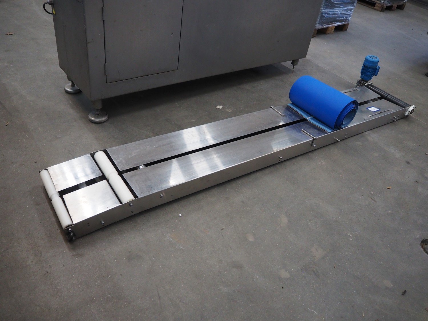 S/s frame for transport belt, plastic belt, belt width: 400 mm, total dimensions: 2870 mm x 600 mm x 320 mm. Kavel locatie: Schouwrooij 29, 5281 RE Boxtel, Nederland