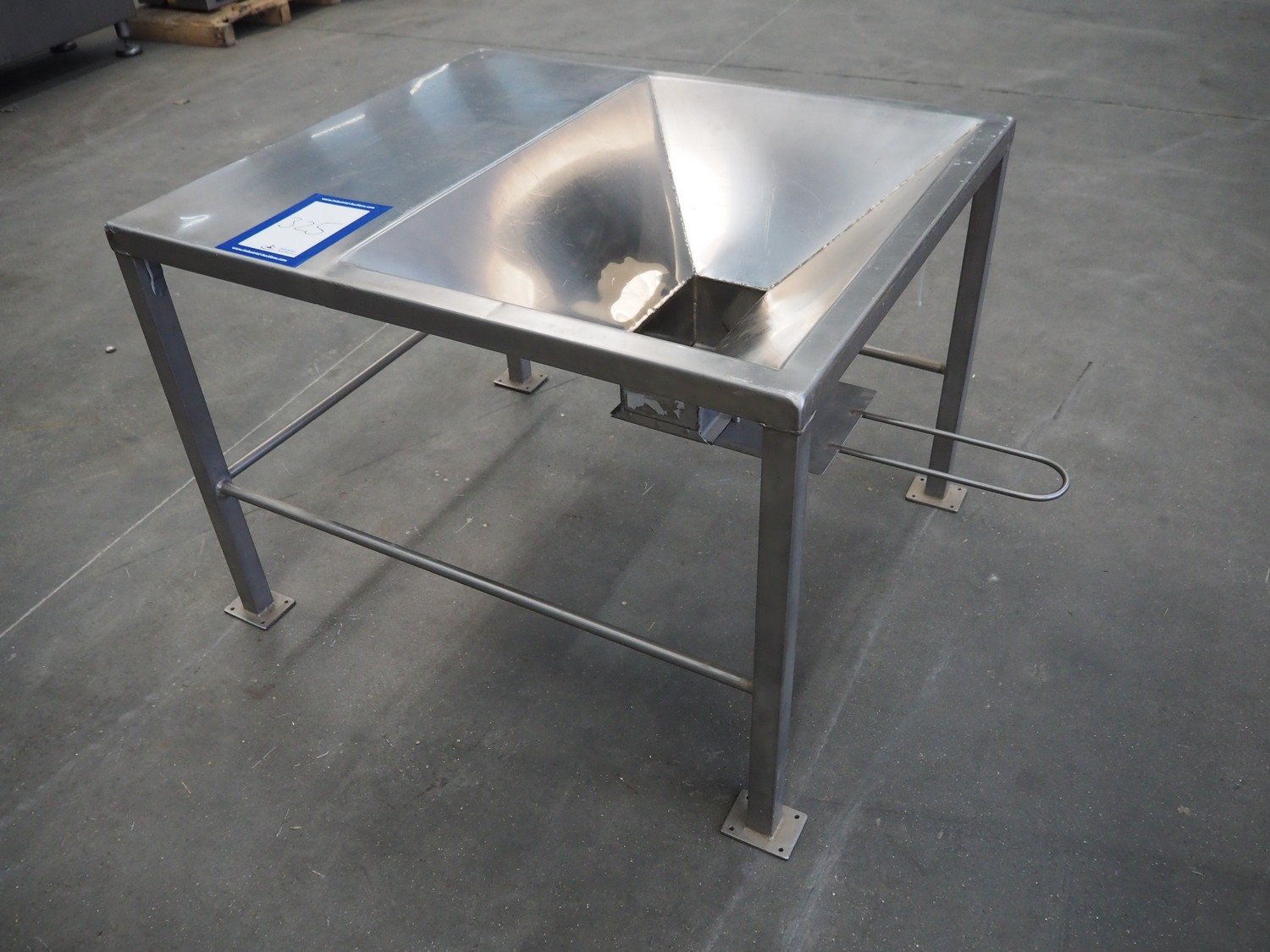 S/s infeed table, dimensions: 900 mm x 1050 mm x 800 mm. Kavel locatie: Schouwrooij 29, 5281 RE Boxtel, Nederland