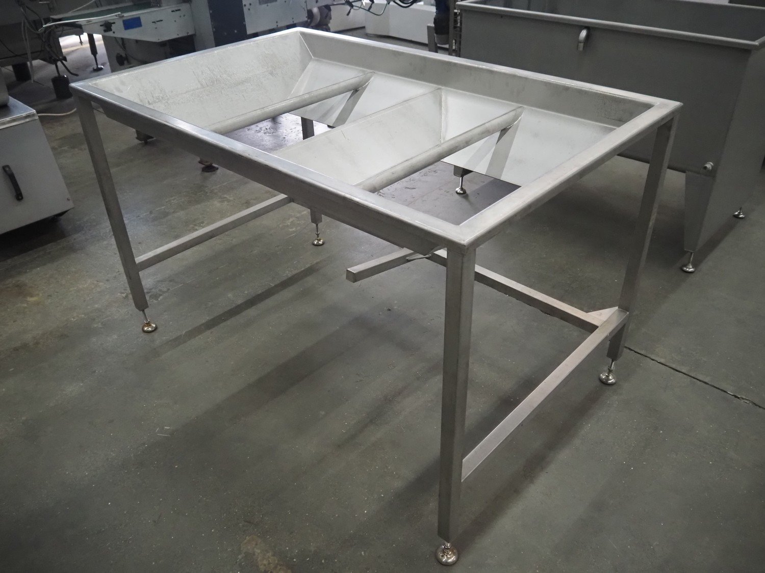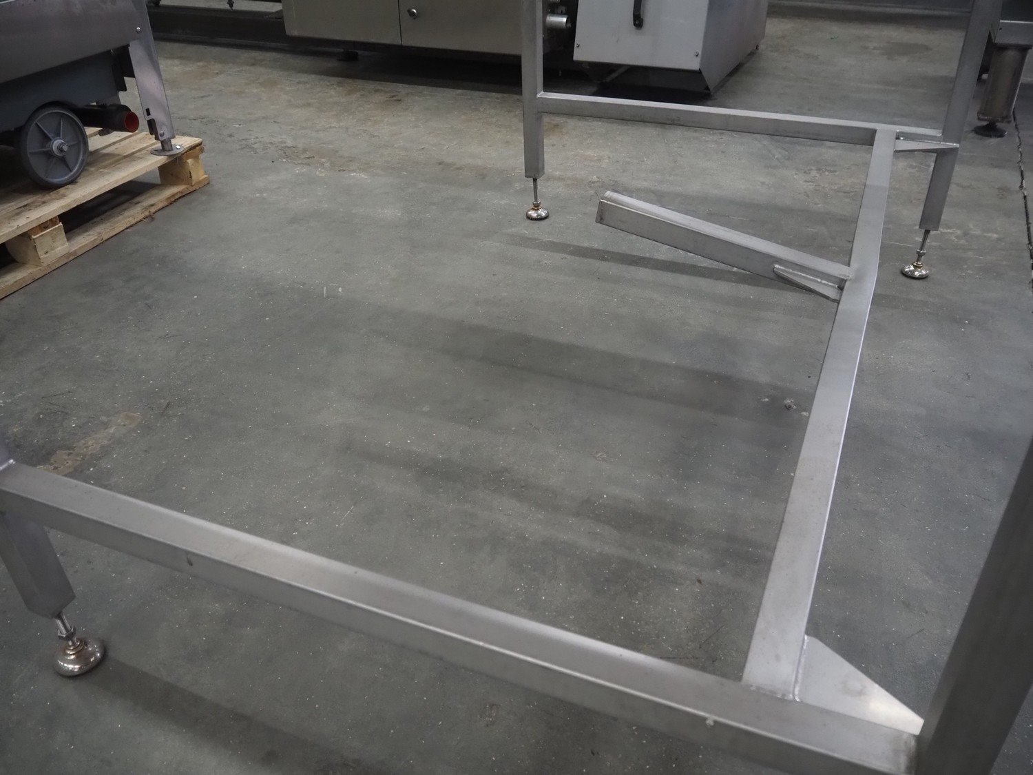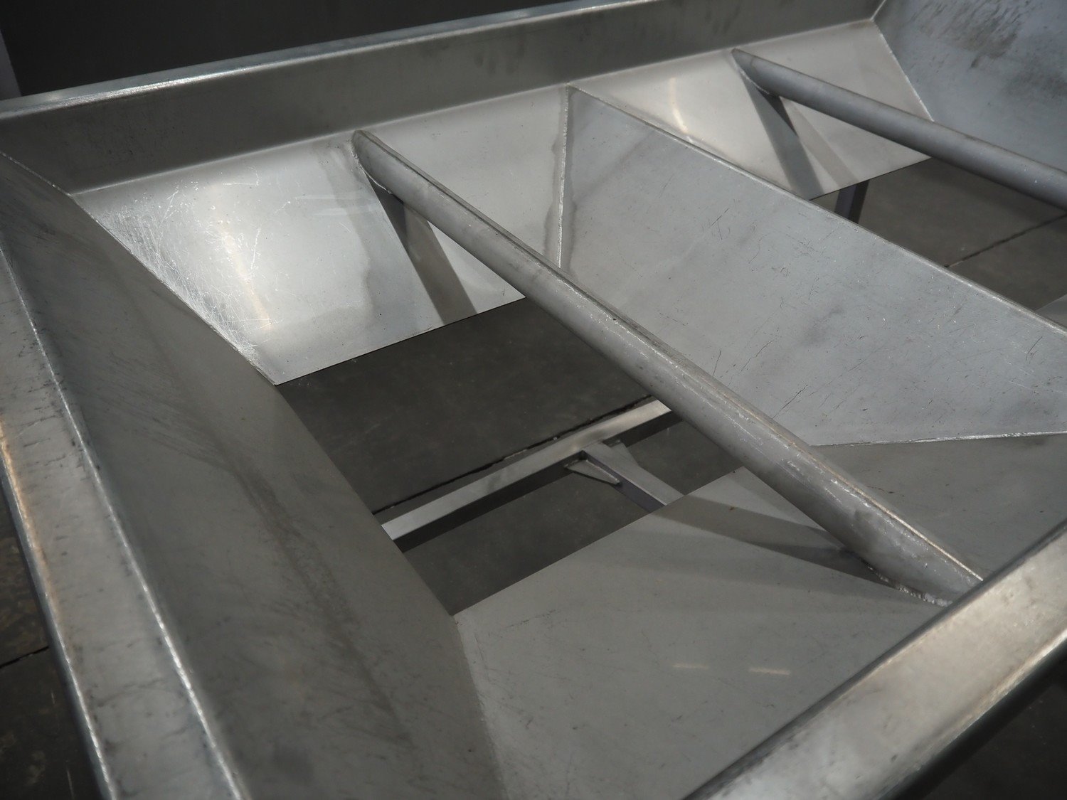 Thissen & Stecher BV s/s infeed hopper to empty baskets, dimensions: 1600 mm x 1000 mm x 1000 mm. Kavel locatie: Schouwrooij 29, 5281 RE Boxtel, Nederland