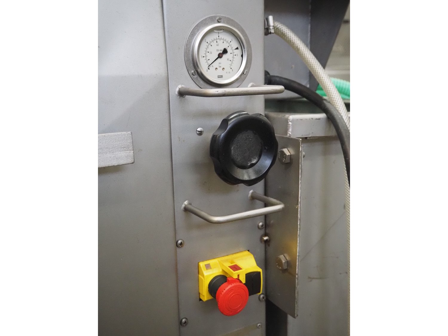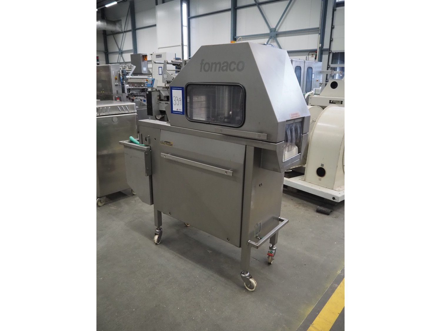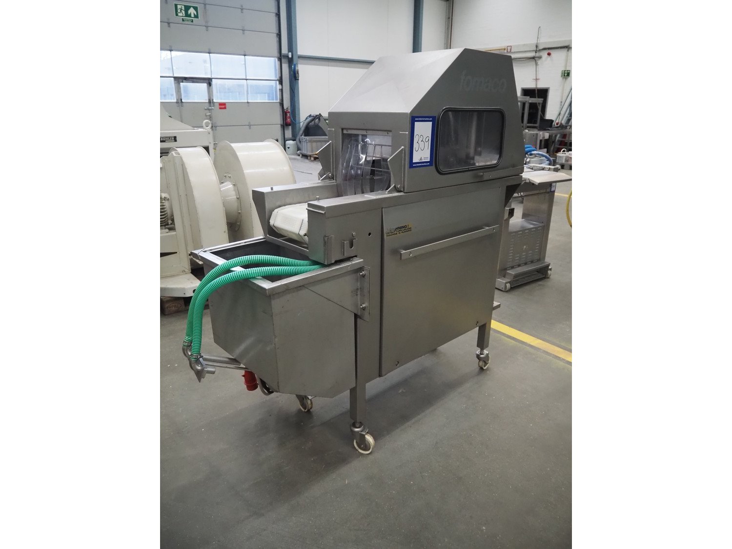 Fomaco mobile injector, model: FGM 16/64 F, serial number: 7063, year of construction: 1997, 380 V, 3 Ph, 50 Hz, 2.8 A, plastic mesh belt, belt width: 240 mm, clearance: 280 mm x 130 mm, 64 needles, total dimensions: 1600 mm x 620 mm x 1700 mm. Kavel locatie: Schouwrooij 29, 5281 RE Boxtel, Nederland