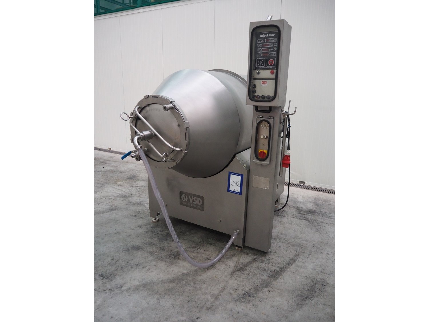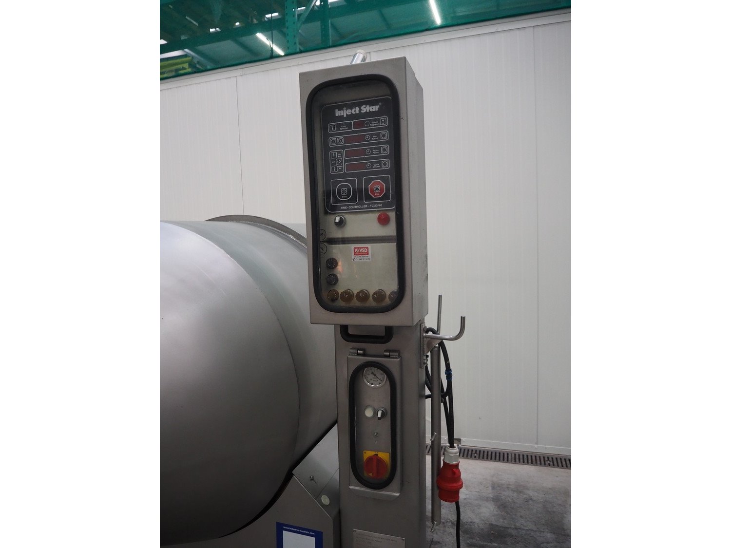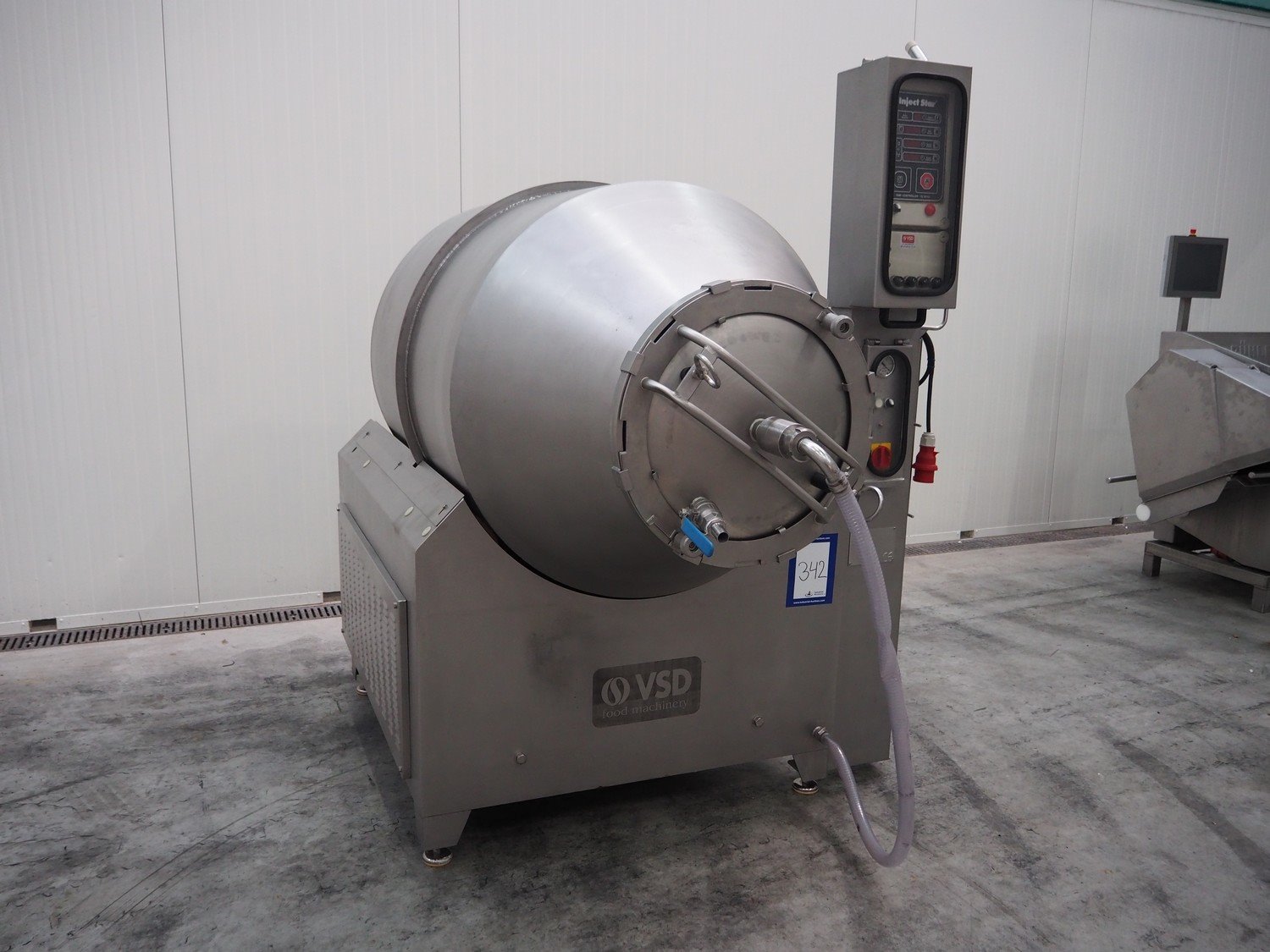 Inject Star / Pökelmaschinen Ges.m.b.H. vacuum tumbler, type: ES-1100, number: 239, year of construction: 2000, 400 V, 3 Ph, 50 Hz, 1.8 kW, dimensions: 2150 mm x 1550 mm x 2000 mm. Kavel locatie: Schouwrooij 29, 5281 RE Boxtel, Nederland