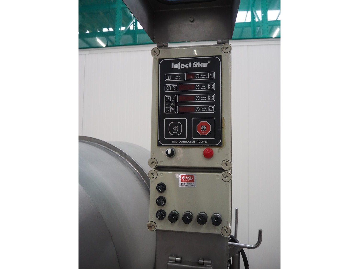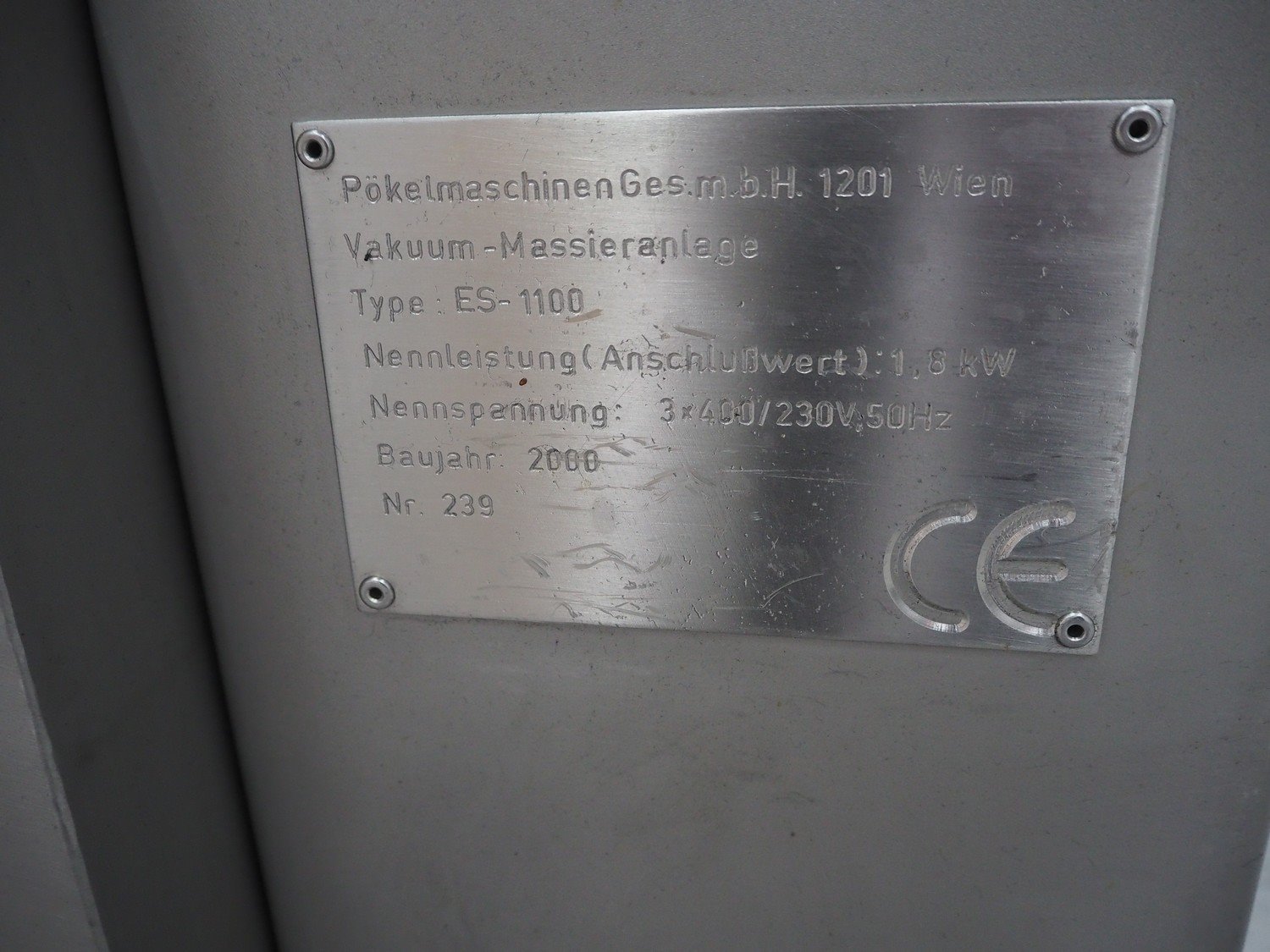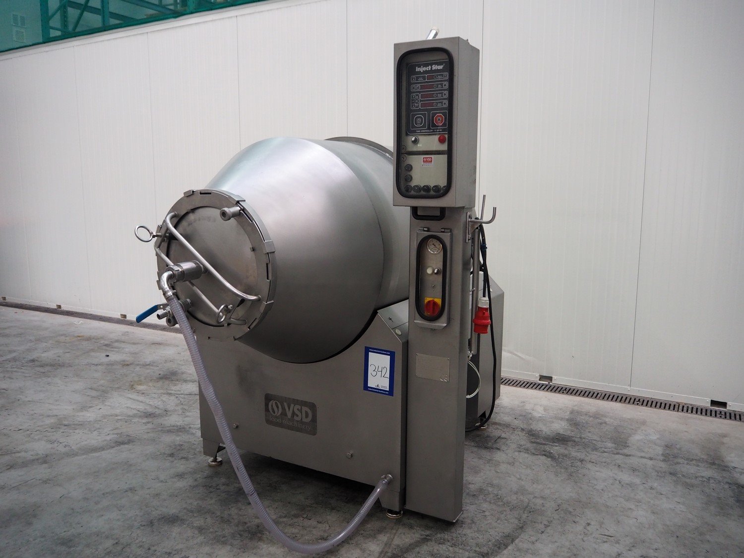 Inject Star / Pökelmaschinen Ges.m.b.H. vacuum tumbler, type: ES-1100, number: 239, year of construction: 2000, 400 V, 3 Ph, 50 Hz, 1.8 kW, dimensions: 2150 mm x 1550 mm x 2000 mm. Kavel locatie: Schouwrooij 29, 5281 RE Boxtel, Nederland
