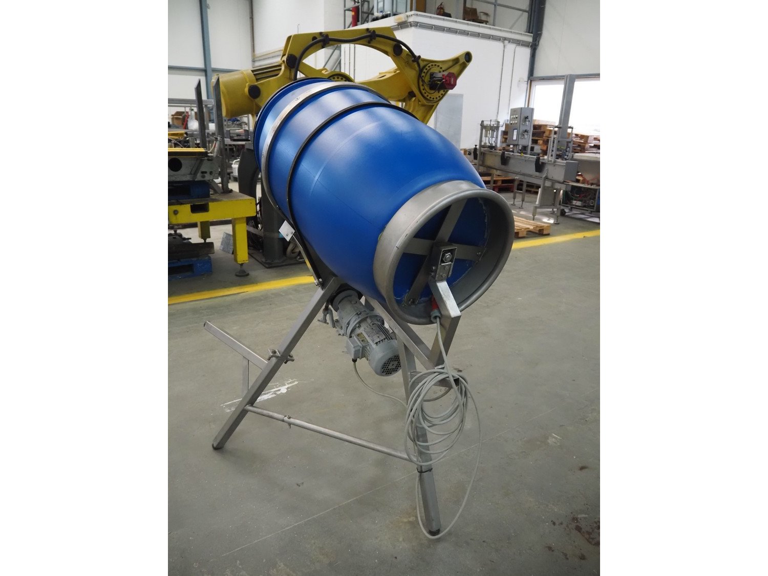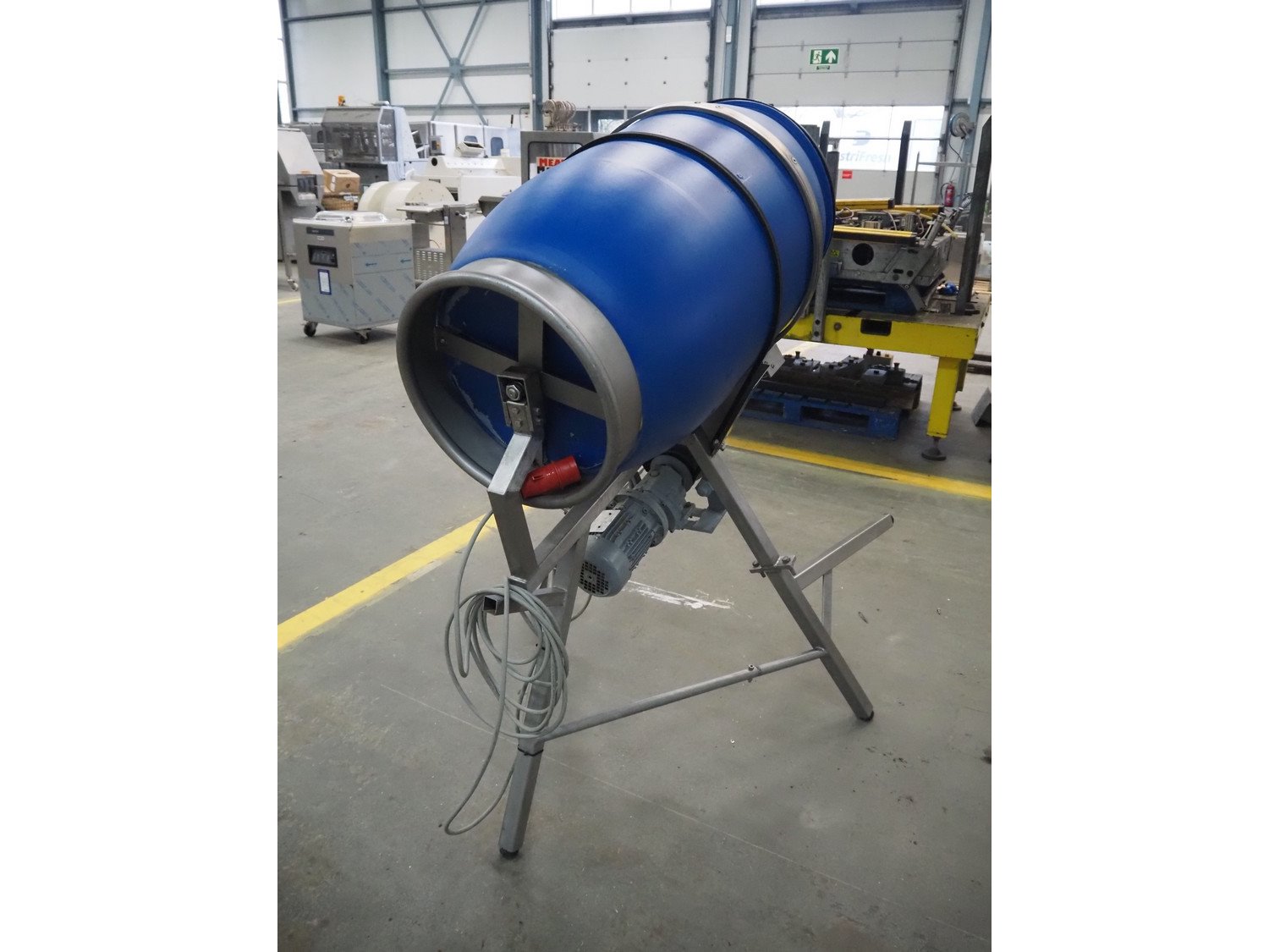 Plastic tumbler, inside dimensions: Ø 570 mm x 900 mm, total dimensions: 1000 mm x 520 mm x 750 mm. Kavel locatie: Schouwrooij 29, 5281 RE Boxtel, Nederland