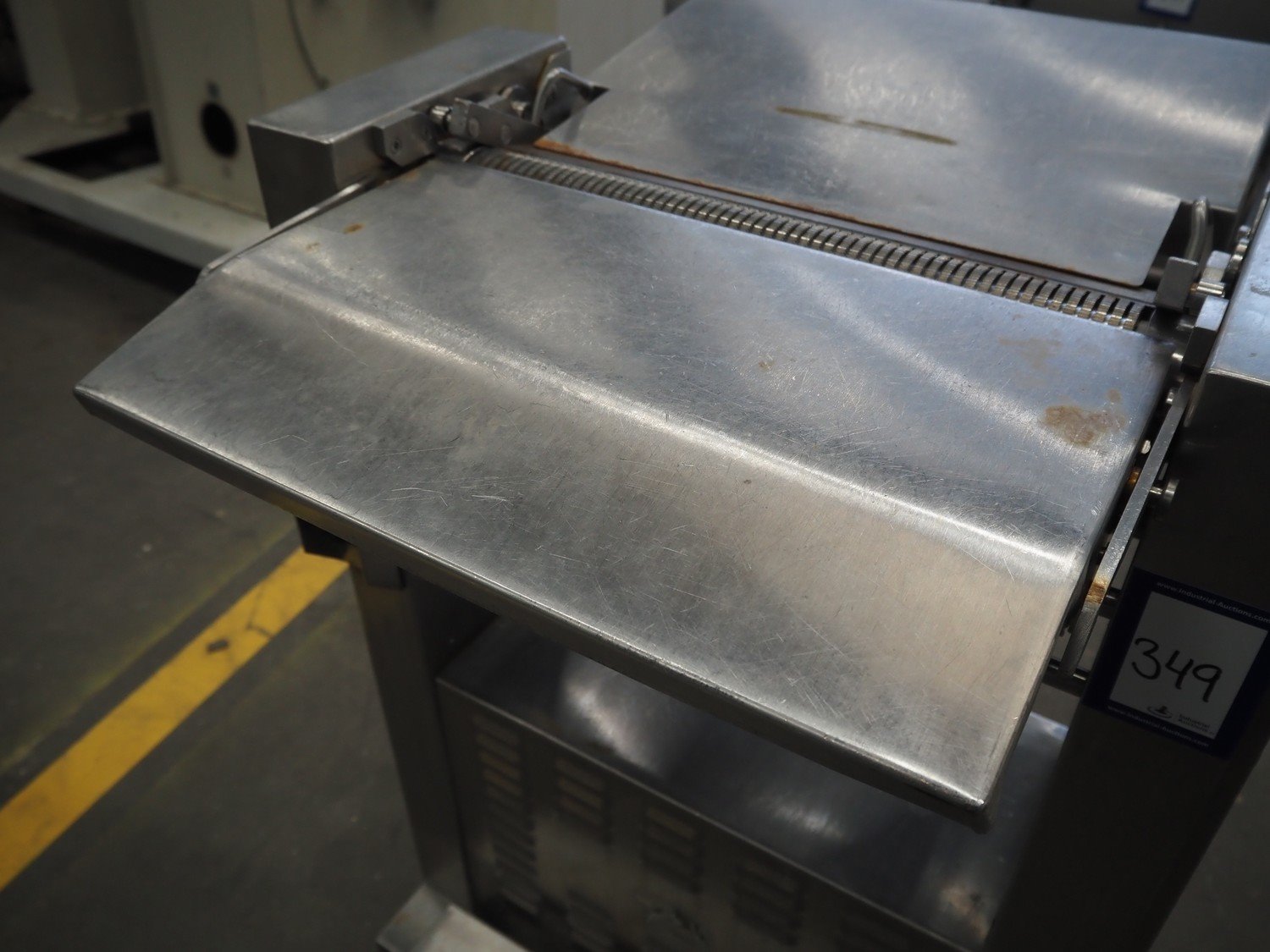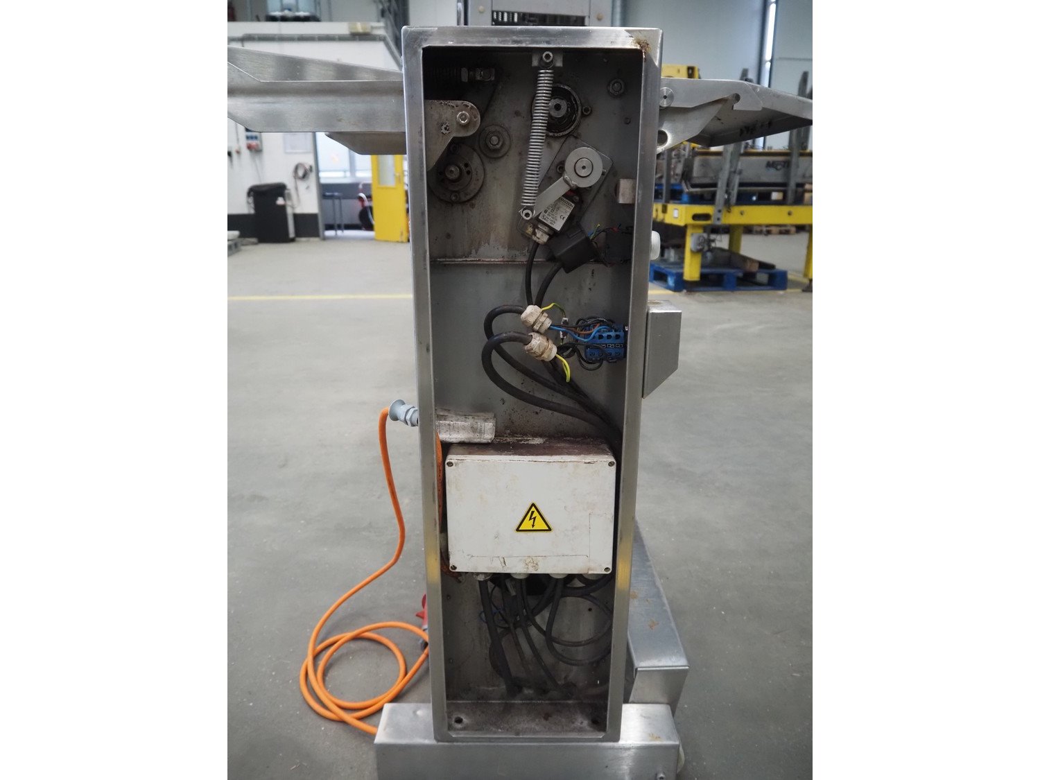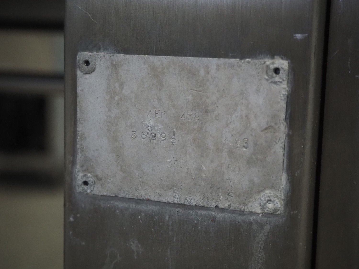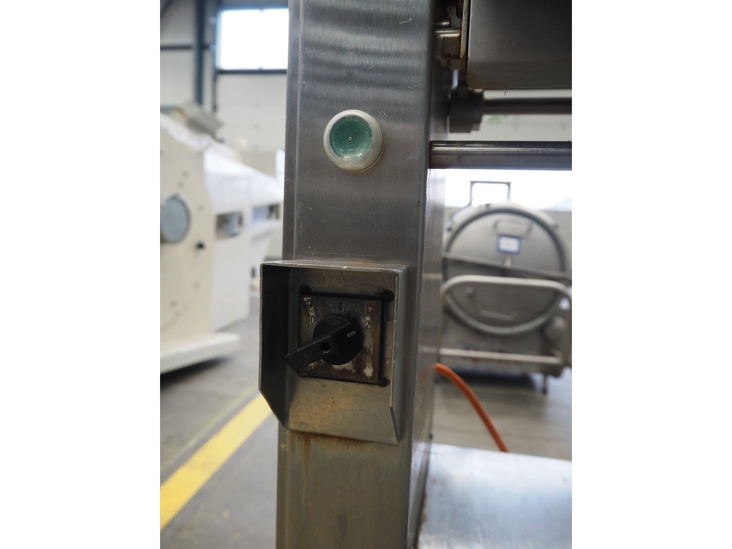 Maja-maschinenfabrik mobile skinning machine, type: AEM 438, year of construction: 1993, 380 V, 3 Ph, 50 Hz, working width: 430 mm, total dimensions: 770 mm x 720 mm x 1000 mm. Kavel locatie: Schouwrooij 29, 5281 RE Boxtel, Nederland