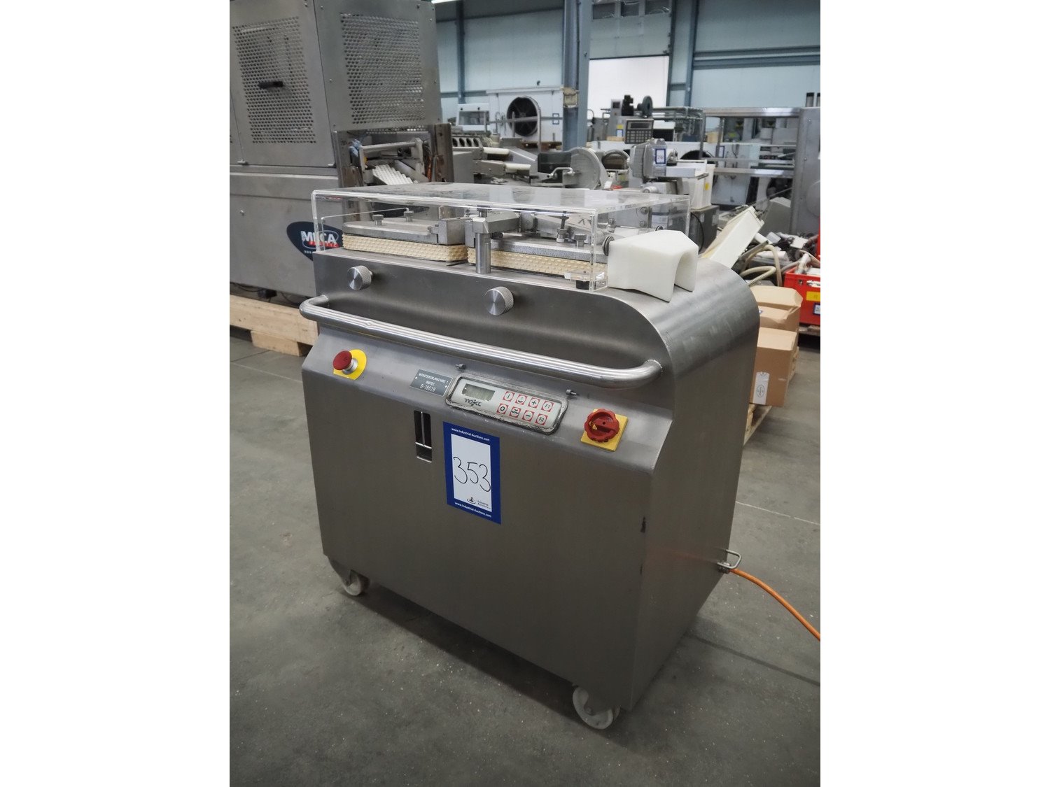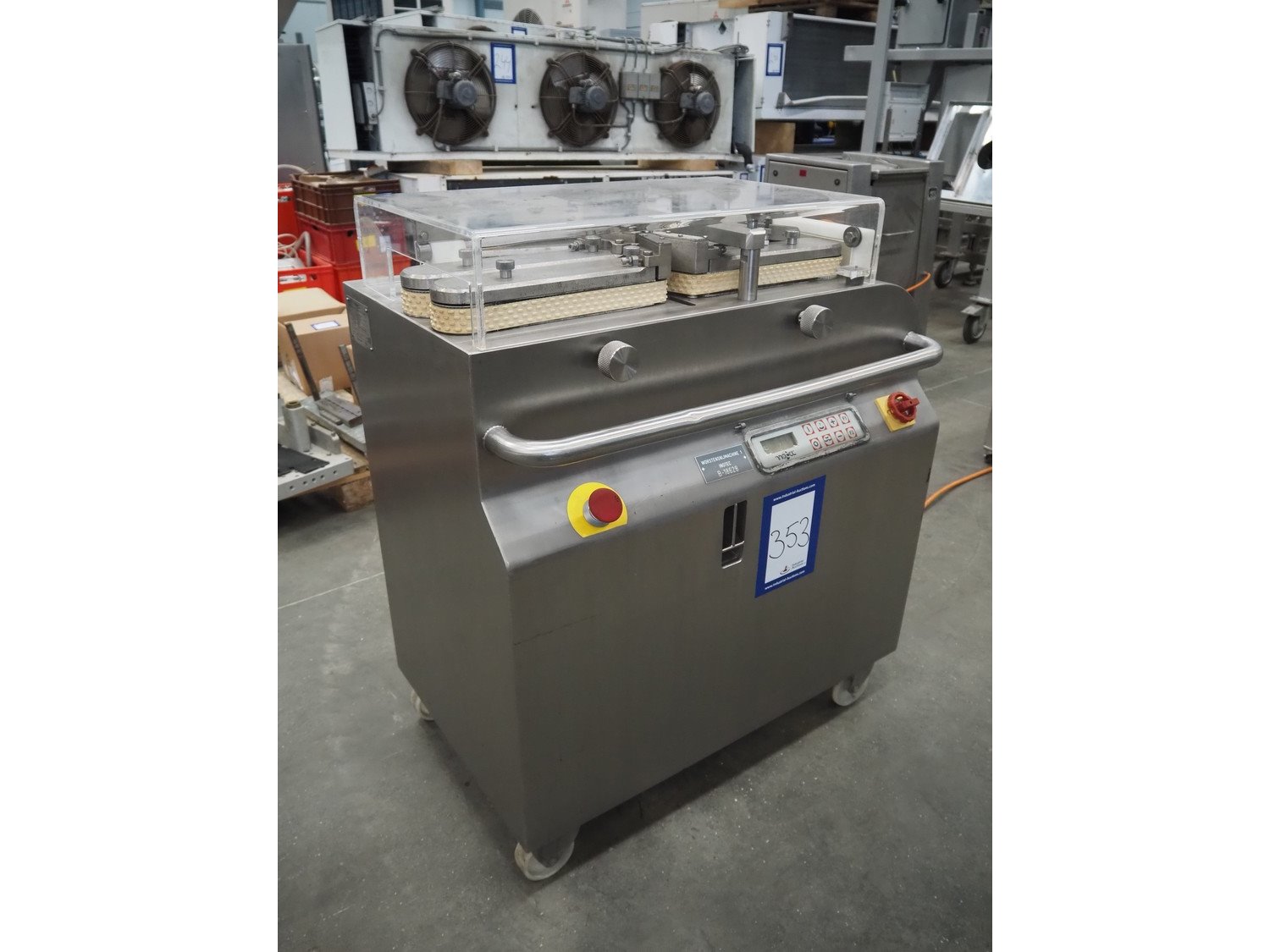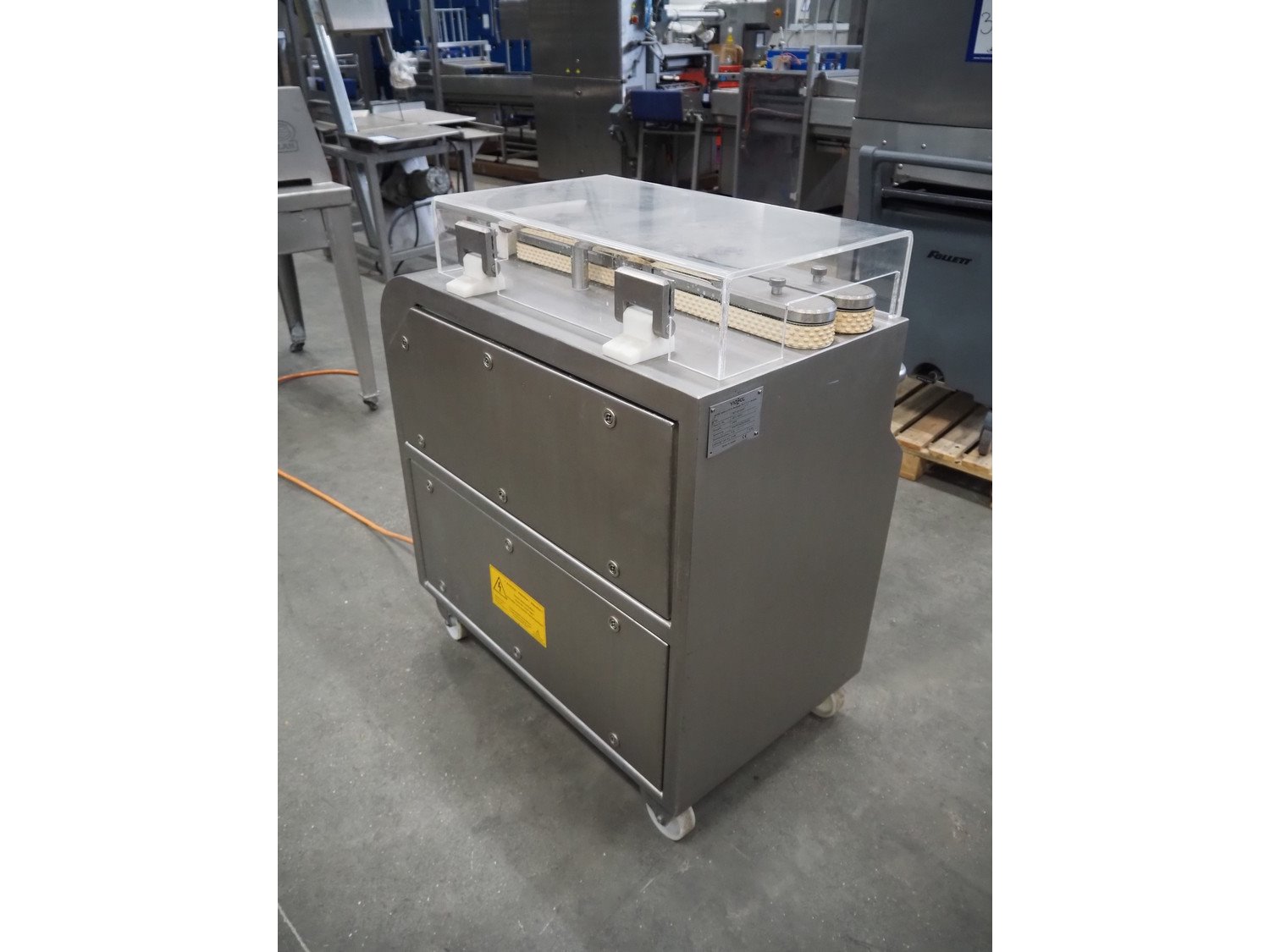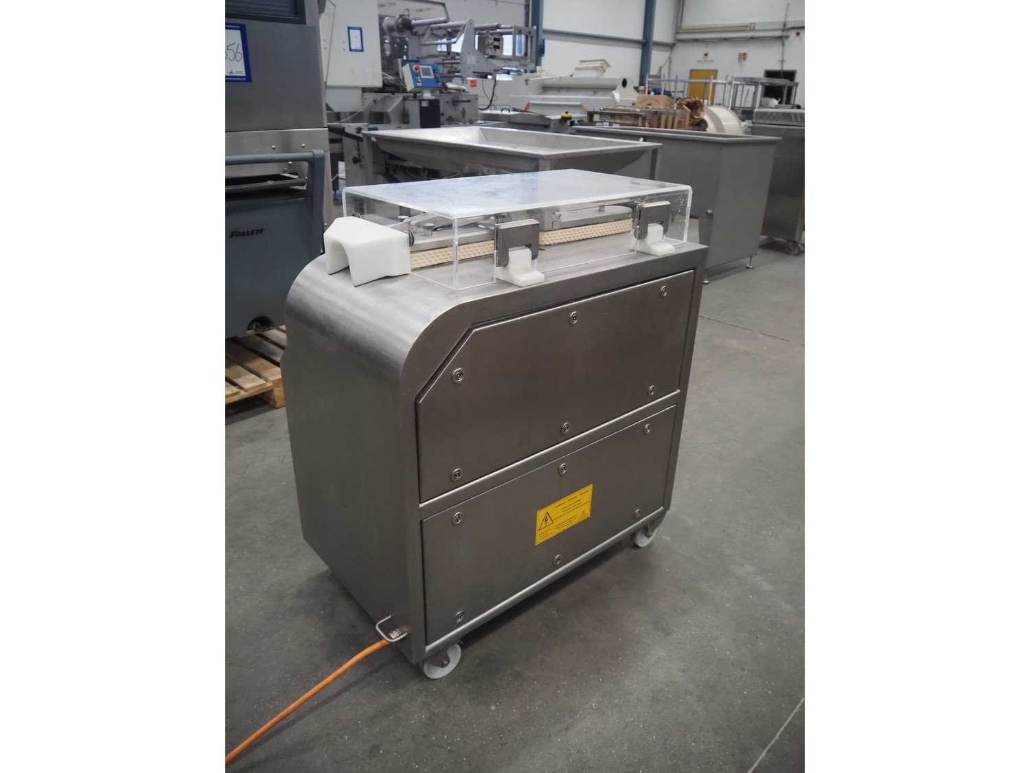 Inotec mobile sausage cutter, type: WT 93-S3/F, machine number: 001-1407, year of construction: 2006, 400 V, 3 Ph, 50 Hz, 5 A, 2 kW, total dimensions: 950 mm x 650 mm x 1000 mm. Kavel locatie: Schouwrooij 29, 5281 RE Boxtel, Nederland