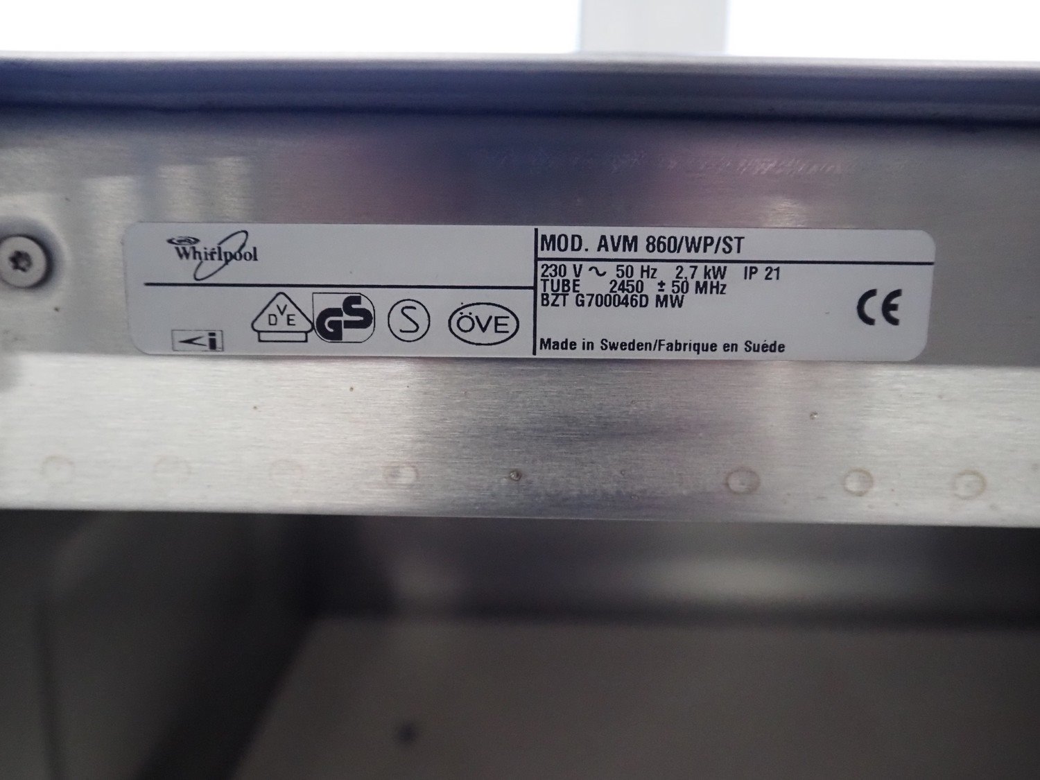 Whirlpool microwave, model: AVM 860/WP/ST, 230 V, 50 Hz, 2.7 kW, dimensions: 660 mm x 600 mm x 470 mm. Kavel locatie: Schouwrooij 29, 5281 RE Boxtel, Nederland