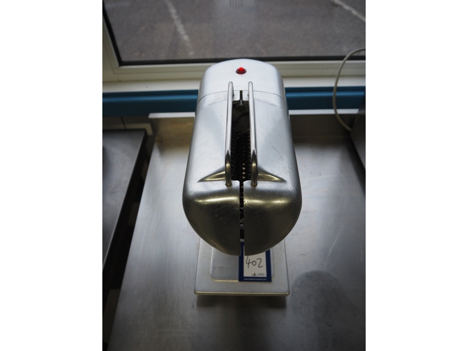 Möller & Co tenderizer, working width: 200 mm, total dimensions: 210 mm x 410 mm x 420 mm. Kavel locatie: Schouwrooij 29, 5281 RE Boxtel, Nederland