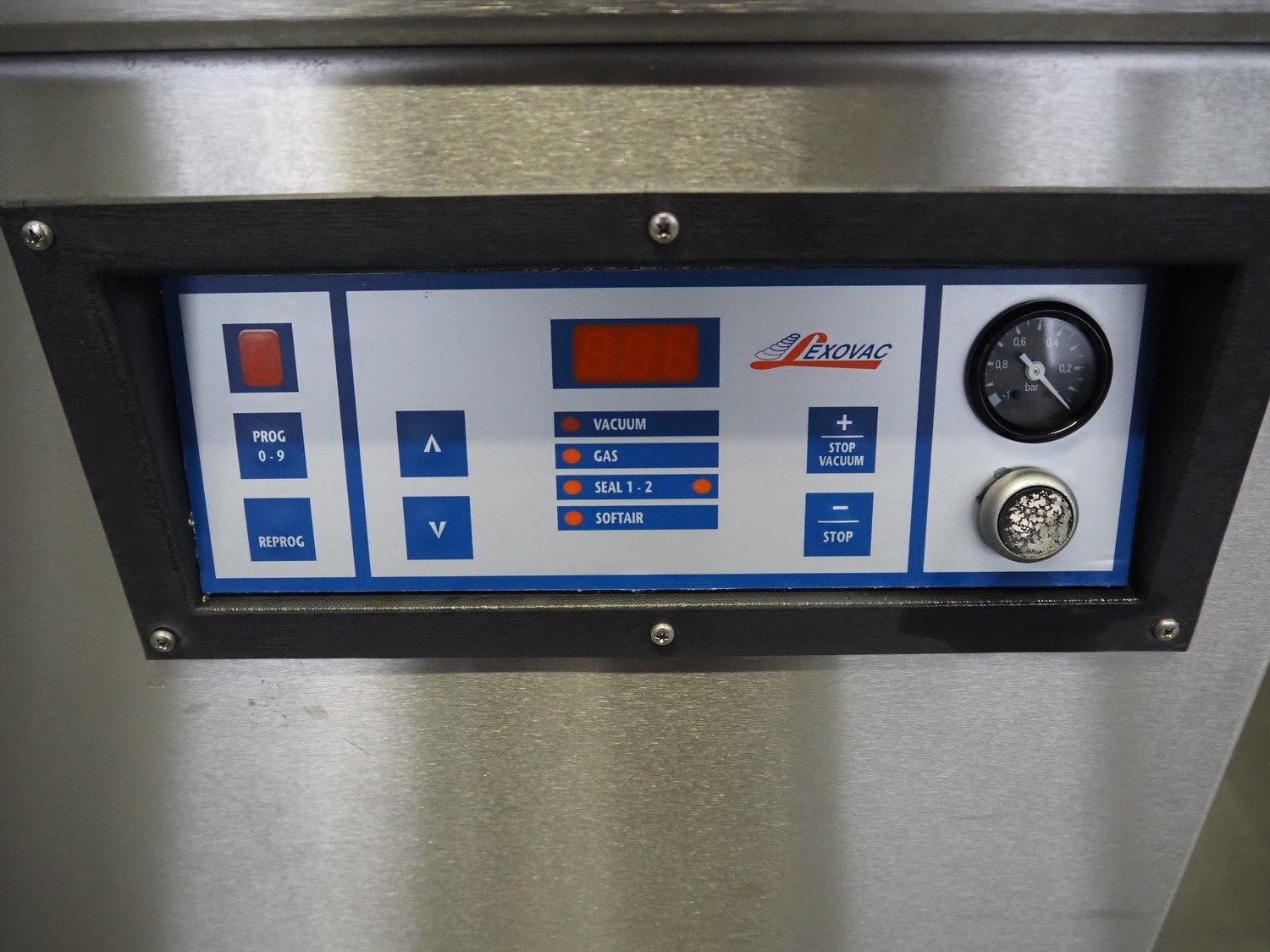 Lexovac mobile vacuum machine, type: 503 CE, machine number: 40303035, 400 V, 3 Ph, 2700 Watt, seal length: 800 mm and 500 mm, chamber dimensions: 800 mm x 500 mm, Busch vacuum pump, total dimensions: 920 mm x 750 mm x 1070 mm. Kavel locatie: Schouwrooij 29, 5281 RE Boxtel, Nederland
