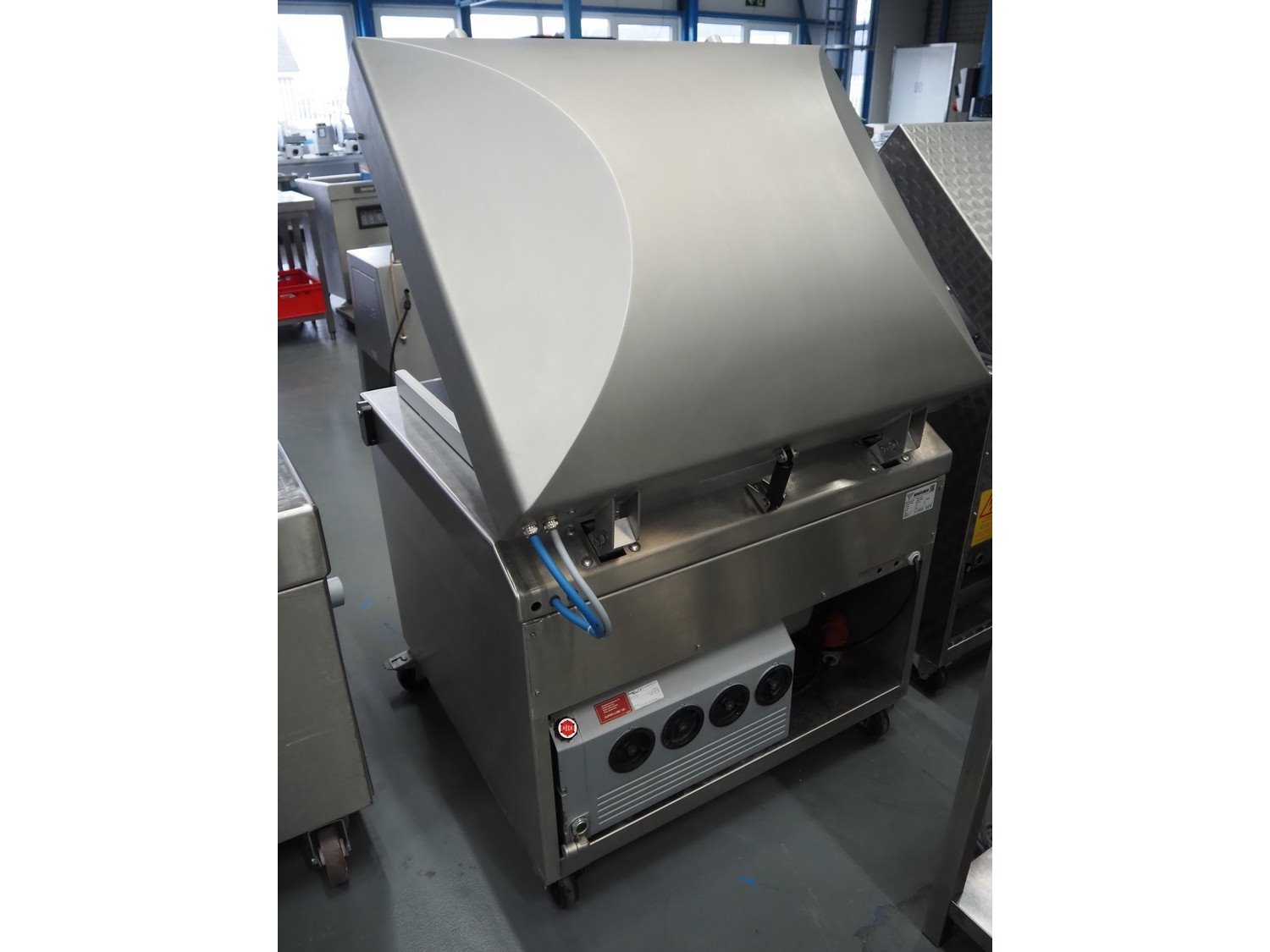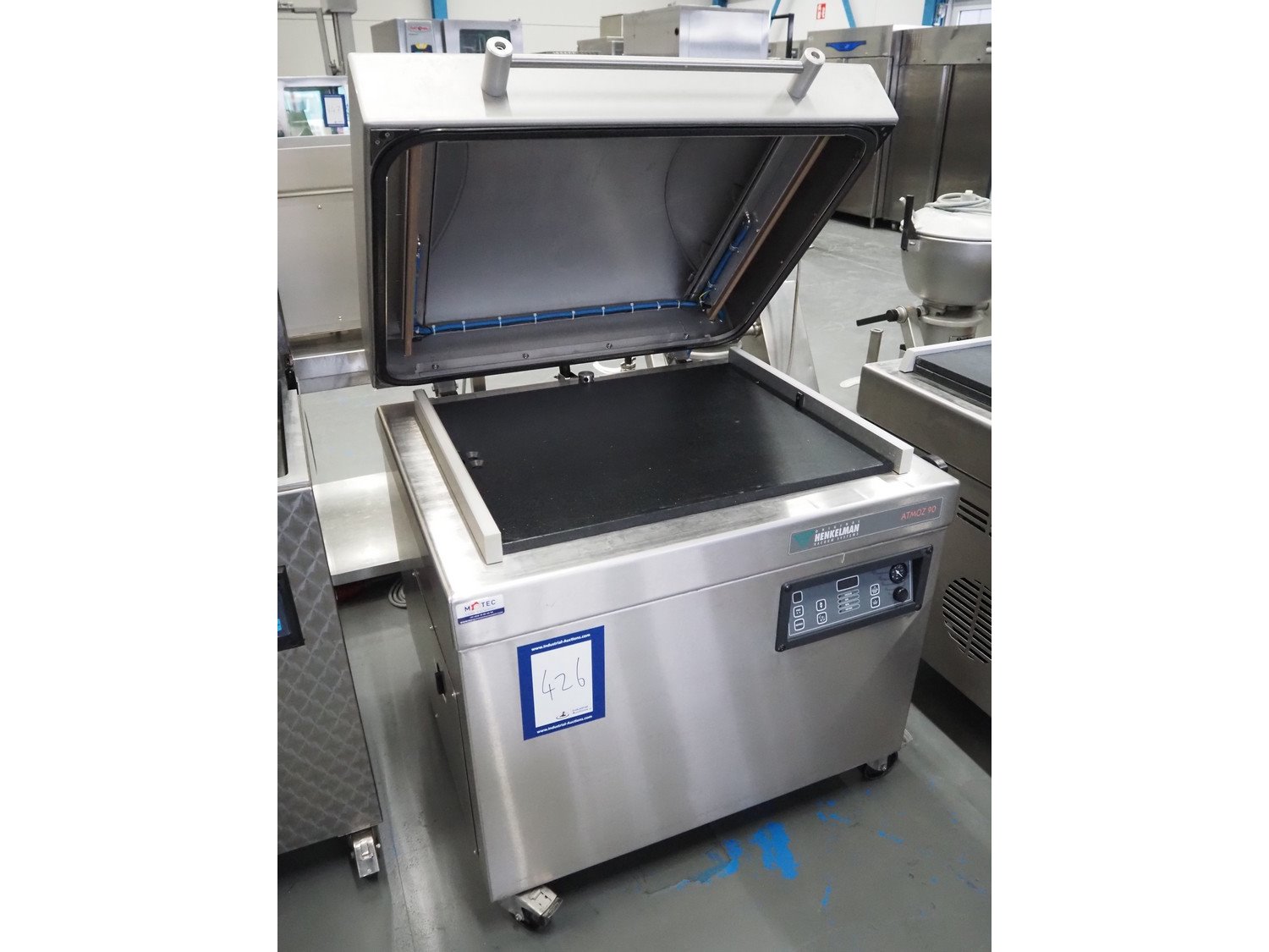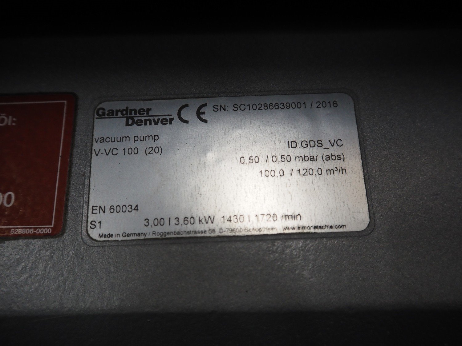 Henkelman mobile vacuum machine, type: Atmoz 90, machine number: H0A10170008, year of construction: 2017, 400 V, 3 Ph, 50 Hz, 11.5 A, 3.5 kW, chamber: 760 mm x 630 mm, seal length: (2x) 685 mm, Gardner Denver vacuum pump, type: V-VC 100 (20), capacity: 100/120 m³ per hour, total dimensions: 1000 mm x 1000 mm x 1120 mm. Kavel locatie: Schouwrooij 29, 5281 RE Boxtel, Nederland