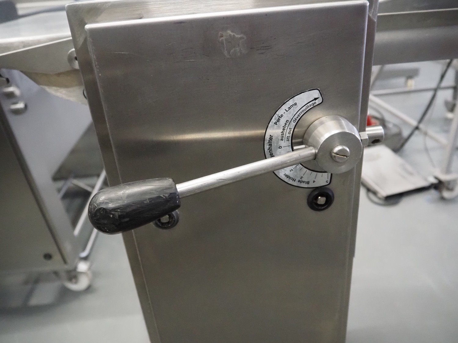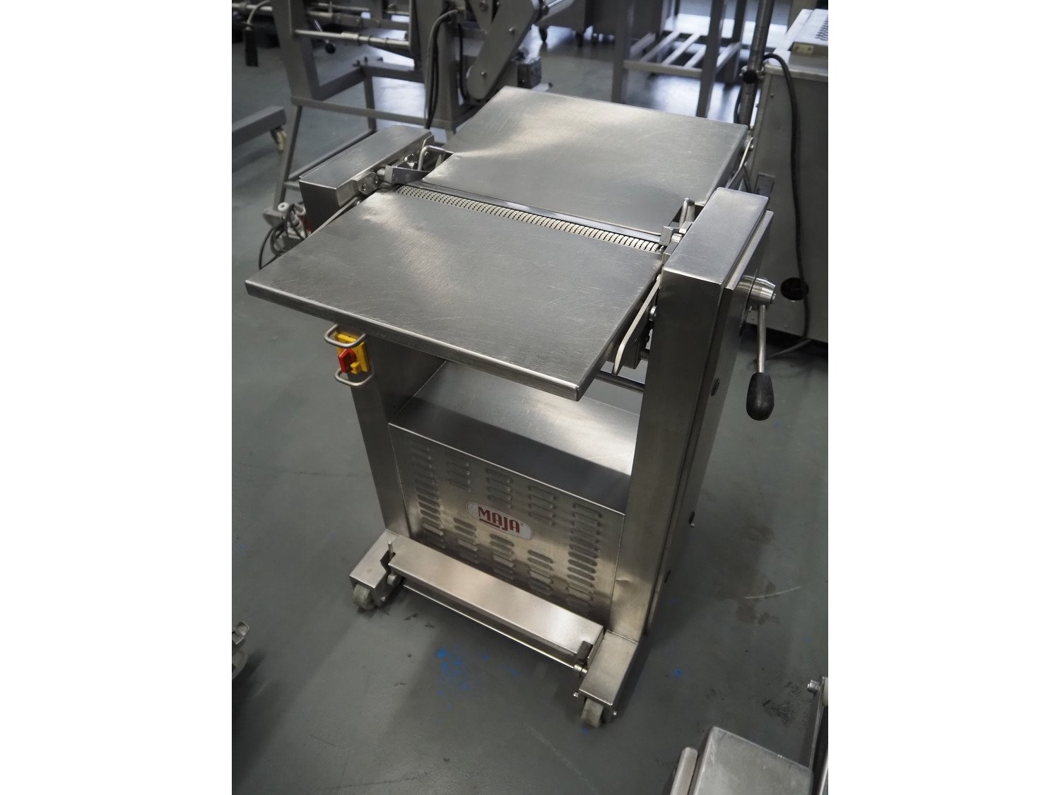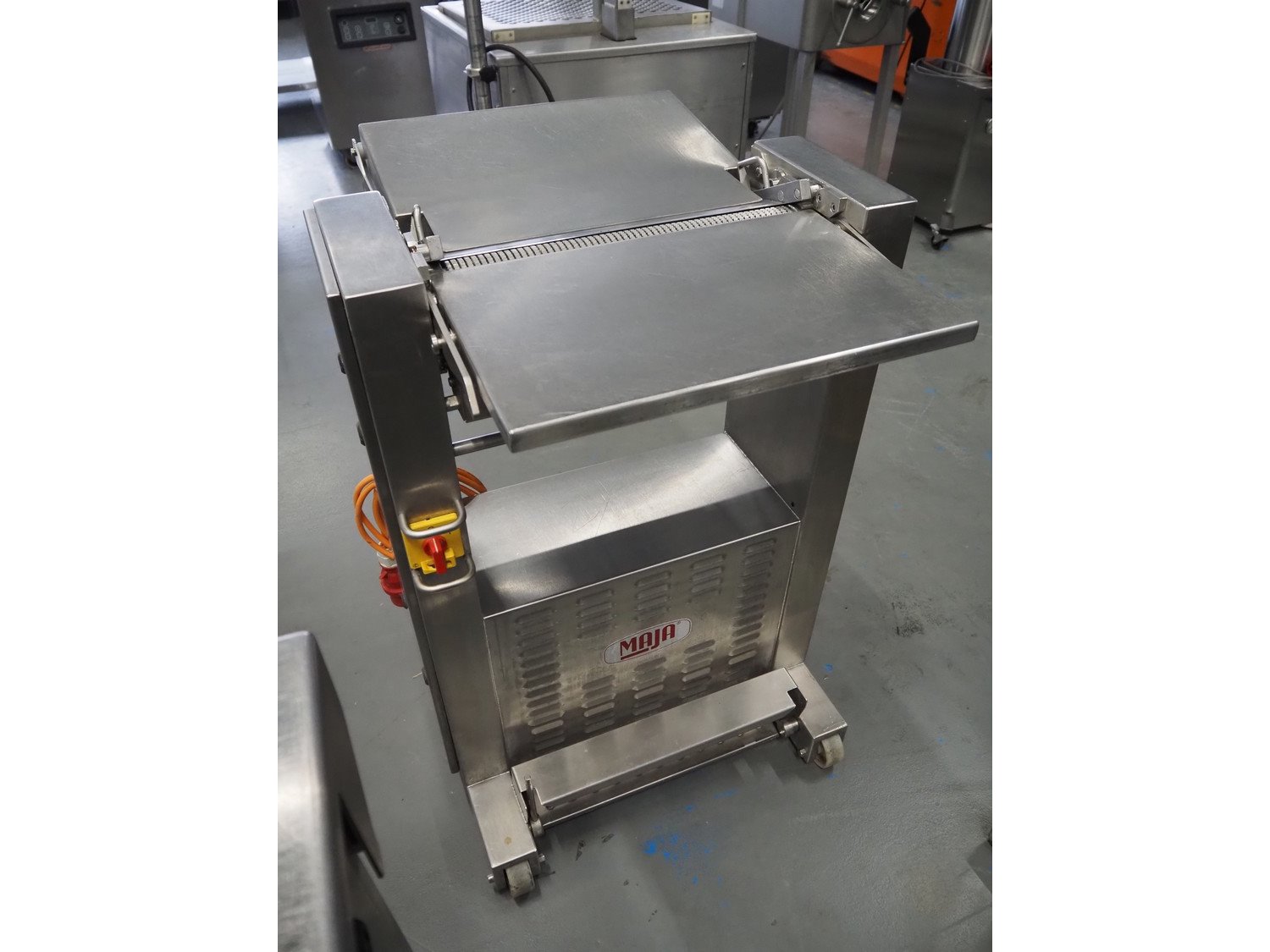 Maja mobile skinning machine, type: ESM 435, number: 41319, year of construction: 1999, 400 V, 3 Ph, 50 Hz, 2 A, 0.75 kW, working width: 430 mm, total dimensions: 770 mm x 730 mm x 980 mm. Kavel locatie: Schouwrooij 29, 5281 RE Boxtel, Nederland