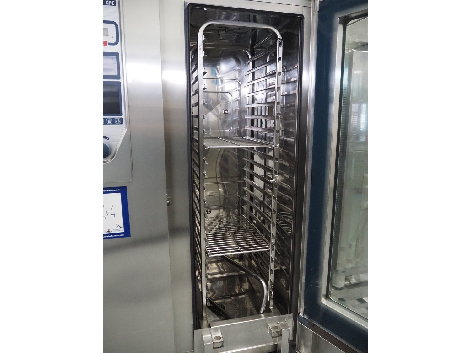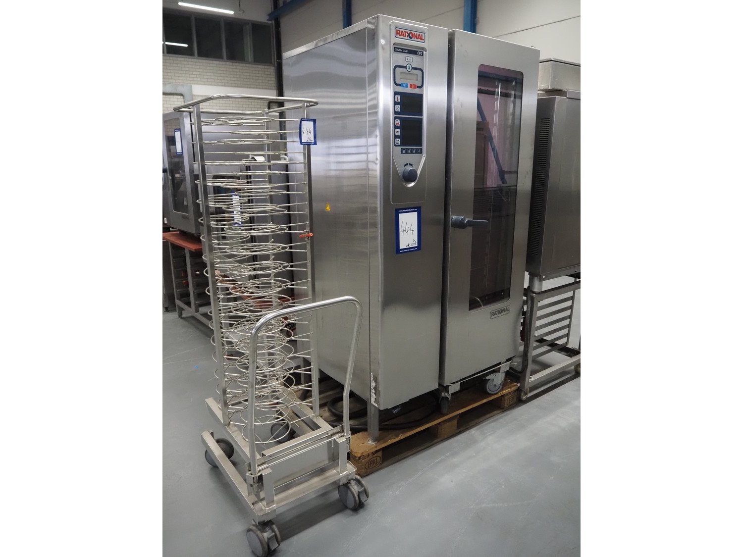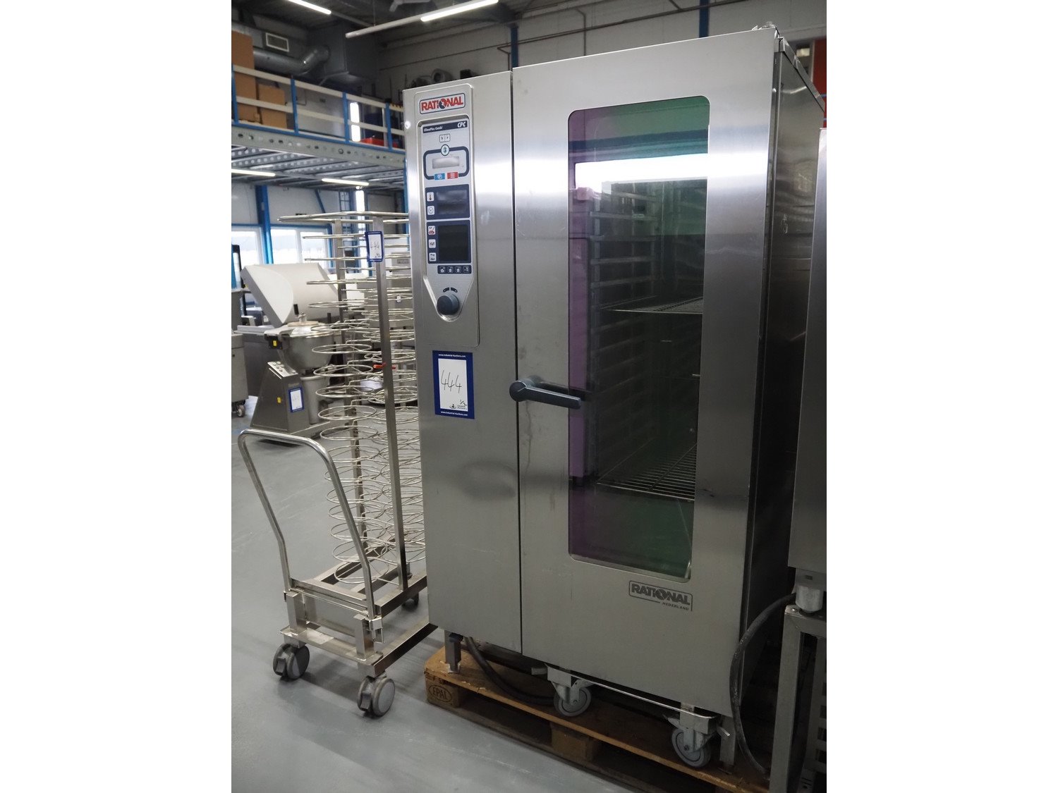 Rational combi steamer, model: ClimaPLus Combi CPC 201, serial number: E21CD02111079329, 400 V, 50 Hz, electric heated, s/s trolley, 20 floors, dimensions each floor: 530 mm x 330 mm, dimensions trolley: 850 mm x 540 mm x 1800, total dimensions: 1000 mm x 900 mm x 1900 mm. Kavel locatie: Schouwrooij 29, 5281 RE Boxtel, Nederland