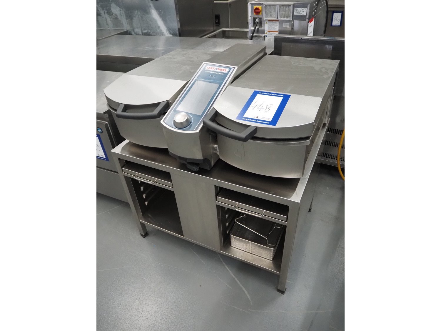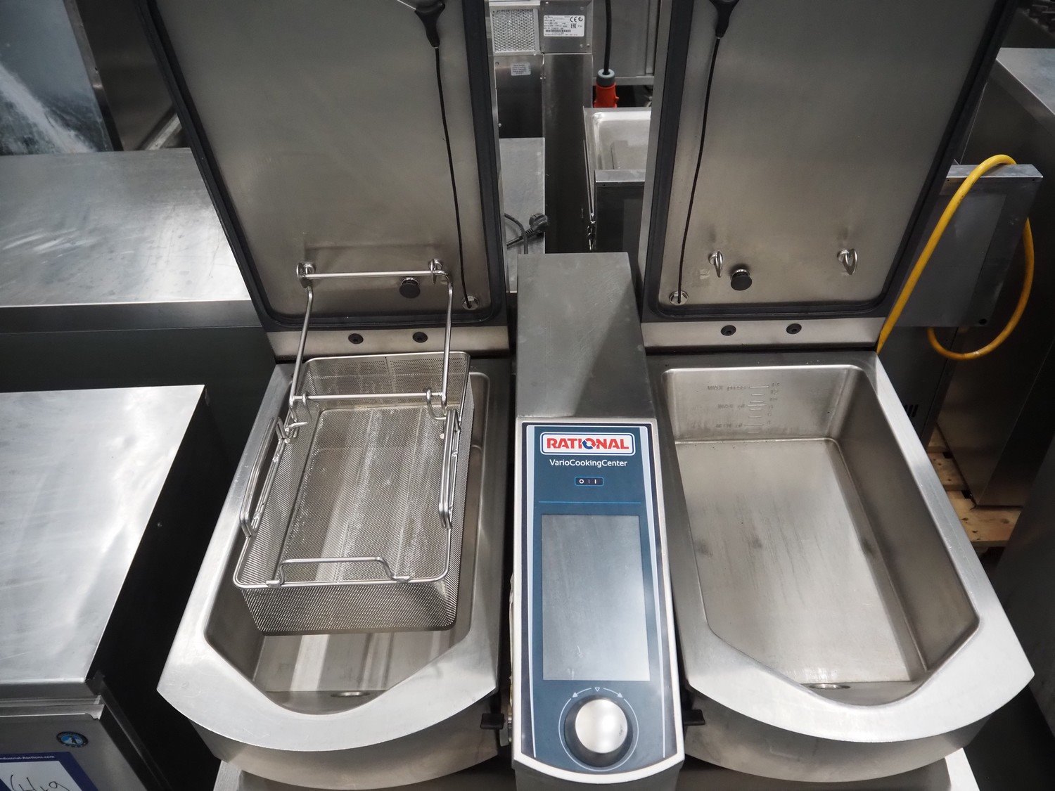 Rational Vario Cooking Center, type: VCC 112T, serial number: E12vj20038046107, year of construction: 2020, 400 V, 3 Ph, 50/60 Hz, 13 kW, temperature: 30-250°C, water pressure: 150-600 kPa, volume: (2x) 14 liter, inside dimensions: (2x) 330 mm x 440 mm x 140 mm, total dimensions: 960 mm x 740 mm x 1040 mm. Including 2 s/s baskets. Kavel locatie: Schouwrooij 29, 5281 RE Boxtel, Nederland