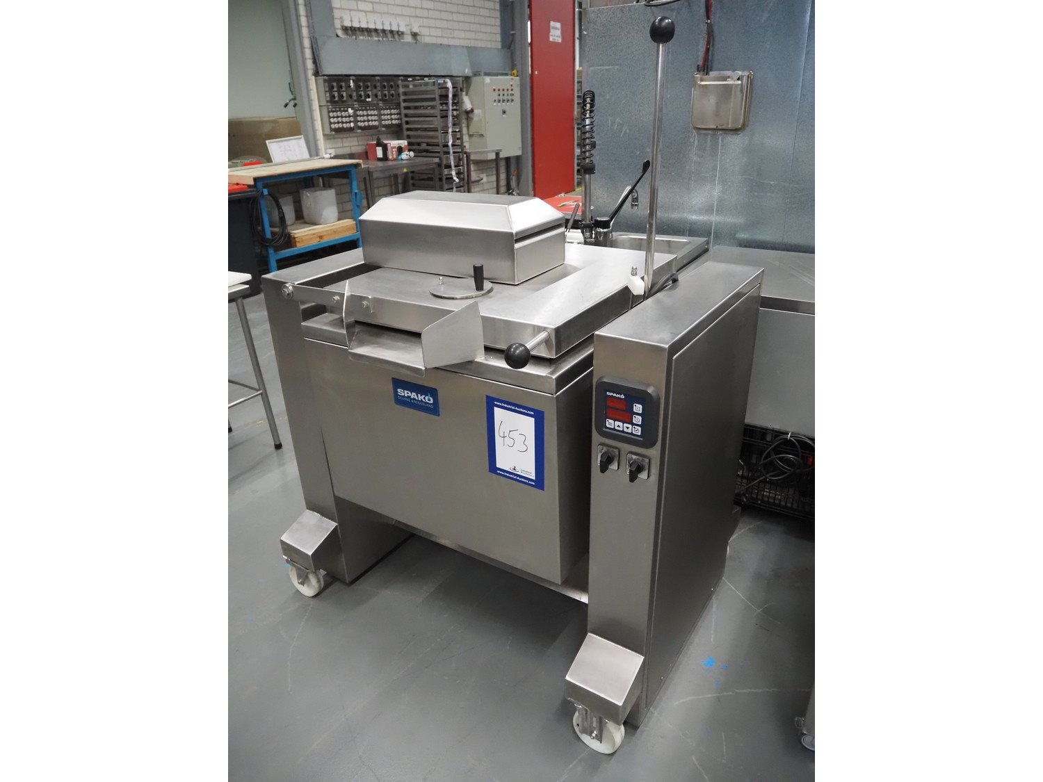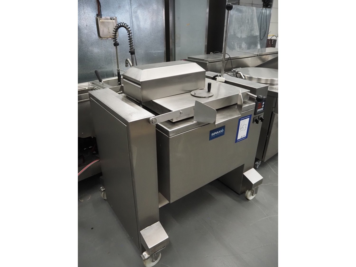 Spako cooking vessel with agitator, type: TRK100, serial number: 21.532, 230/400 V, 50 Hz, 9.5 kW, inside dimensions: Ø 600 mm x 400 mm, total dimensions: 1160 mm x 880 mm x 1590 mm. Kavel locatie: Schouwrooij 29, 5281 RE Boxtel, Nederland