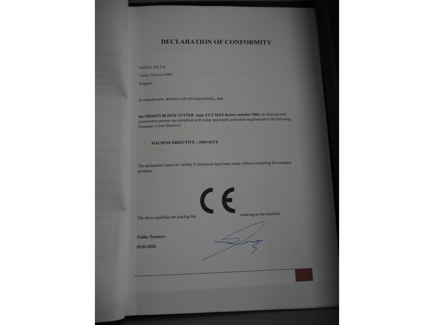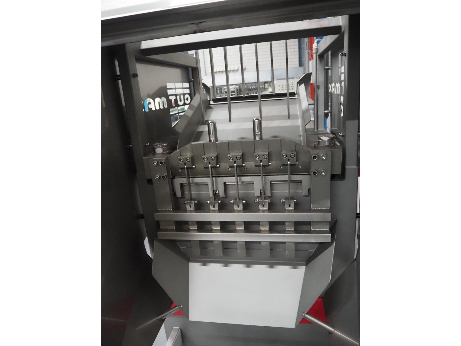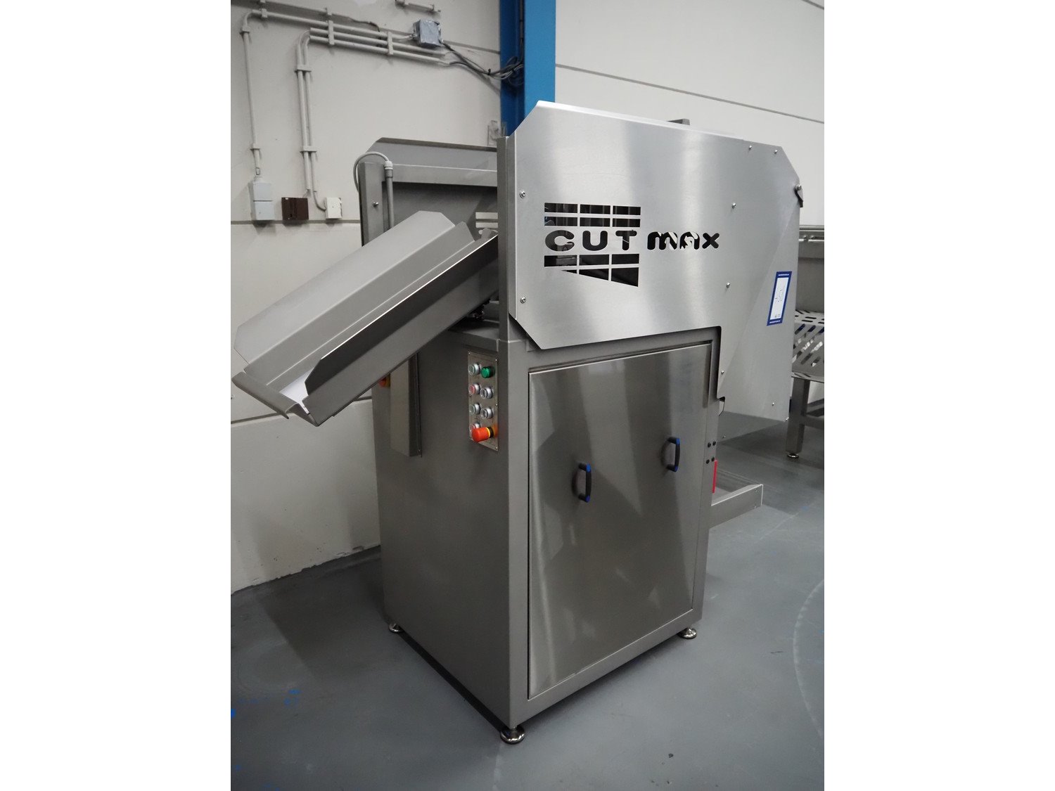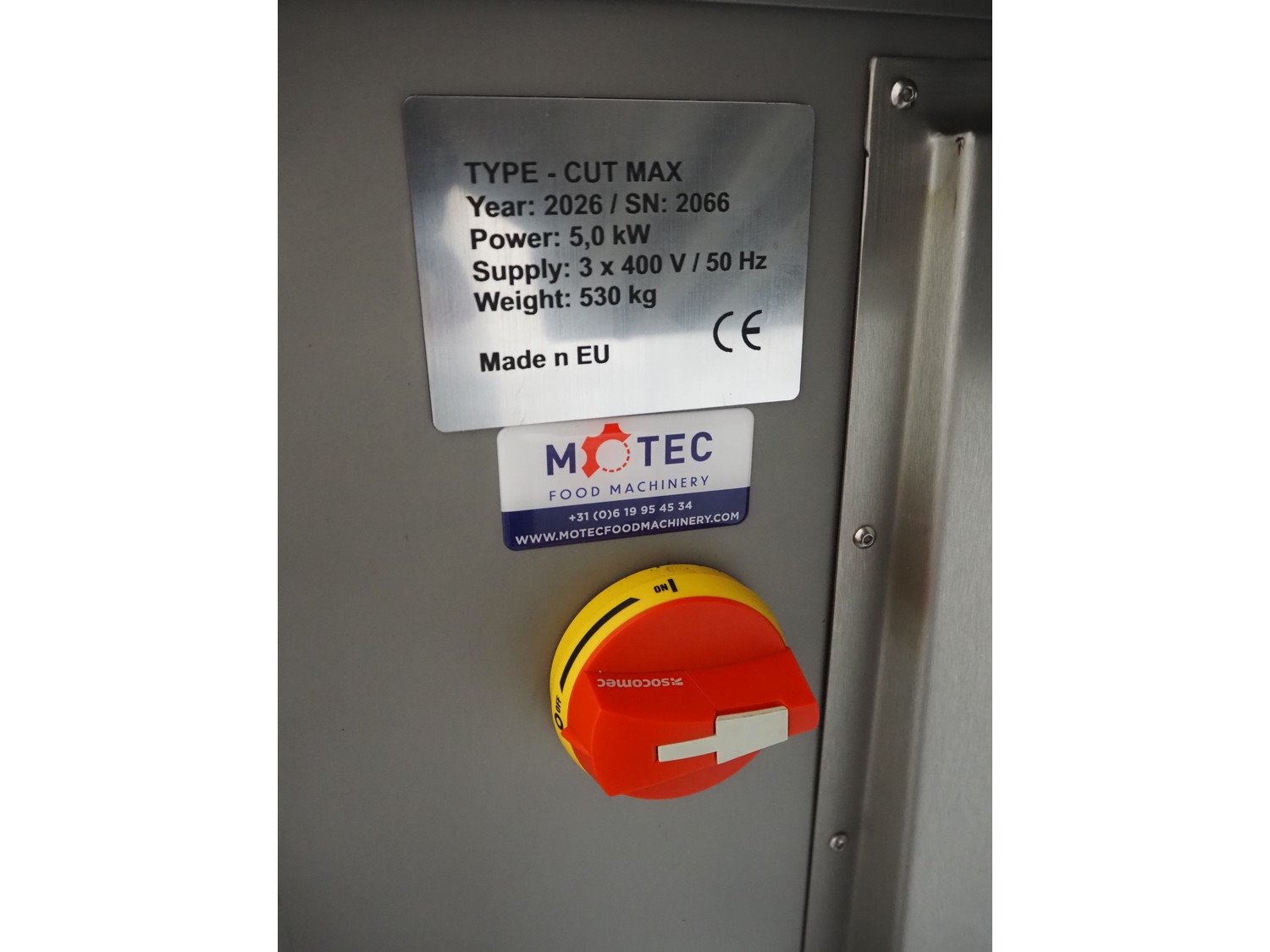Nesto frozen block cutter, type: CUT MAX, serial number: 2066, year of construction: 2026, 400 V, 3 Ph, 50 Hz, 5 kW, weight: 530 kg, working width: 470 mm, total dimensions: 2100 mm x 800 mm x 1800 mm. Never used. Kavel locatie: Schouwrooij 29, 5281 RE Boxtel, Nederland