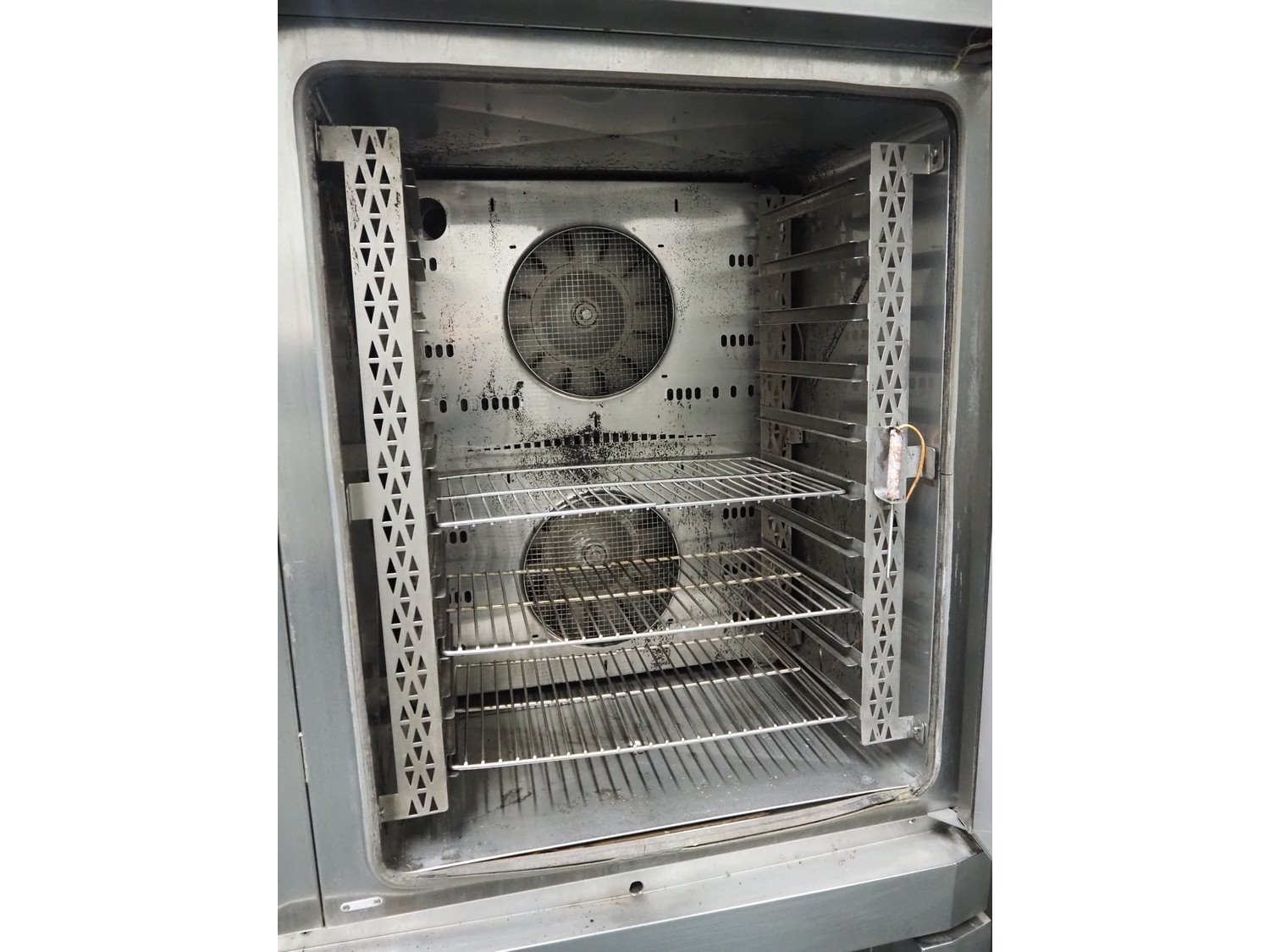 Wiesheu GmbH mobile combi steamer, type: M216CR+TS350+P.C1, number: 62678, year of construction: 1999, 400 V, 50 Hz, 18.6 kW, 10 floors, dimensions each floor: 520 mm x 330 mm, total dimensions: 950 mm x 870 mm x 2050 mm. Kavel locatie: Schouwrooij 29, 5281 RE Boxtel, Nederland