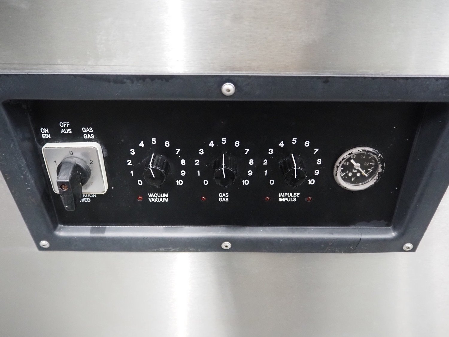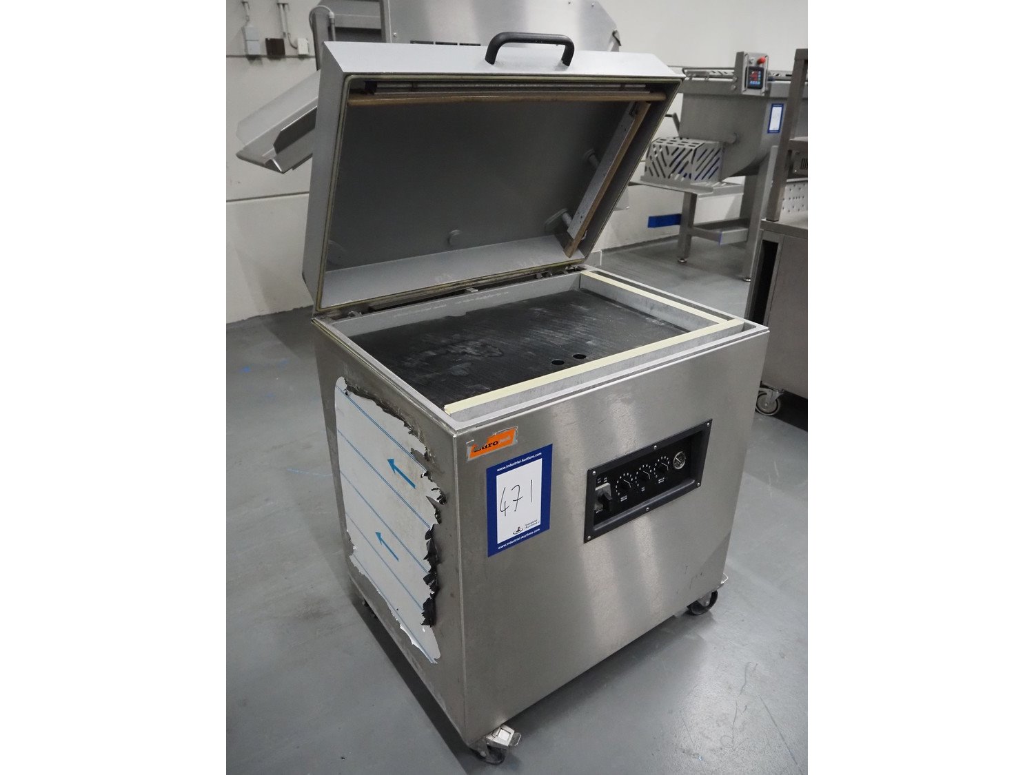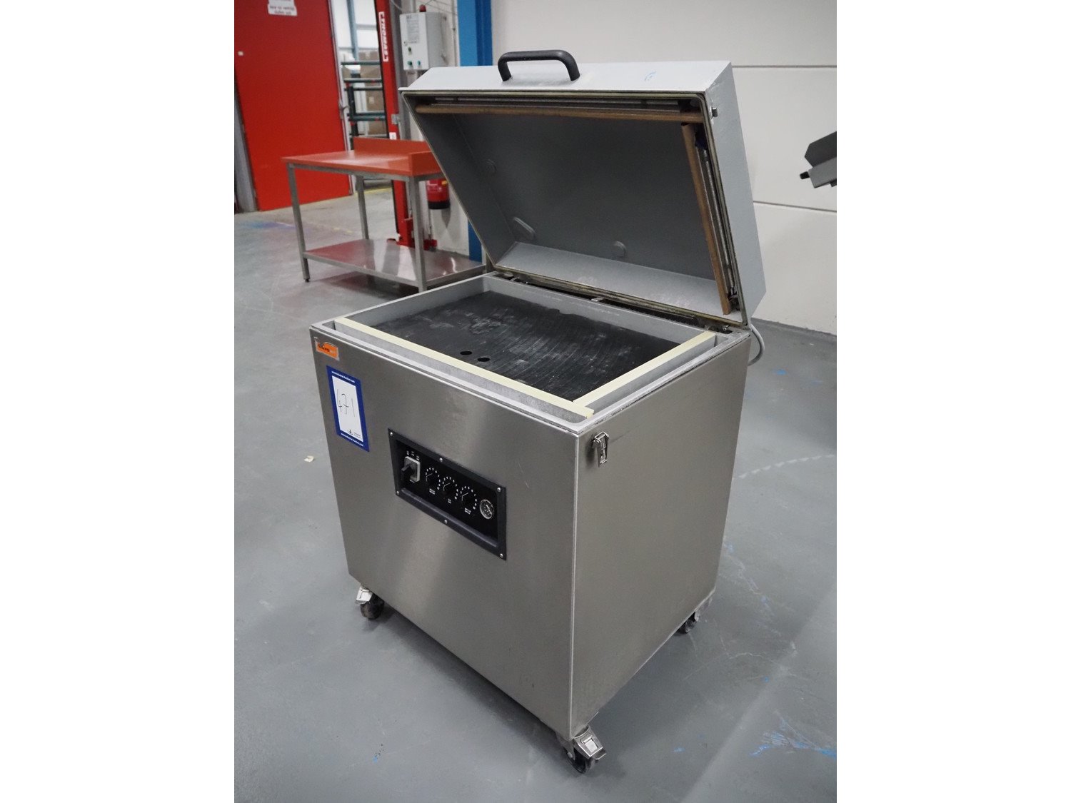 HFE Vacuum Systems mobile vacuum machine, type: EP 95, number: 20020555, year of construction: 2002, 400 V, 3 Ph, 50 Hz, 9 A, 4.4 kW, seal length: 800 mm and 500 mm, chamber dimensions: 740 mm x 500 mm, Busch vacuum pump, type: RA 0100 E 5Z1, number: 02008455, total dimensions: 850 mm x 700 mm x 1040 mm. Kavel locatie: Schouwrooij 29, 5281 RE Boxtel, Nederland