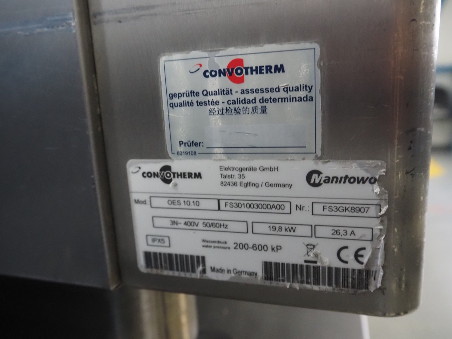 Convotherm combi steamer on s/s rack, type: OES 10.10, number: FS301003000A00, 400 V, 3 Ph, 50/60 Hz, 26.3 A, 19.8 kW, 11 floors, dimensions each floor: 530 mm x 320 mm, total dimensions: 900 mm x 930 mm x 1800 mm. Kavel locatie: Schouwrooij 29, 5281 RE Boxtel, Nederland