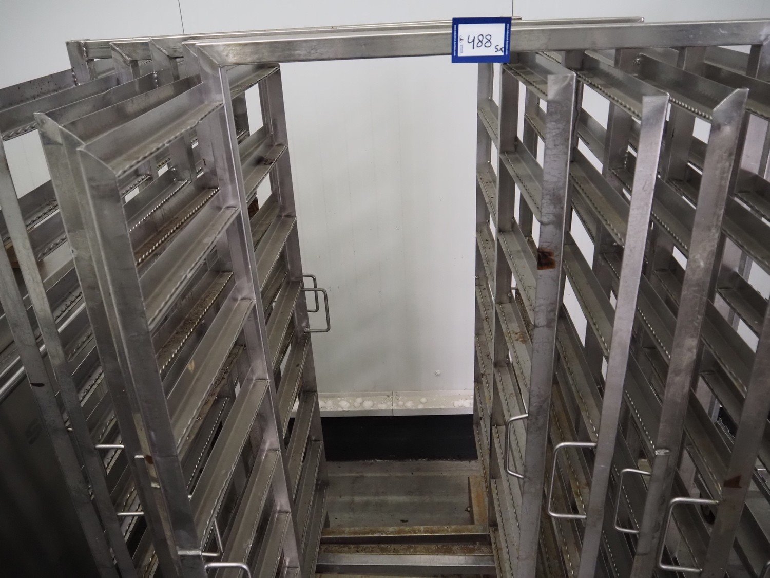 5 s/s smoke trolleys, 8 floors, dimensions each floor: 1010 mm x 1000 mm, total dimensions: (5x) 1020 mm x 1000 mm x 1960 mm. Kavel locatie: Schouwrooij 29, 5281 RE Boxtel, Nederland