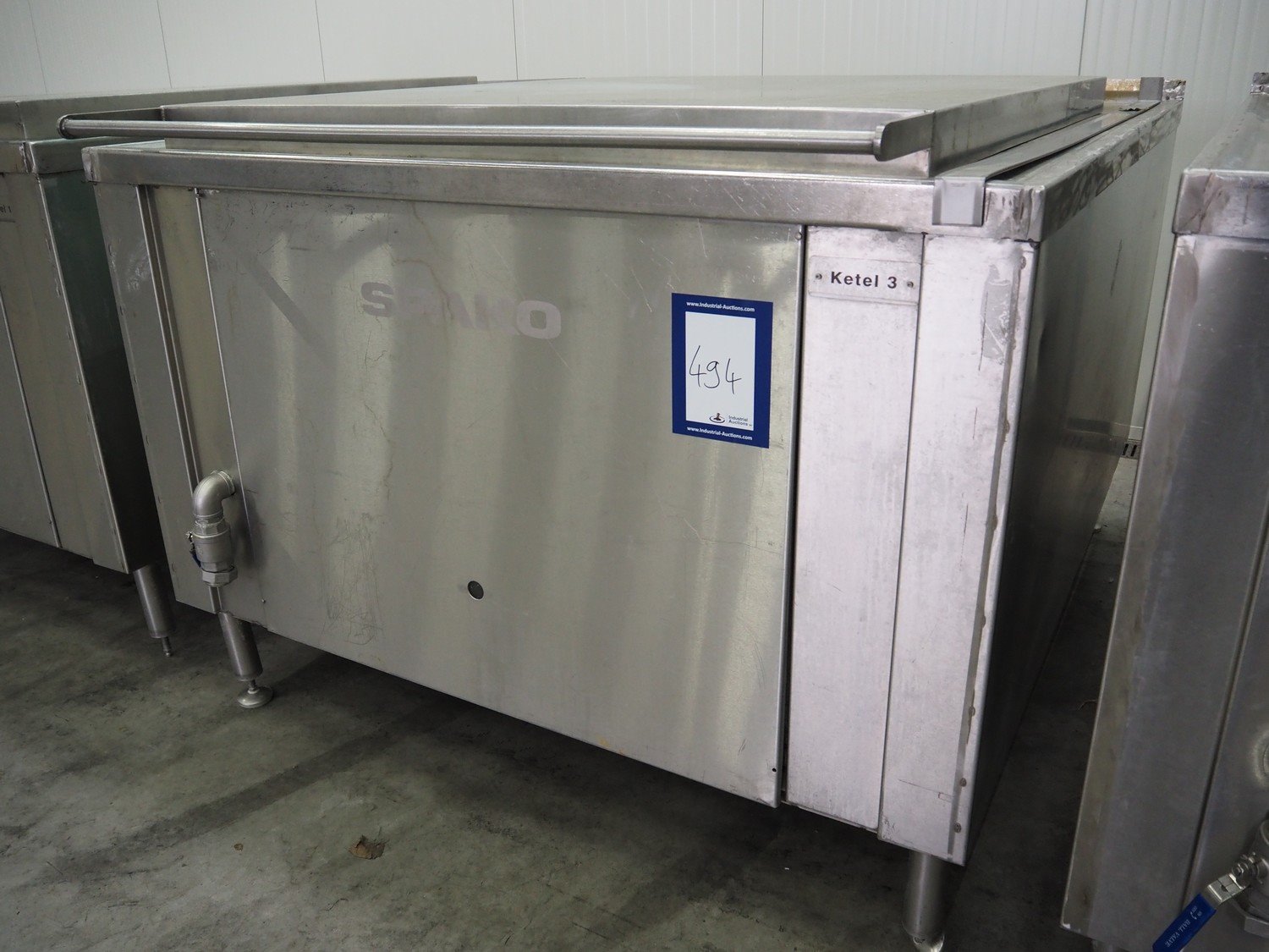 Spako cooking vessel, type number: RHU 1100 V, year of construction: 2010, natural gas, 230 V, 50 Hz, 60 W, volume: 1100 liter, dimensions inside: 1400 mm x 1300 mm x 600 mm, total dimensions: 2300 mm x 1670 mm x 1280 mm. Kavel locatie: Schouwrooij 29, 5281 RE Boxtel, Nederland