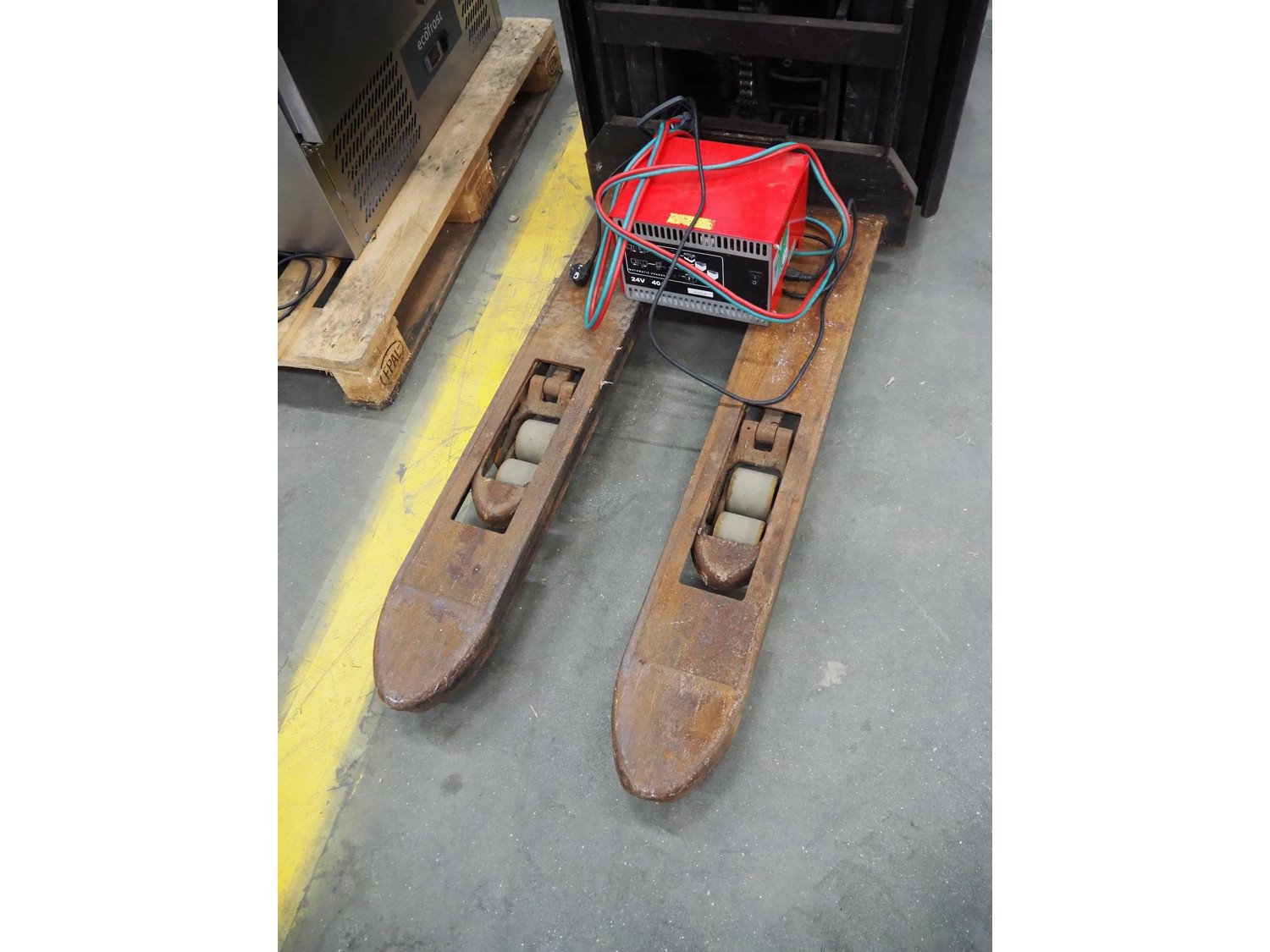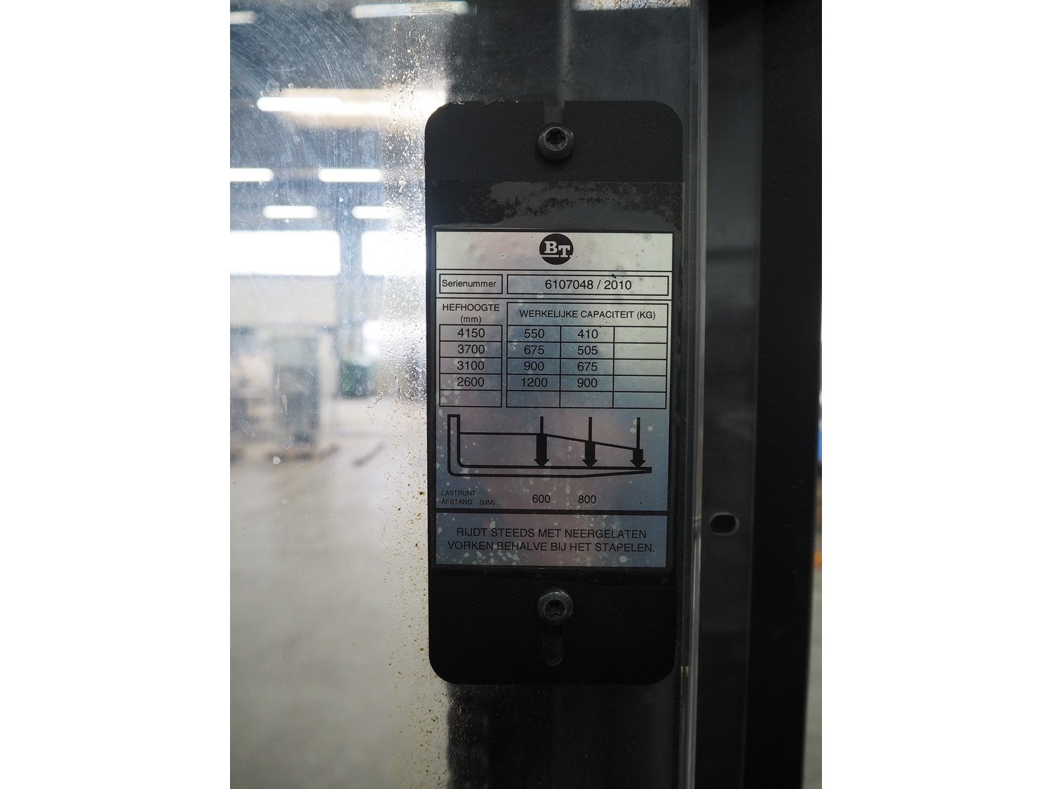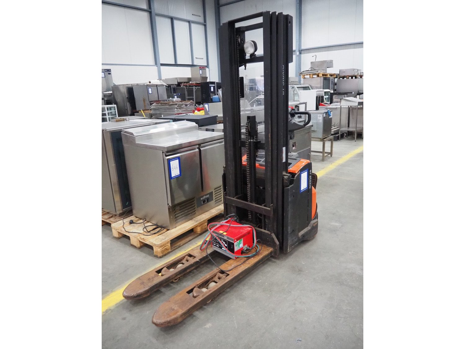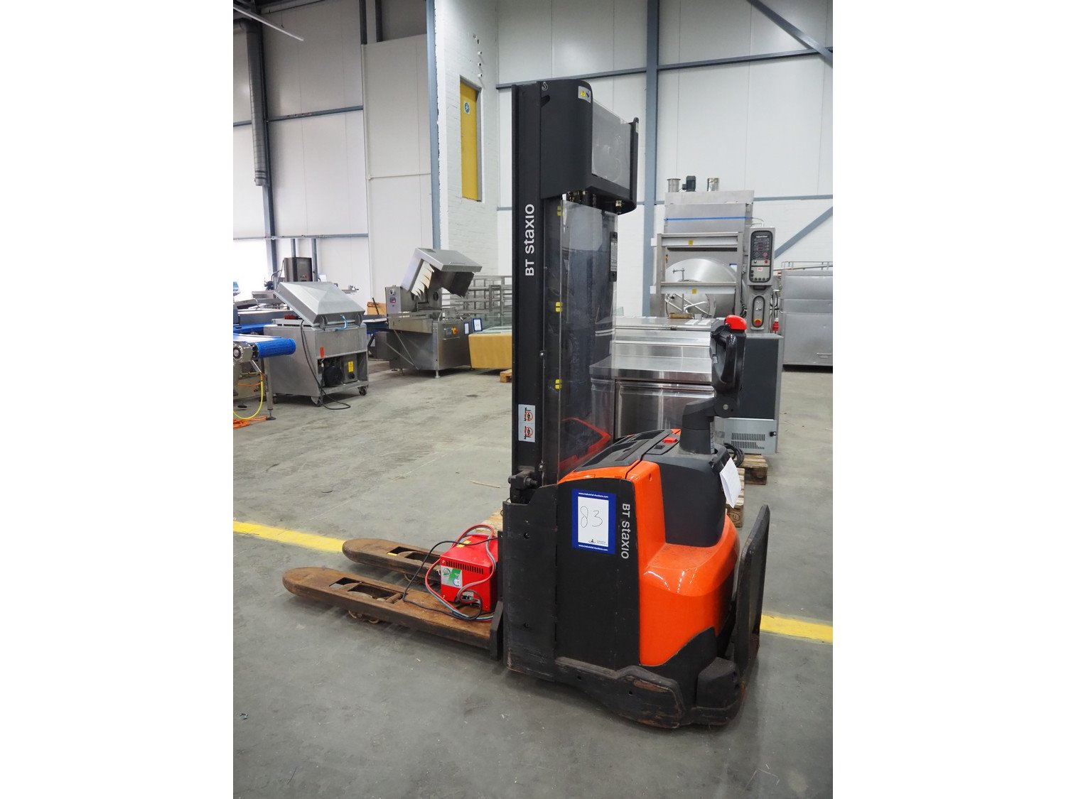 BT electric pallet lifter, serial number: 6107048/2010, fork length: 1150 mm, total dimensions: 2000 mm x 850 mm x 1900 mm. Including MicroPower battery charger, type: STC 24/40, 24 V. Kavel locatie: Schouwrooij 29, 5281 RE Boxtel, Nederland
