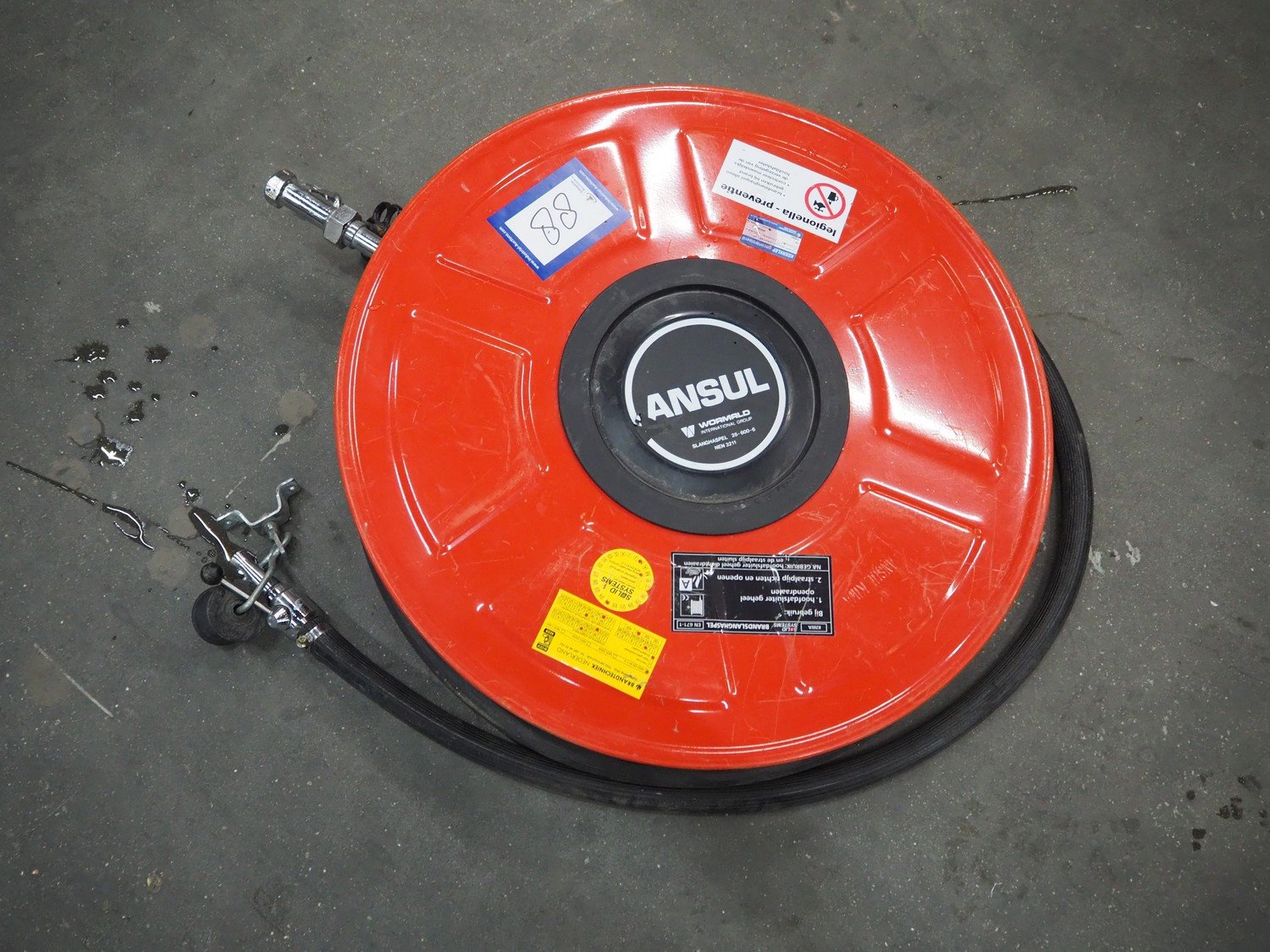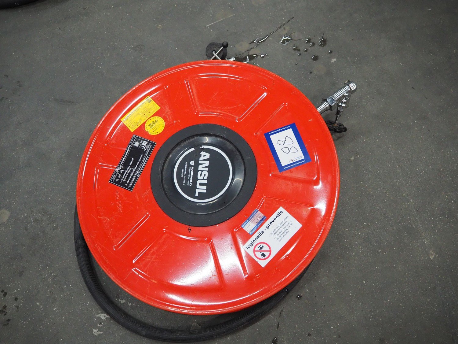 Ansul hose reel with hose, dimensions: 600 mm x 600 mm x 150 mm. Kavel locatie: Schouwrooij 29, 5281 RE Boxtel, Nederland