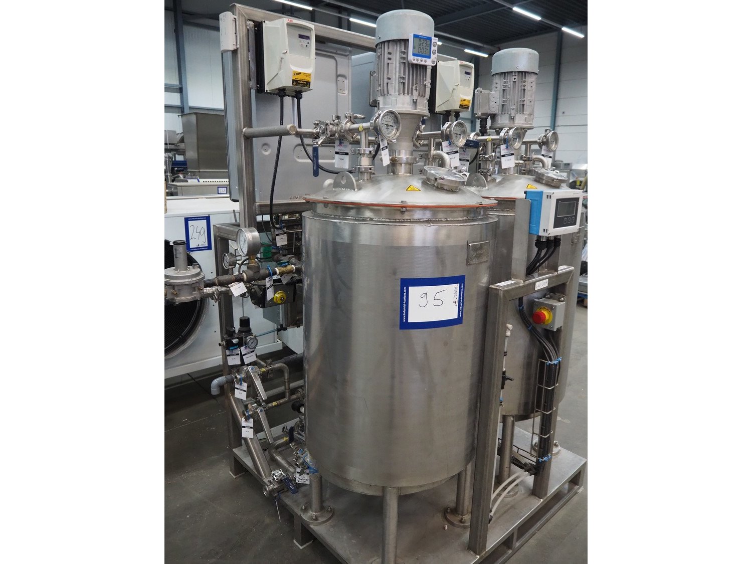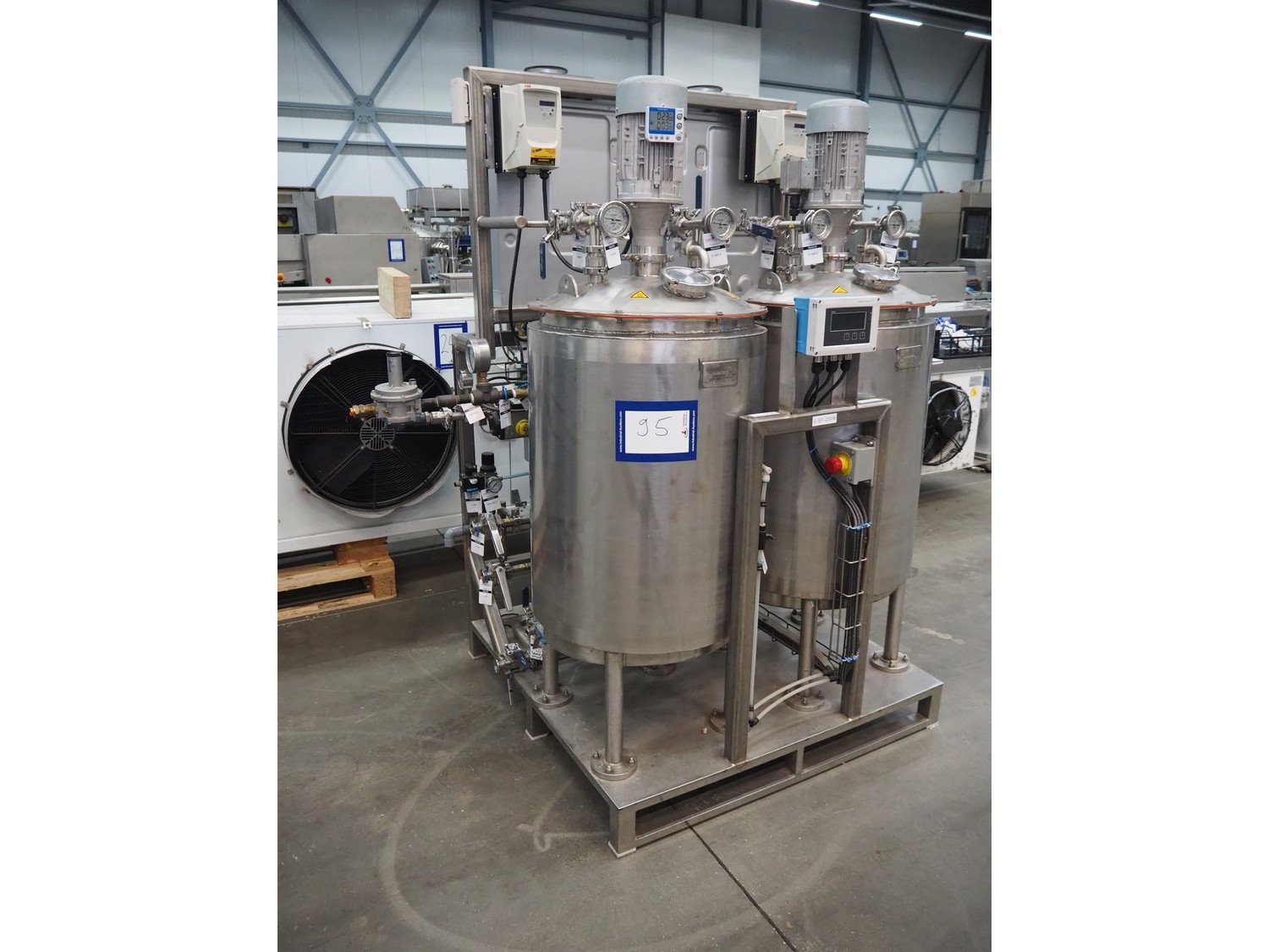 MXD Process/Rinnai Corporation mixing installation consisting of 2 MXD Process mixing tanks, serial number: 0040028-003-01 and 0040028-003-08, year of construction: 2020, volume: (2x) 227 liter, dimensions: (2x) Ø 260 mm x 1200 mm, 2 Rinnai Corporation water heaters, model: (2x) REU-N3237FFC-E, dimensions: 1200 mm x 1300 mm x 2000 mm. Kavel locatie: Schouwrooij 29, 5281 RE Boxtel, Nederland