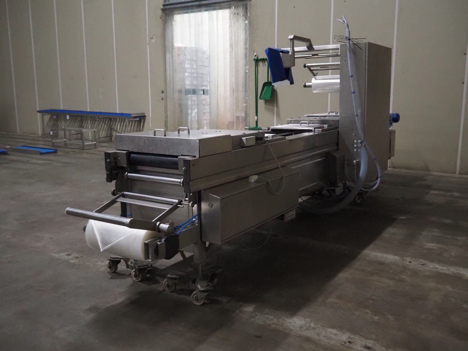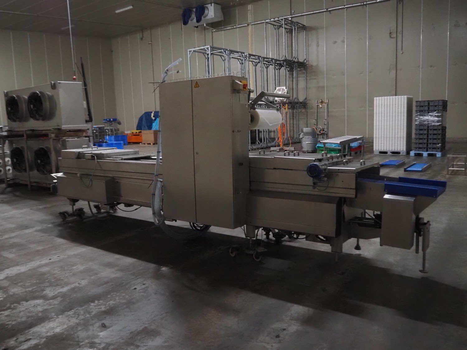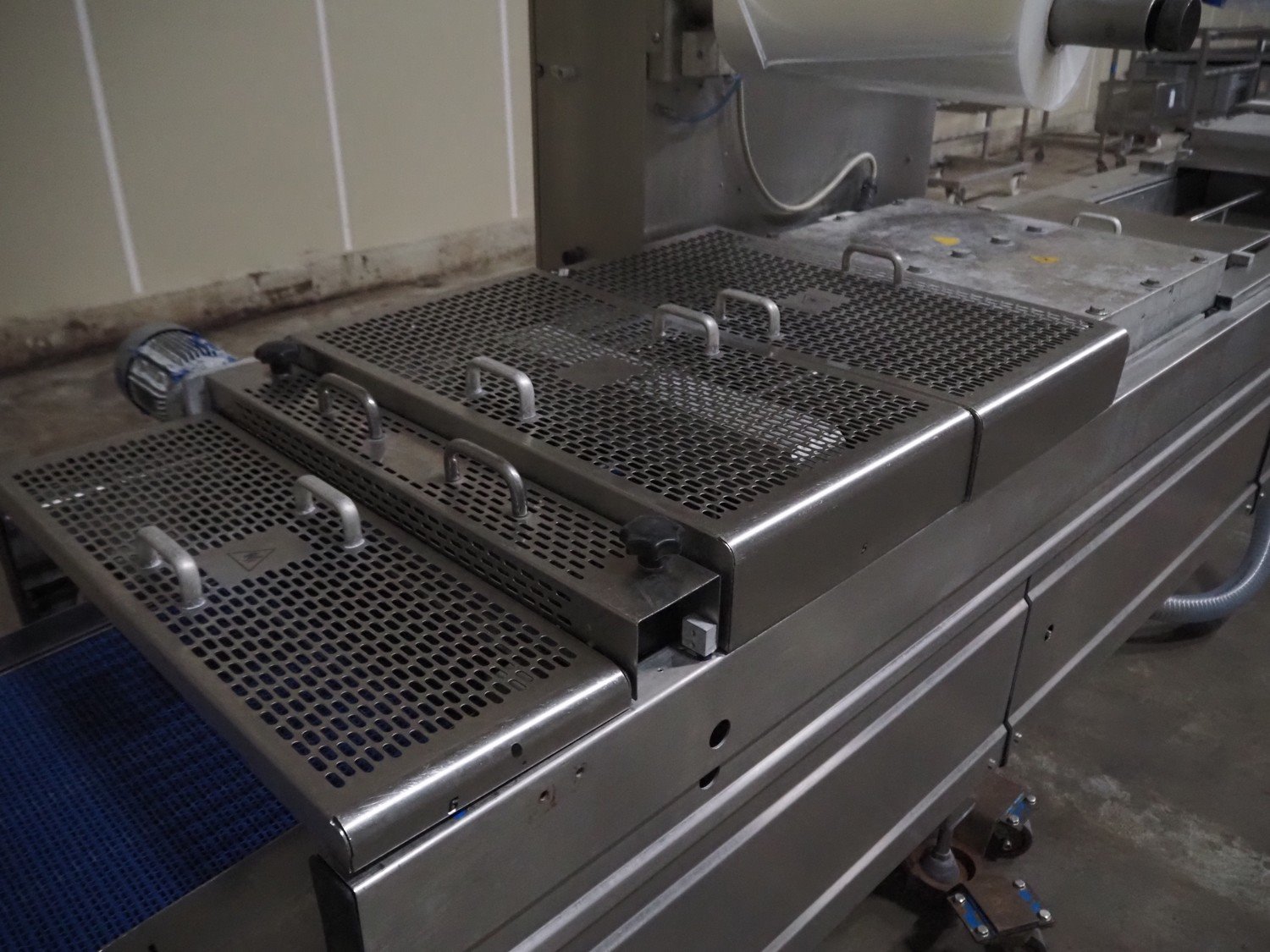 Multivac thermoformer, type: R530, machine number: 805, year of construction: 1996, 400 V, 3 Ph, 50 Hz, 37 A, 15 kW, film width: 530 mm, plastic mesh outfeed belt, belt width: 480 mm, total dimensions: 6200 mm x 1200 mm x 2000 mm. Including 2 pallets with parts, among others various dye sets. Transport rollies not included. Kavel locatie: Ertveldweg 31, 5231 XA Den Bosch, Nederland