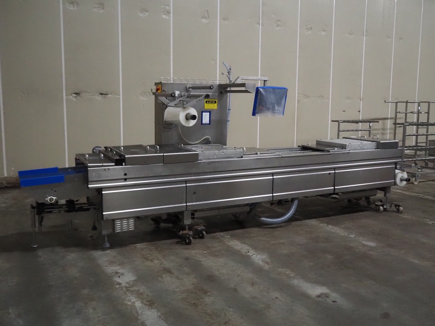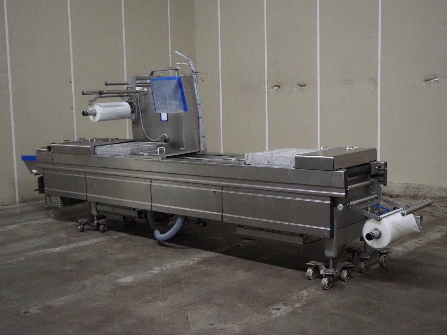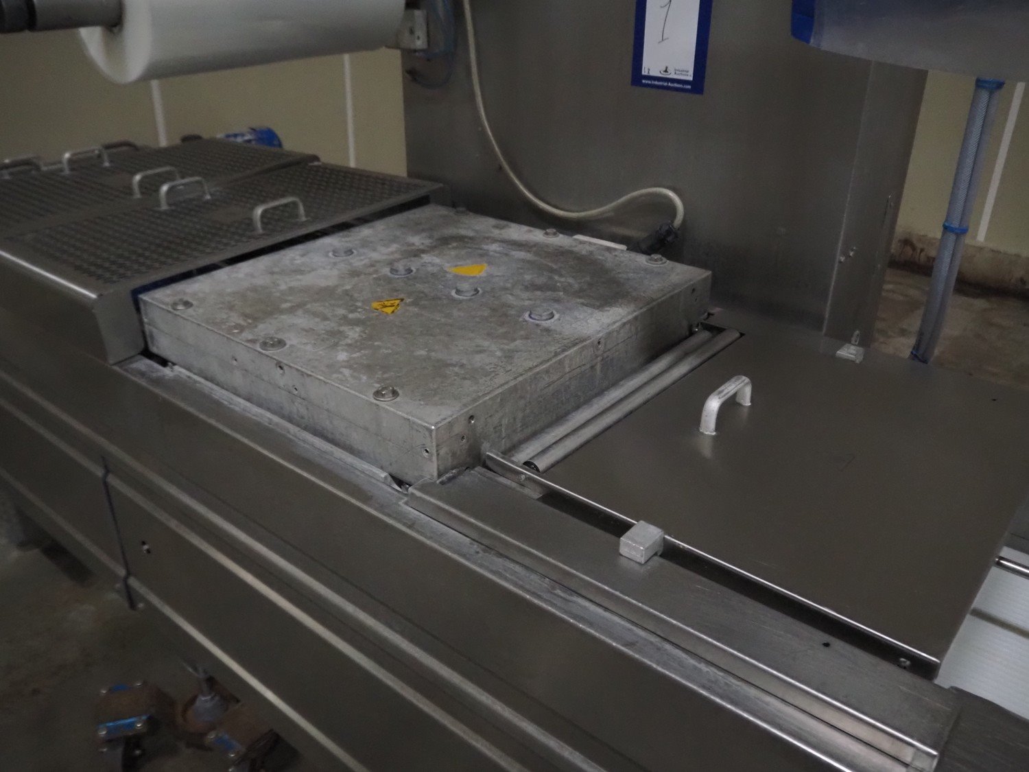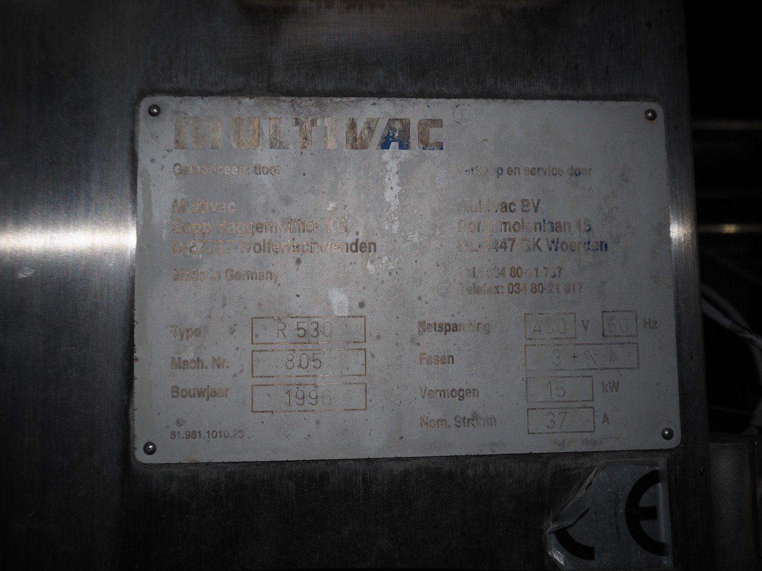Multivac thermoformer, type: R530, machine number: 805, year of construction: 1996, 400 V, 3 Ph, 50 Hz, 37 A, 15 kW, film width: 530 mm, plastic mesh outfeed belt, belt width: 480 mm, total dimensions: 6200 mm x 1200 mm x 2000 mm. Including 2 pallets with parts, among others various dye sets. Transport rollies not included. Kavel locatie: Ertveldweg 31, 5231 XA Den Bosch, Nederland