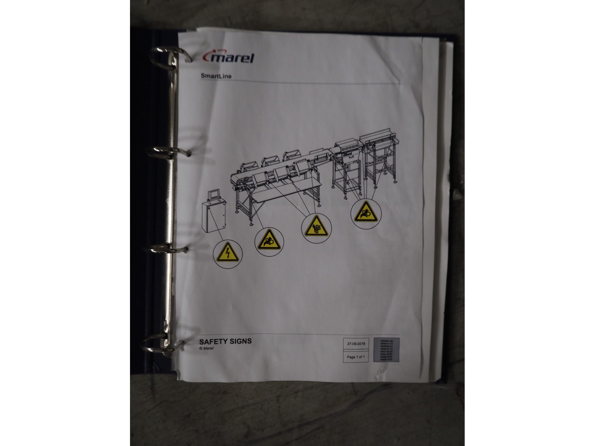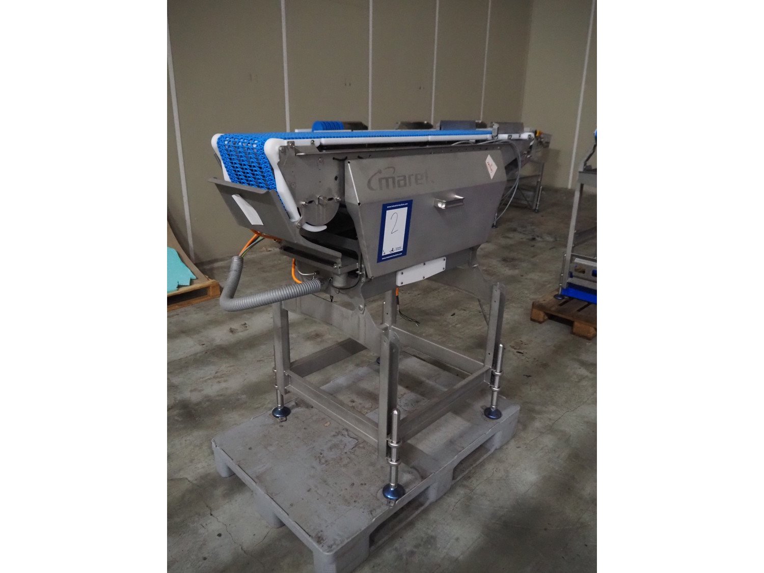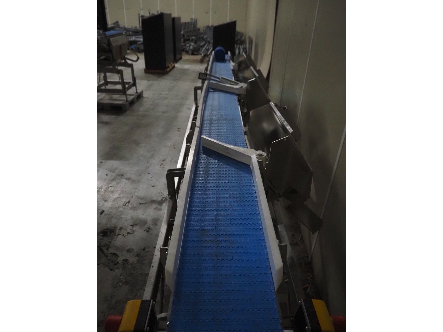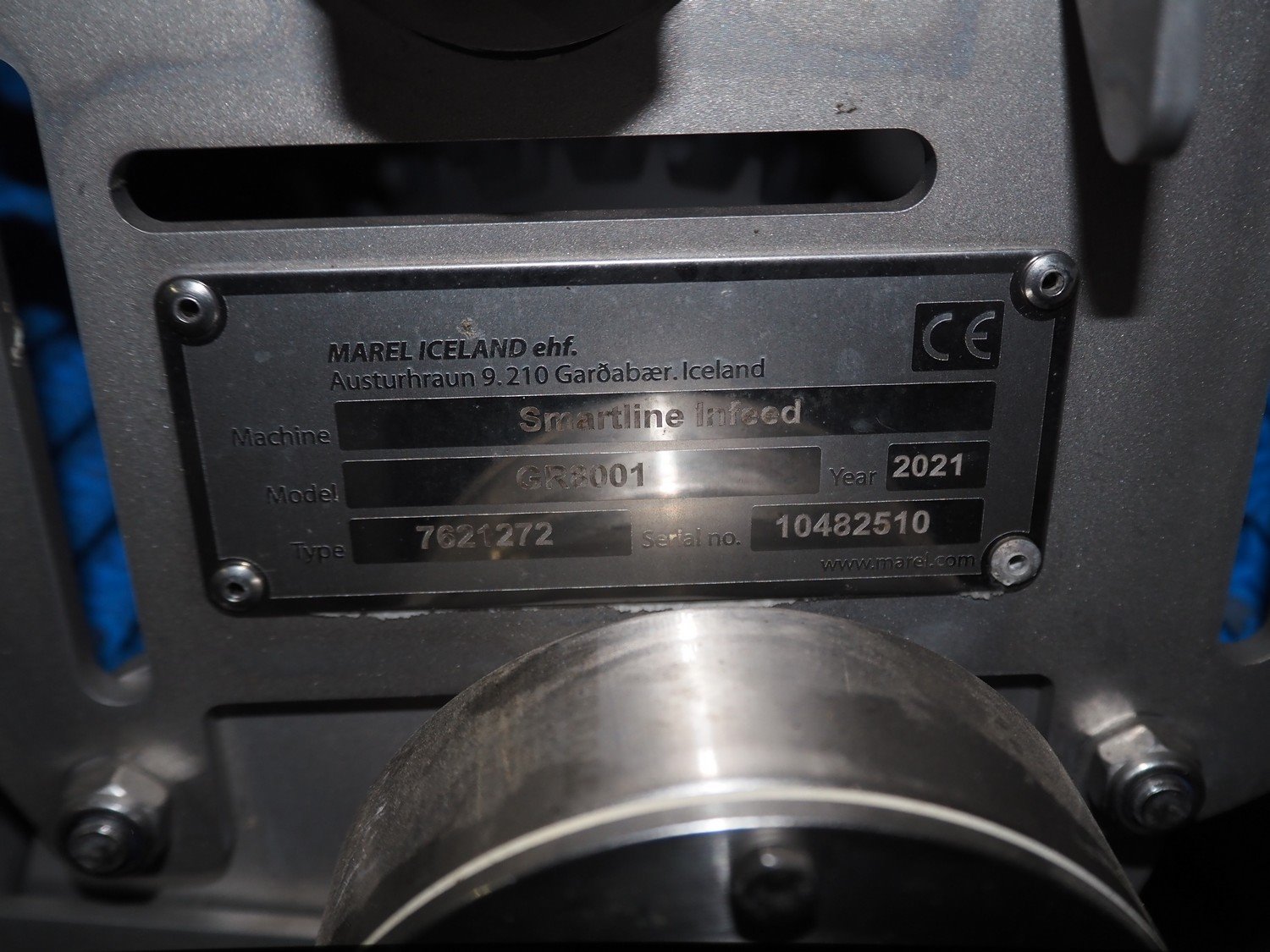 Marel Smartline weighing and sorting line consting of: Marel grader, model: GR8330, type: 2034-10, serial number: 10482612, year of construction: 2021, 230/400 V, 3 Ph, 50/60 Hz, 2.7/1.5 A, belt width: 250 mm, total dimensions: 1400 mm x 750 mm x 1300 mm. grader, plastic belt, belt width: 250 mm, total dimensions: 5000 mm x 1000 mm x 1450 mm, Marel weighing belt, model: GR8220, type: 7684852, year of construction: 2022, plastic mesh belt, belt width: 250 mm, total dimensions: 1500 mm x 800 mm x 1250 mm, Marel infeed belt, model: GR8001, type: 7621272, serial number: 10482510, year of construction: 2021, plastic belt, belt width: 260 mm, total dimensions: 900 mm x 500 mm x 1350 mm, Marel outfeed belt, model: 2.1.43 LAMELLENBAND, type: HM0101, serial number: LF858411, year of construction: 2021, plastic belt, belt width: 300 mm, total dimensions: 1400 mm x 500 mm x 1800 mm. Kavel locatie: Ertveldweg 31, 5231 XA Den Bosch, Nederland