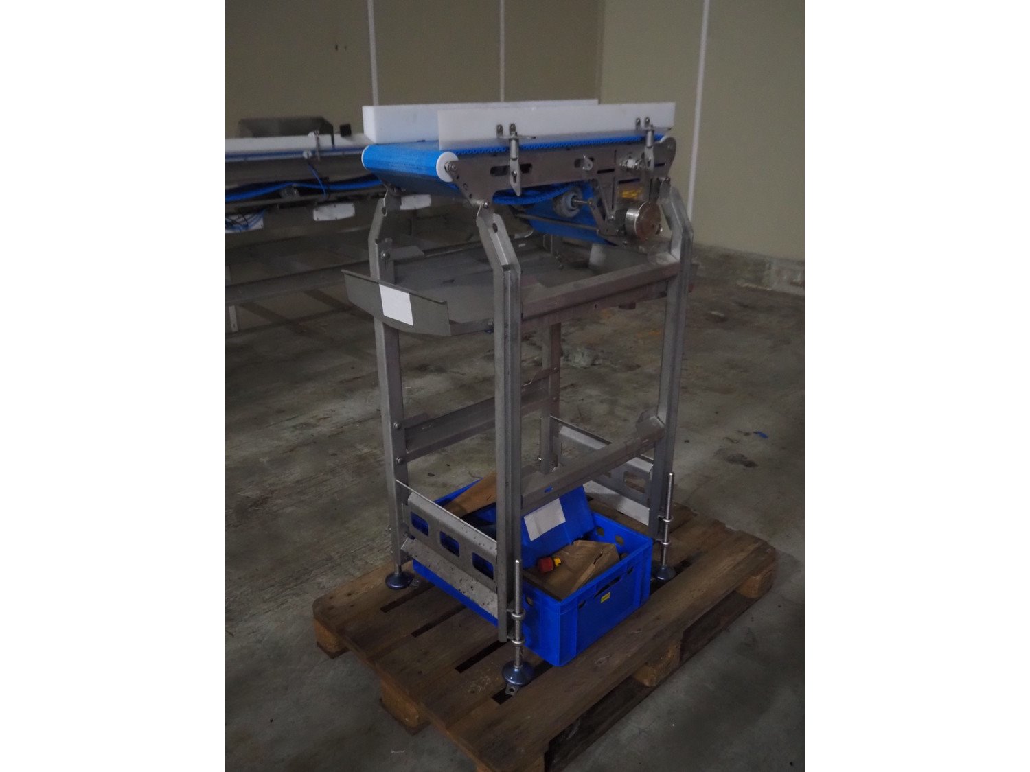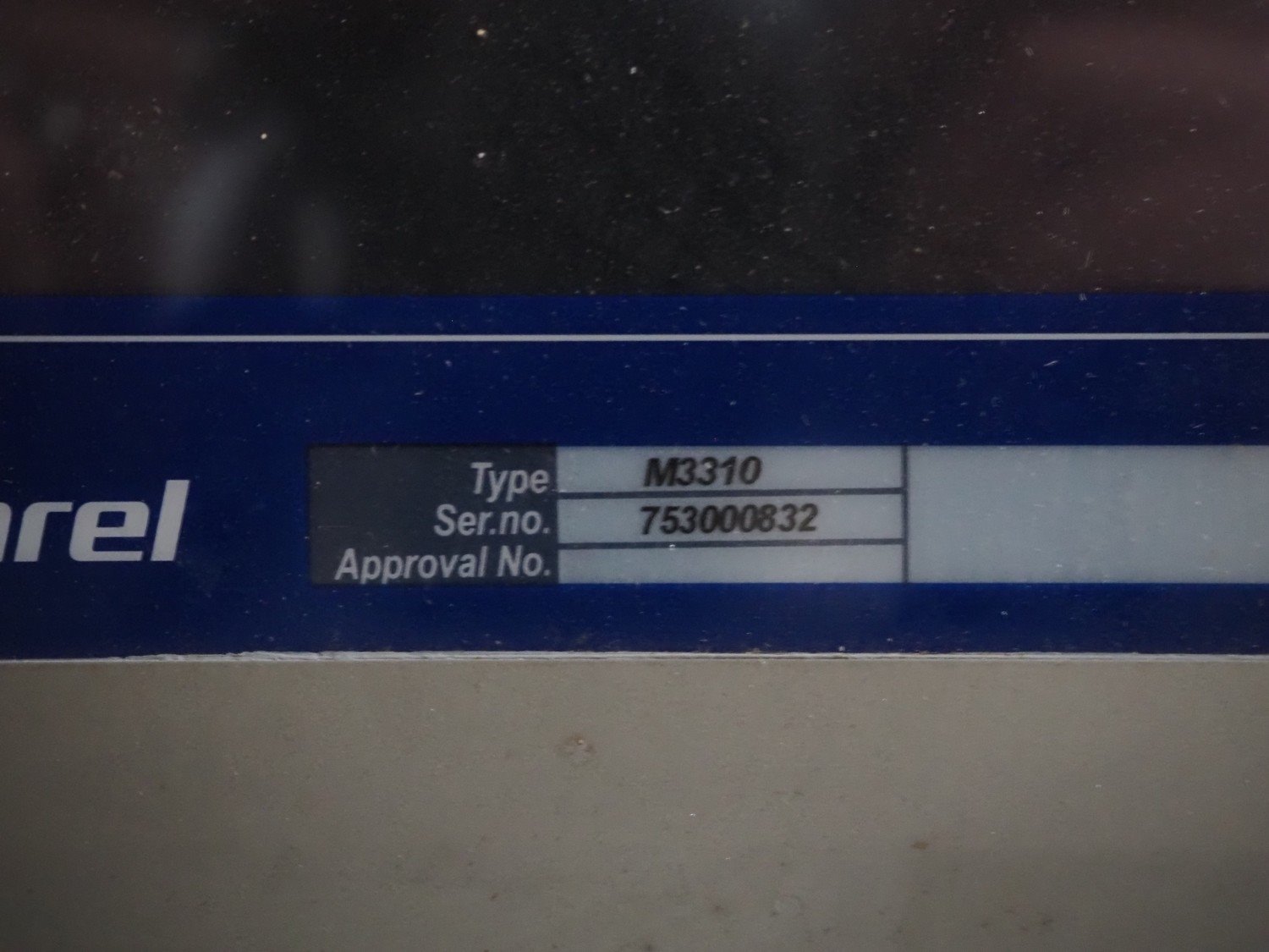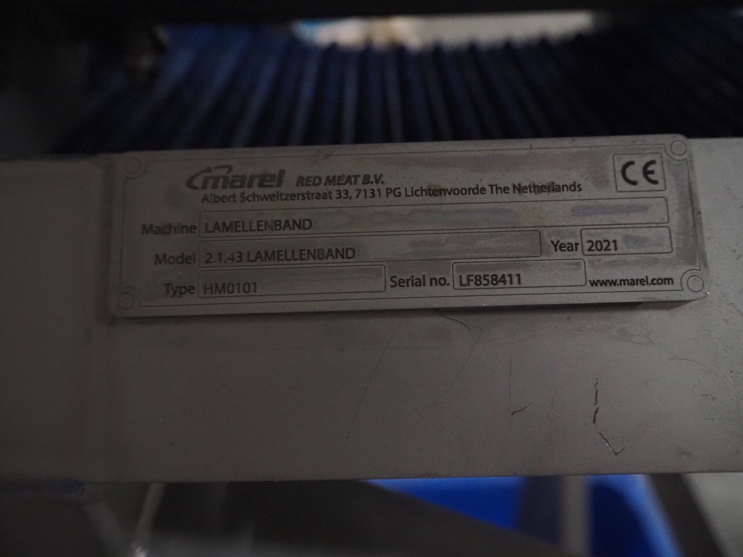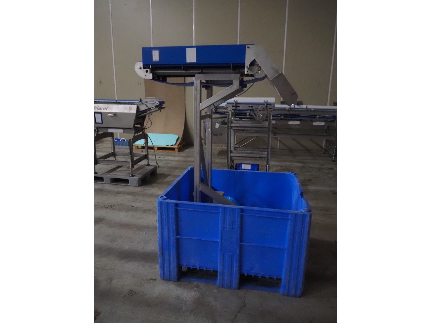 Marel Smartline weighing and sorting line consting of: Marel grader, model: GR8330, type: 2034-10, serial number: 10482612, year of construction: 2021, 230/400 V, 3 Ph, 50/60 Hz, 2.7/1.5 A, belt width: 250 mm, total dimensions: 1400 mm x 750 mm x 1300 mm. grader, plastic belt, belt width: 250 mm, total dimensions: 5000 mm x 1000 mm x 1450 mm, Marel weighing belt, model: GR8220, type: 7684852, year of construction: 2022, plastic mesh belt, belt width: 250 mm, total dimensions: 1500 mm x 800 mm x 1250 mm, Marel infeed belt, model: GR8001, type: 7621272, serial number: 10482510, year of construction: 2021, plastic belt, belt width: 260 mm, total dimensions: 900 mm x 500 mm x 1350 mm, Marel outfeed belt, model: 2.1.43 LAMELLENBAND, type: HM0101, serial number: LF858411, year of construction: 2021, plastic belt, belt width: 300 mm, total dimensions: 1400 mm x 500 mm x 1800 mm. Kavel locatie: Ertveldweg 31, 5231 XA Den Bosch, Nederland