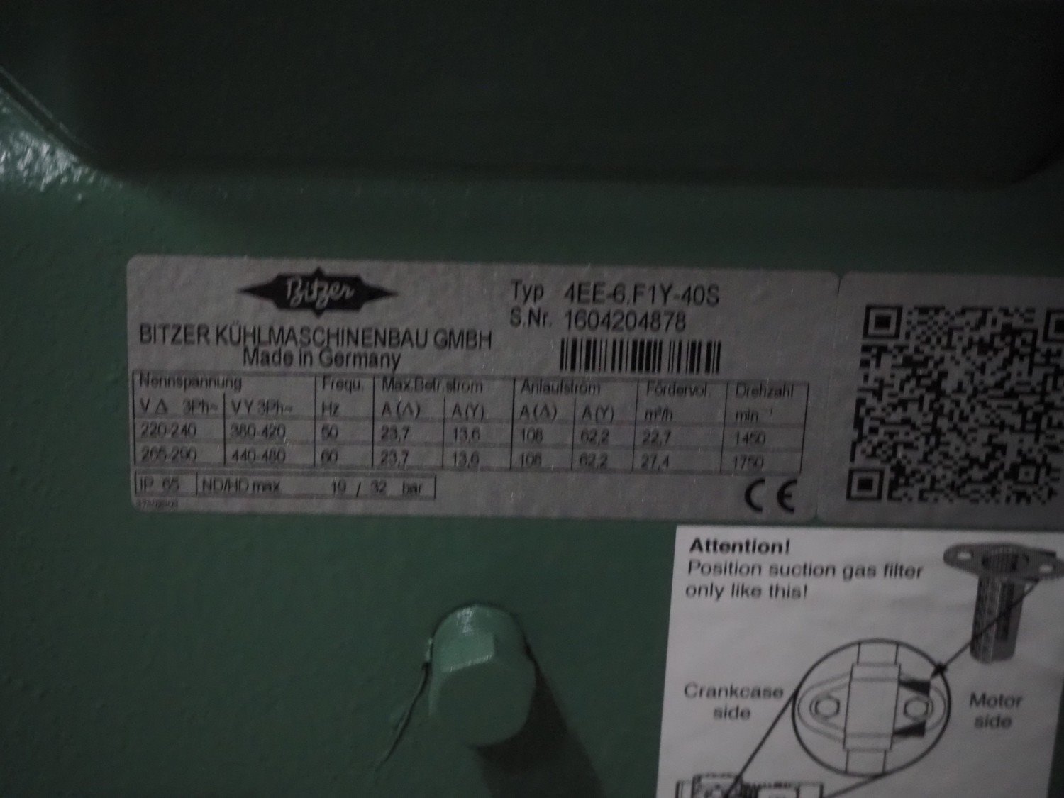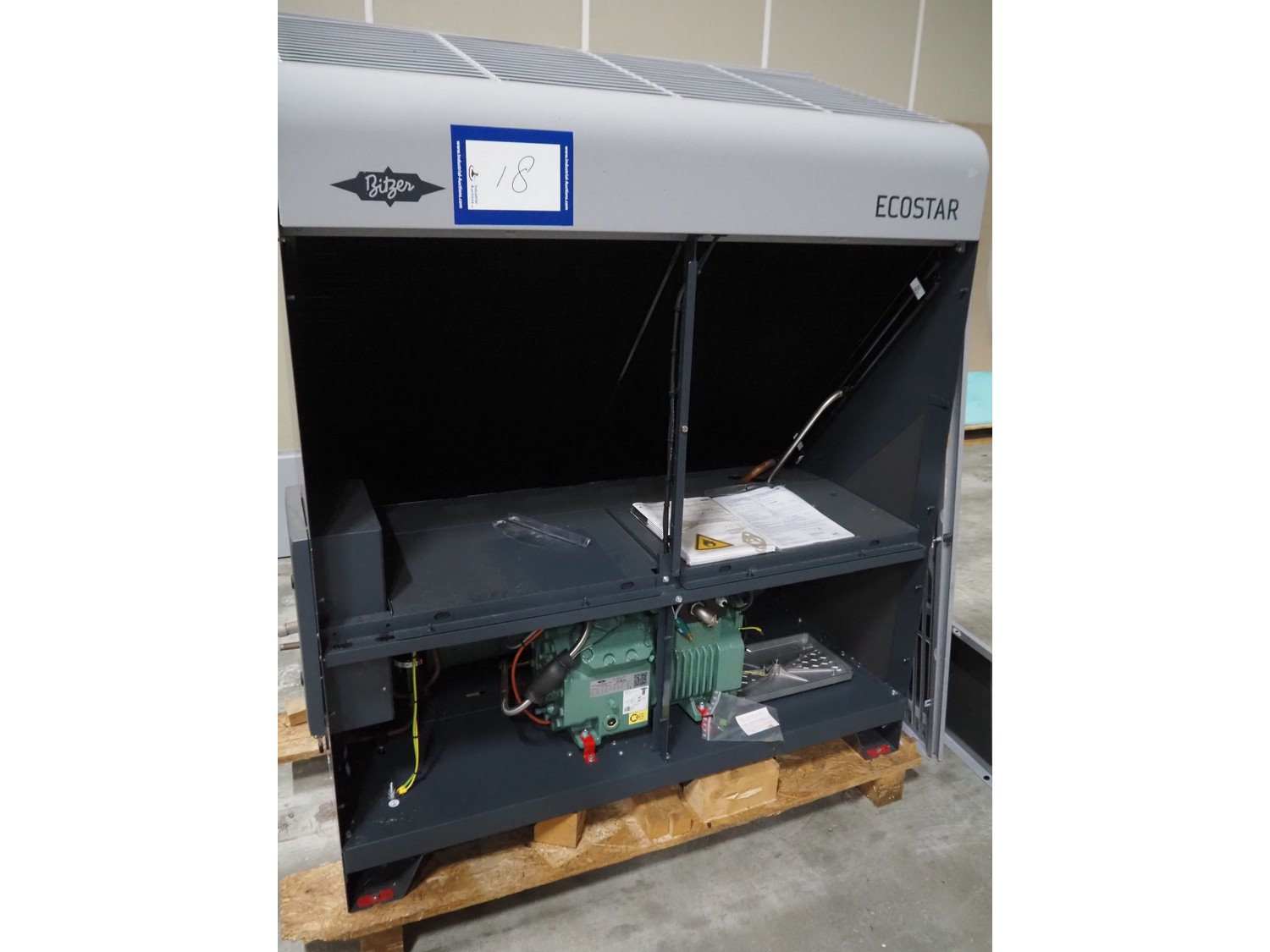 Bitzer Kühlmaschinenbau GmbH condensing unit, type: LHV7E/4EE-6.F1Y-40S, serial number: 1604211107, Bitzer Kühlmaschinenbau GmbH cooling compressor, type: 4EE-6.F1Y-40S, capacity: 22.7/27.4 m³ per hour, dimensions: 1350 mm x 700 mm x 1700 mm. Never used. Kavel locatie: Ertveldweg 31, 5231 XA Den Bosch, Nederland