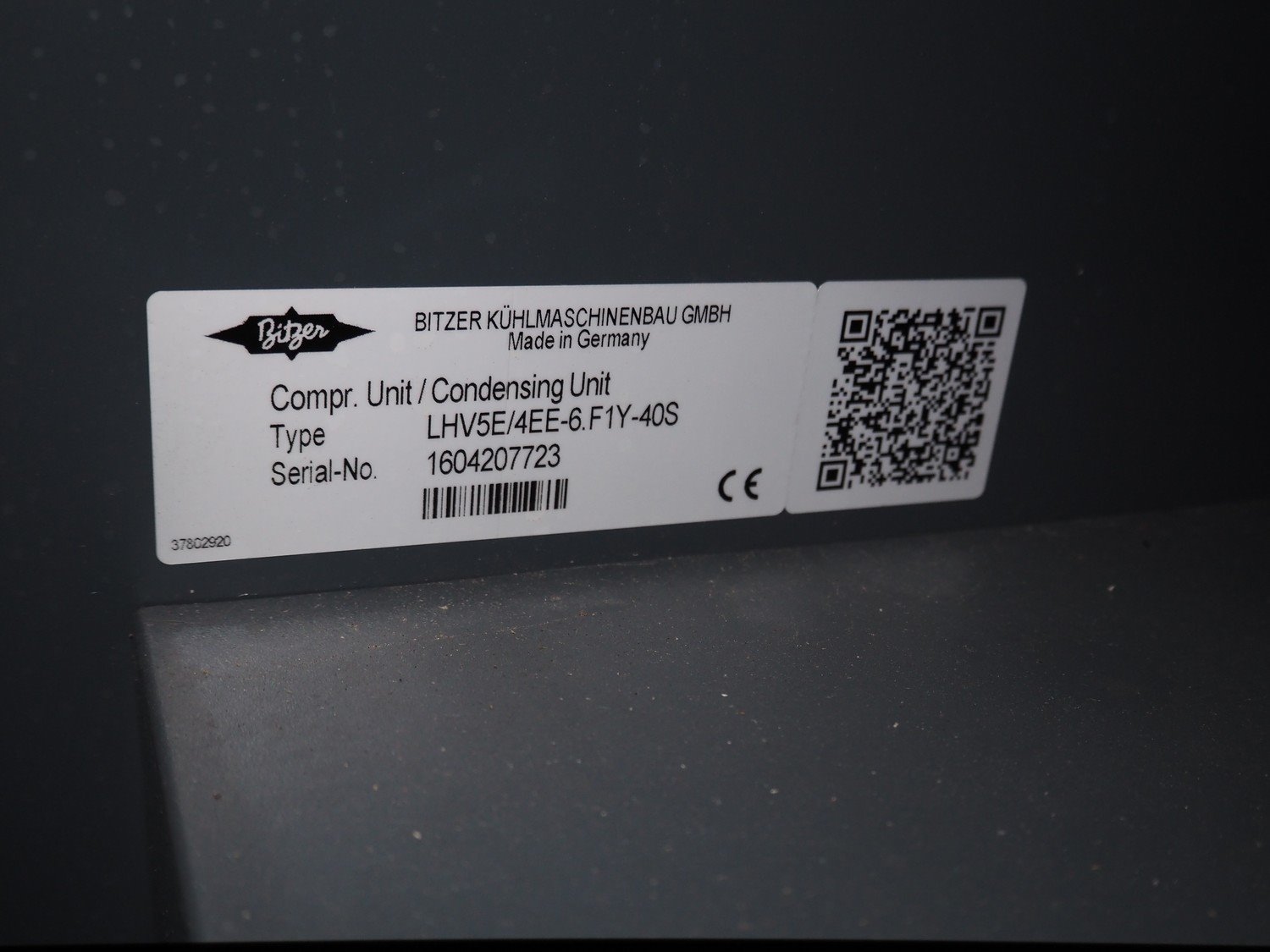 Bitzer Kühlmaschinenbau GmbH condensing unit, type: LHV7E/4EE-6.F1Y-40S, serial number: 1604207723, Bitzer Kühlmaschinenbau GmbH cooling compressor, type: 4EE-6.F1Y-40S, capacity: 22.7/27.4 m³ per hour, dimensions: 1350 mm x 700 mm x 1700 mm. Never used. Kavel locatie: Ertveldweg 31, 5231 XA Den Bosch, Nederland