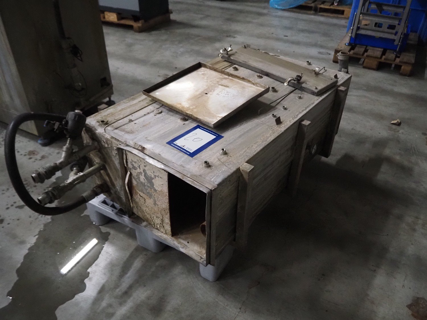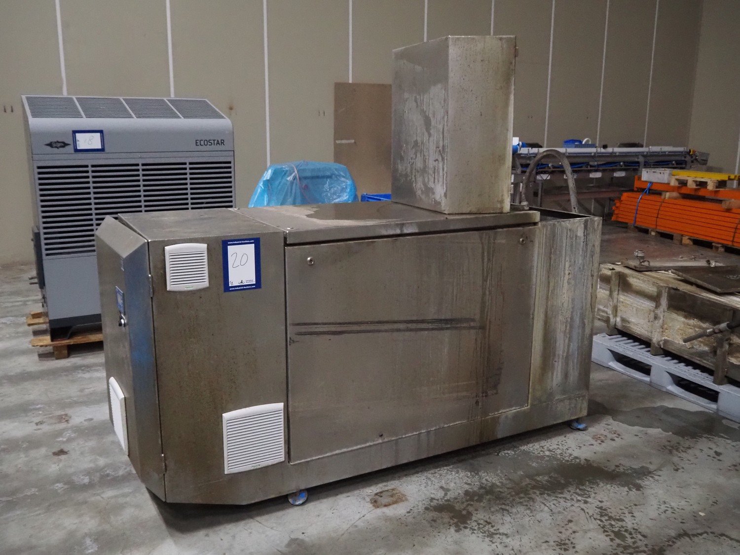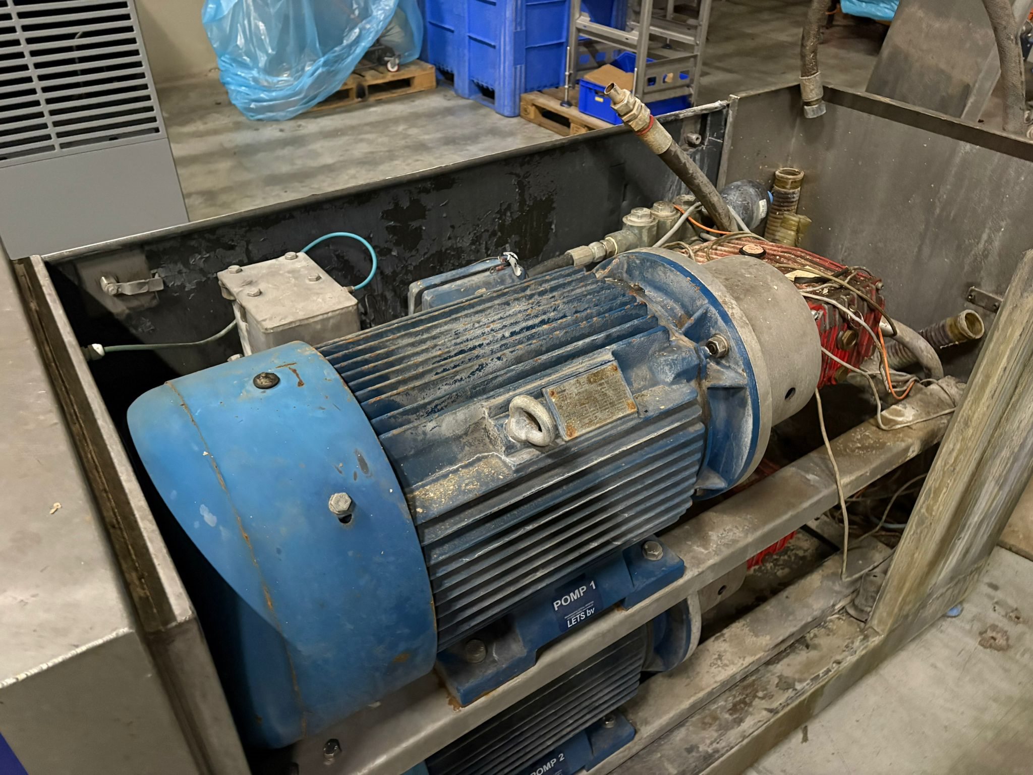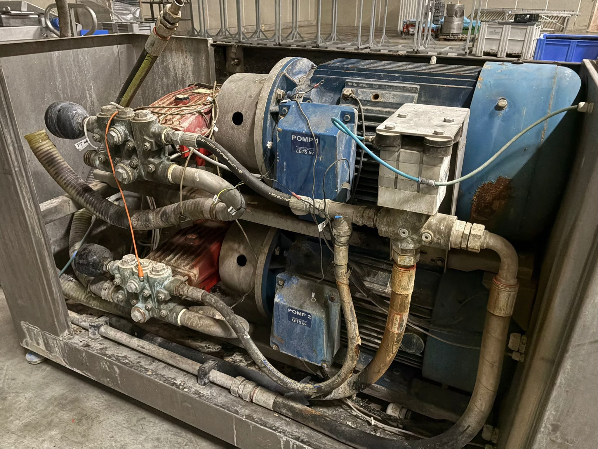 Lets BV high pressure unit with buffer tank, dimensions high pressure unit: 2150 mm x 800 mm x 2190 mm, dimensions buffer tank: 1400 mm x 800 mm x 500 mm. Kavel locatie: Ertveldweg 31, 5231 XA Den Bosch, Nederland