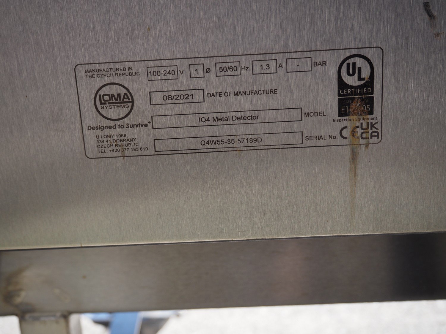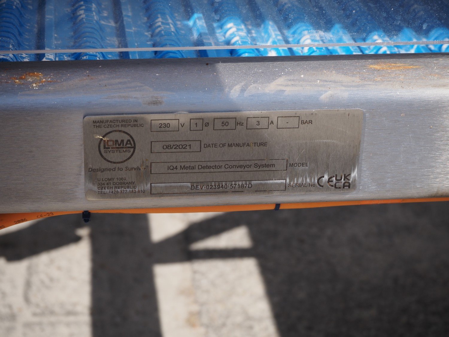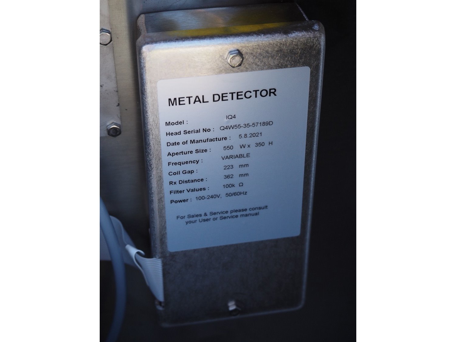 Loma Systems mobile metal detector, model: IQ4, serial number: Q4W55-35-57189D, year of construction: 08/2021, 100-240 V, 1 Ph, 50/60 Hz, 1.3 A, clearance: 550 mm x 290 mm, plastic belt, belt width: 500 mm, total dimensions: 2300 mm x 1100 mm x 1300 mm. Kavel locatie: Ertveldweg 31, 5231 XA Den Bosch, Nederland