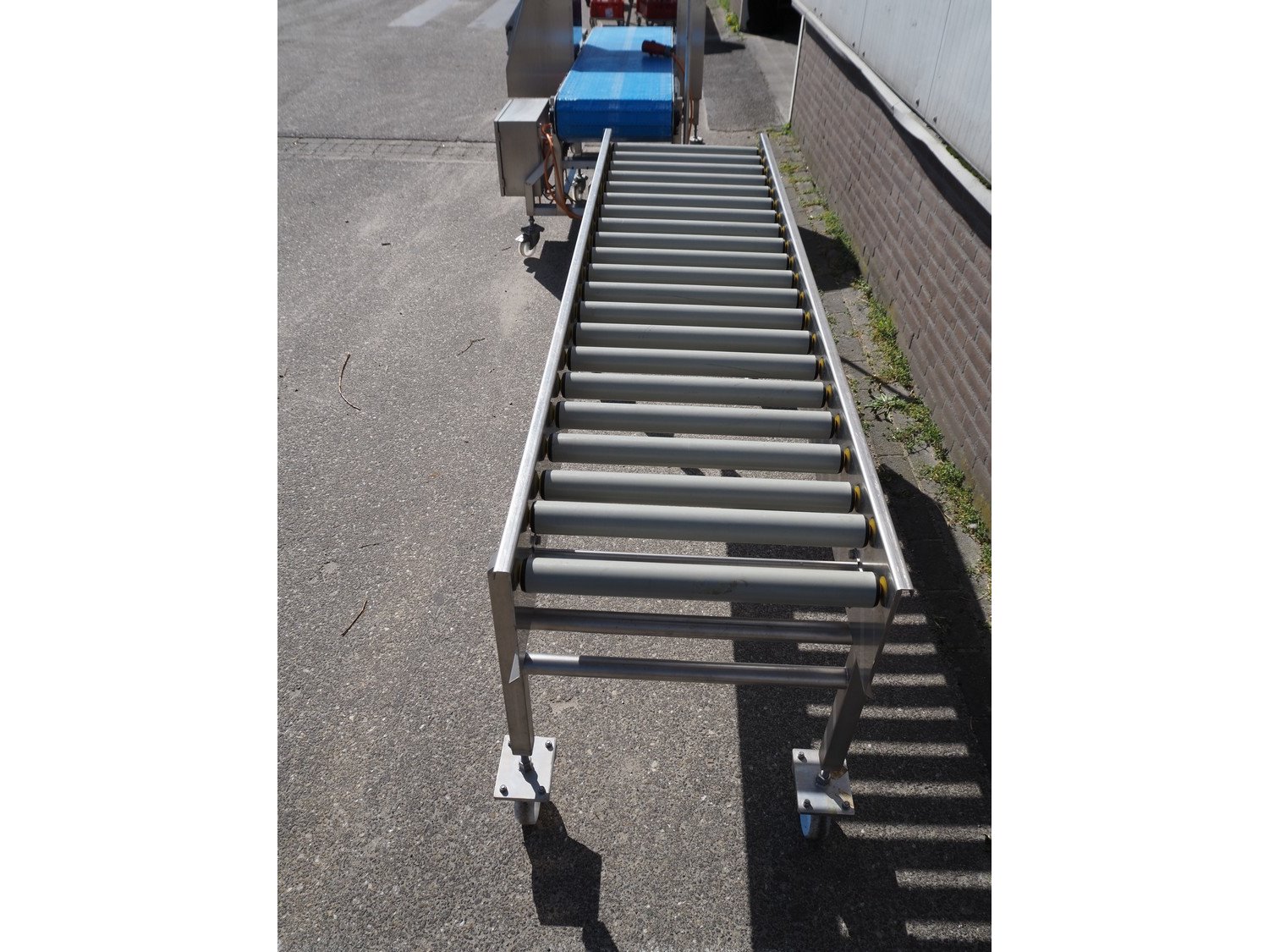 Mobile roller conveyor, s/s frame, plastic rollers, roller width: 480 mm, total dimensions: 2100 mm x 600 mm x 900 mm. Kavel locatie: Ertveldweg 31, 5231 XA Den Bosch, Nederland