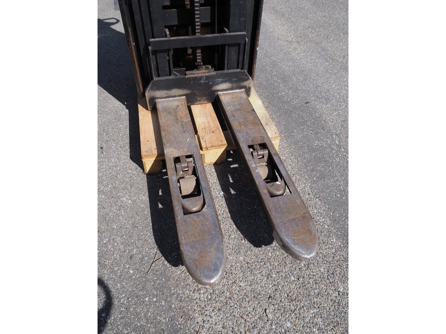 Toyota electric pallet lifter, type: SWE120L, number: 6389873, year of construction: 2015, capacity: 1200 kg, fork length: 1150 mm, total dimensions: 1900 mm x 800 mm x 1880 mm. Without charger. Technical condition unknown. Kavel locatie: Ertveldweg 31, 5231 XA Den Bosch, Nederland