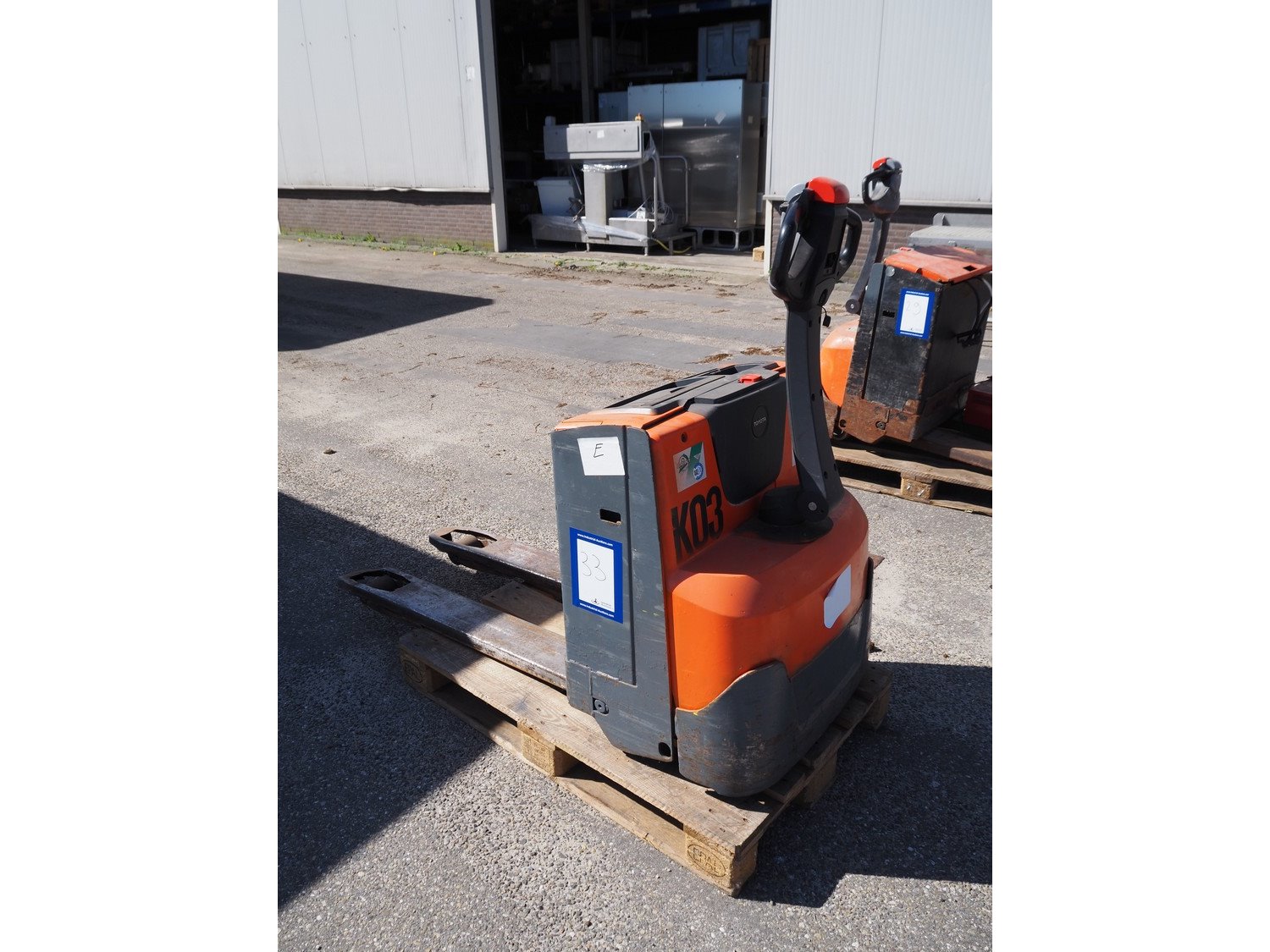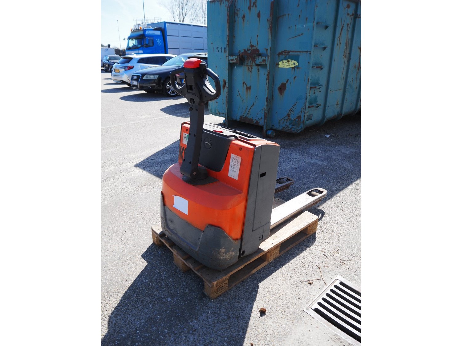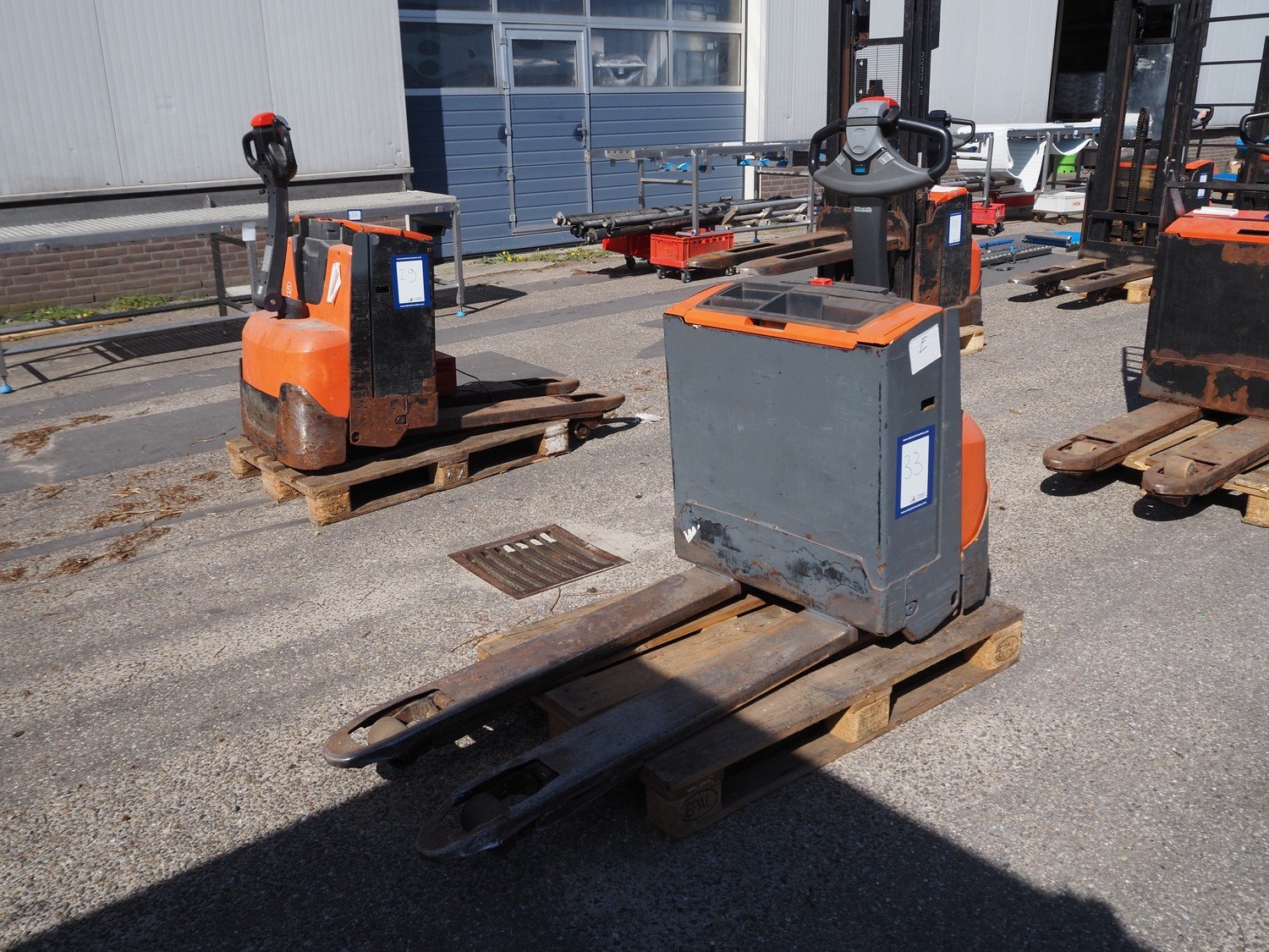 Toyota electric pallet lifter, type: LWE160, number: 6558023, year of construction: 2018, capacity: 1600 kg, fork length: 1100 mm, total dimensions: 1600 mm x 700 mm x 1300 mm. Without charger. Technical condition unknown. Kavel locatie: Ertveldweg 31, 5231 XA Den Bosch, Nederland