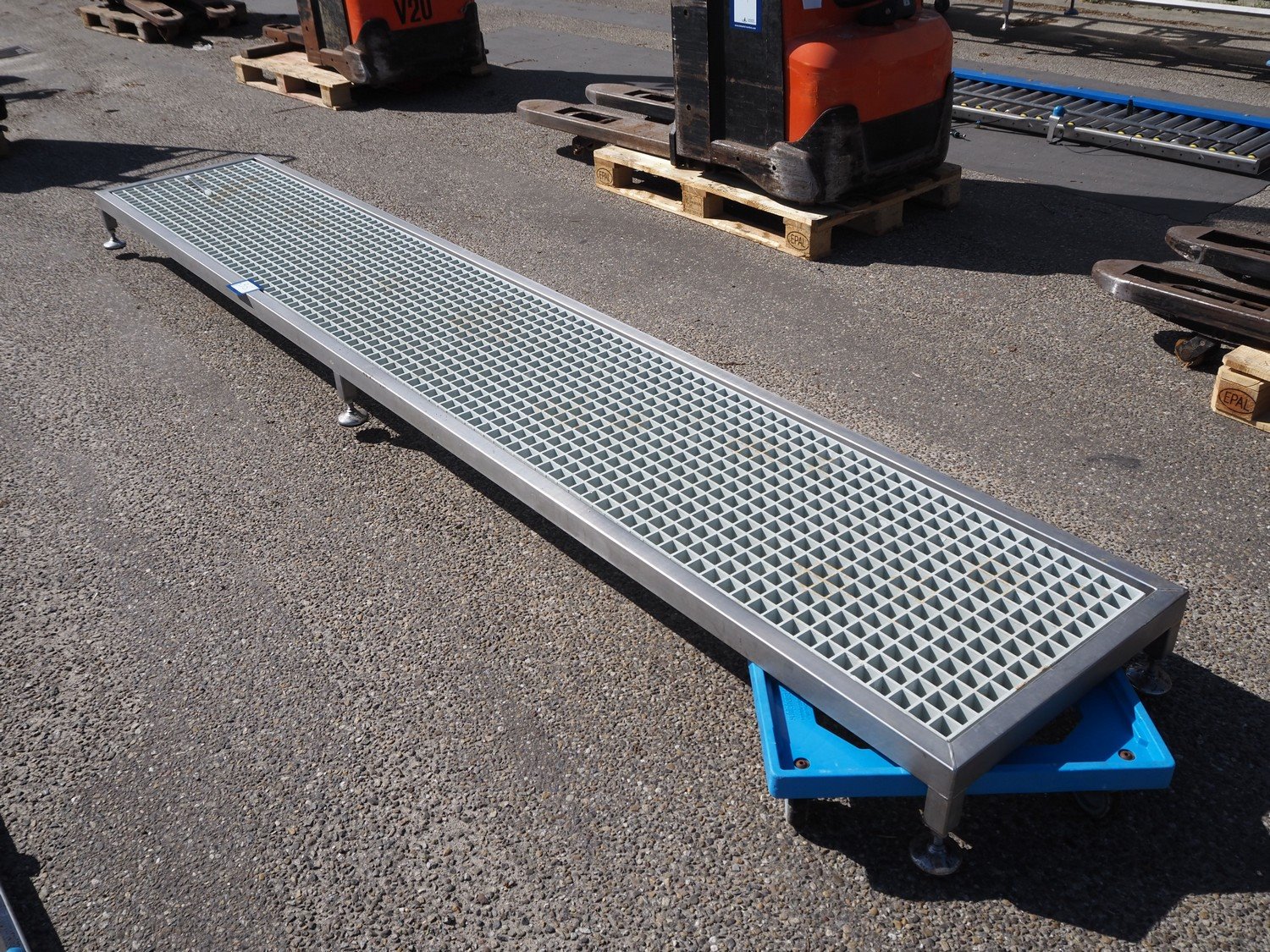 S/s frame, dimensions: 3750 mm x 650 mm x 230 mm. Rollies not included. Kavel locatie: Ertveldweg 31, 5231 XA Den Bosch, Nederland