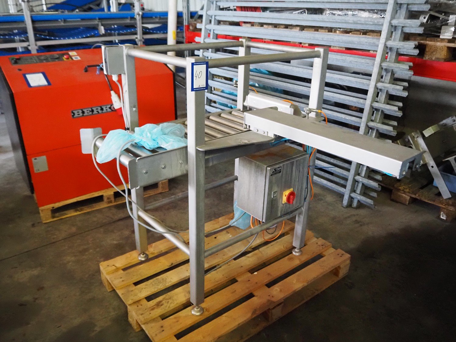 FA-Tech roller conveyor with rejector, s/s rollers, roller width: 400 mm, total dimensions: 1050 mm x 1300 mm x 1150 mm. Kavel locatie: Ertveldweg 31, 5231 XA Den Bosch, Nederland