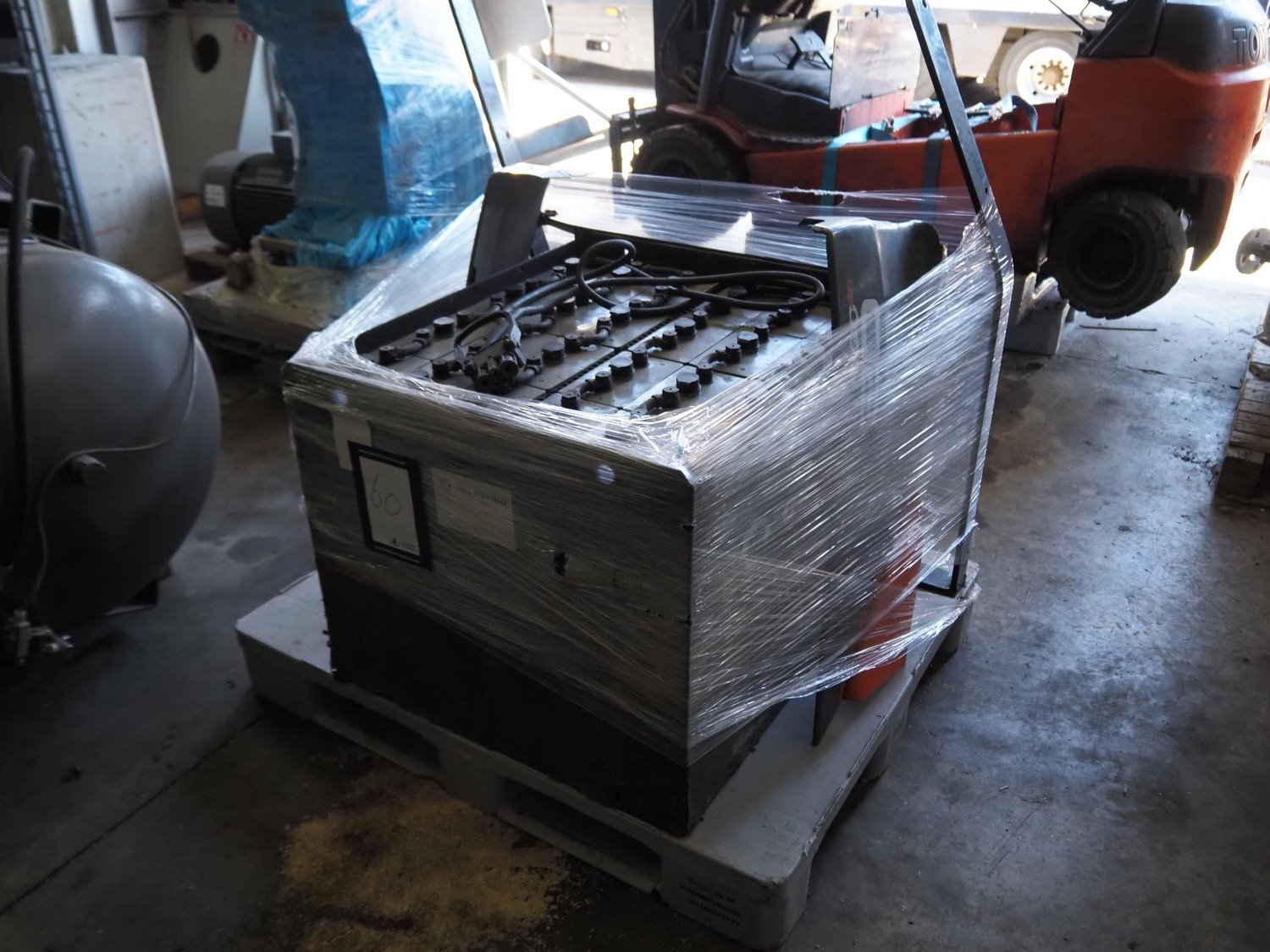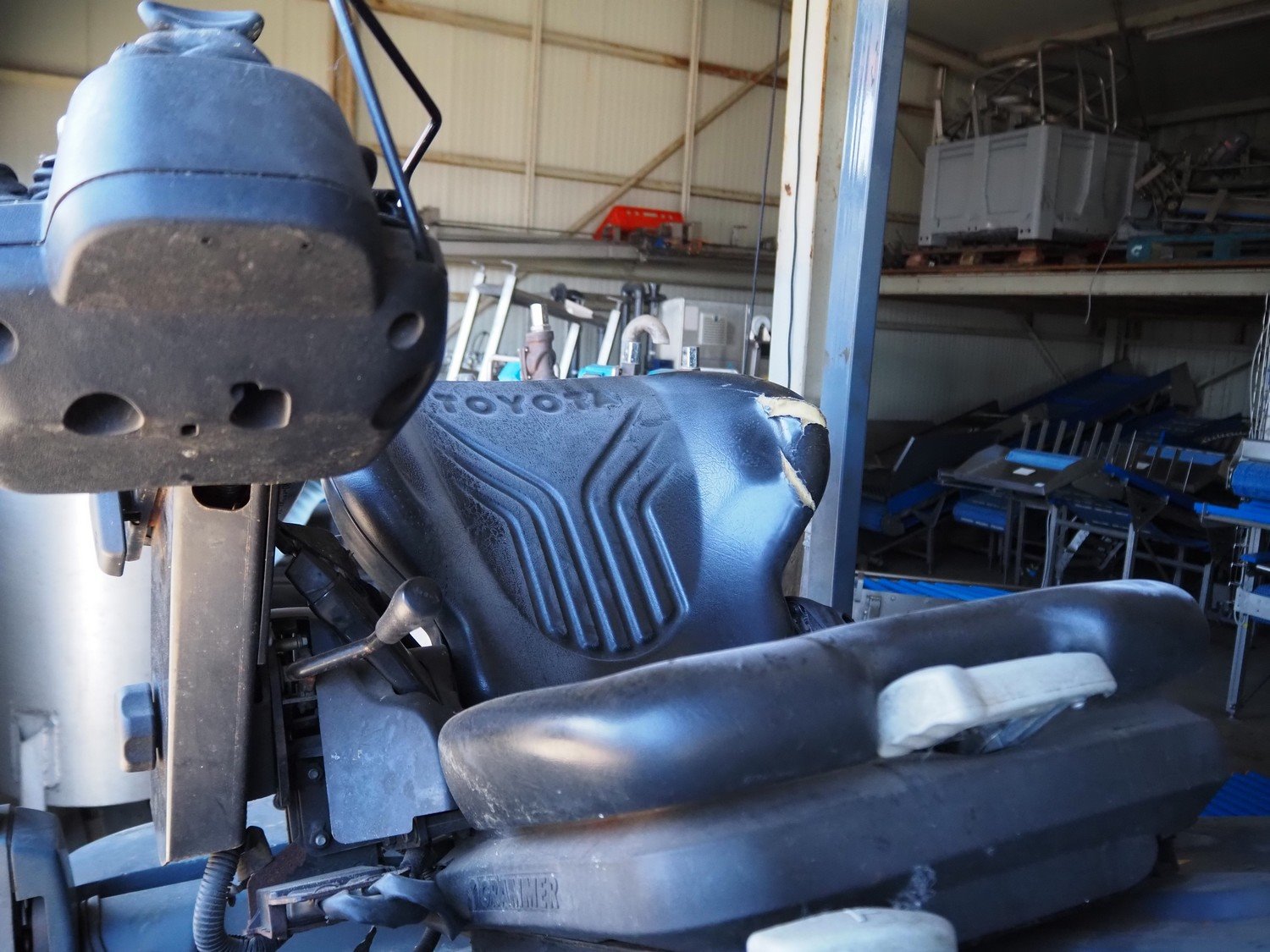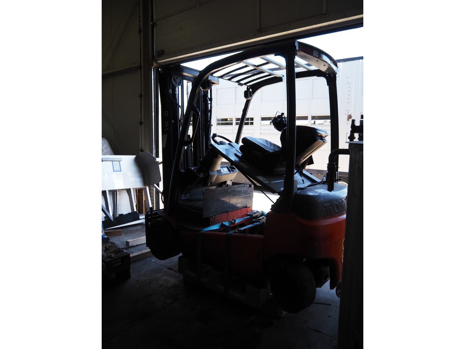 Toyota forklift, fabrication number: 8FBM20T-10423, capacity: 2000 kg, dimensions: 2100 mm x 1000 mm x 2100 mm. With Celectric accu, type: 24/6 PzS 750, 48 V, 750 Ah, weight: 1070 kg, dimensions: 750 mm x 900 mm x 1100 mm. Technical condition unknown. Without forks. Kavel locatie: Ertveldweg 31, 5231 XA Den Bosch, Nederland