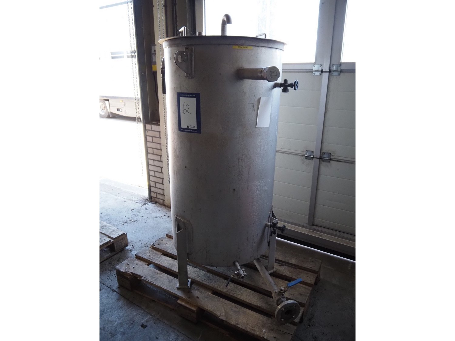 S/s tank, dimensions: Ø 700 mm x 1500 mm. Kavel locatie: Ertveldweg 31, 5231 XA Den Bosch, Nederland