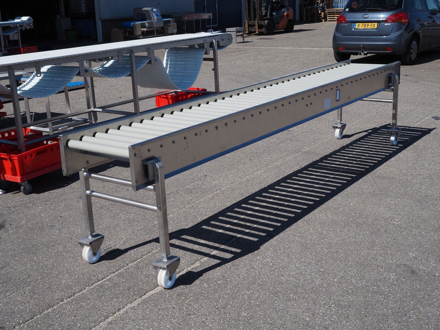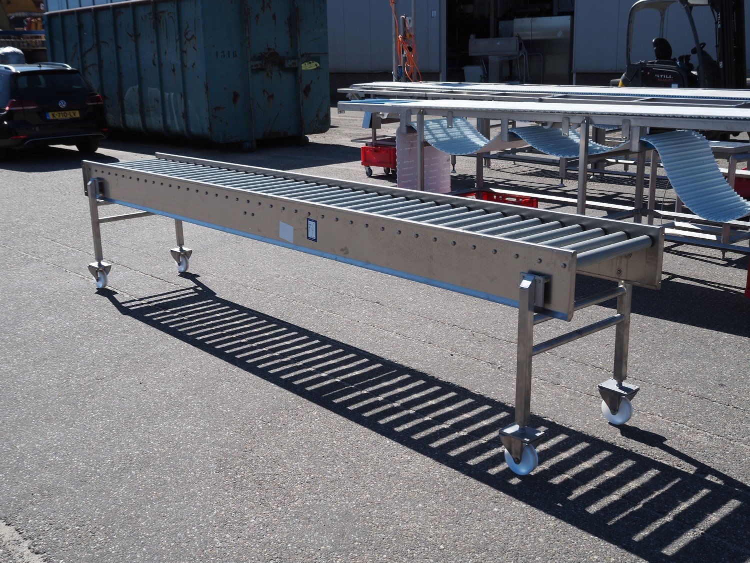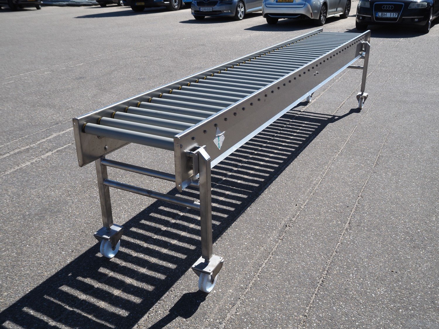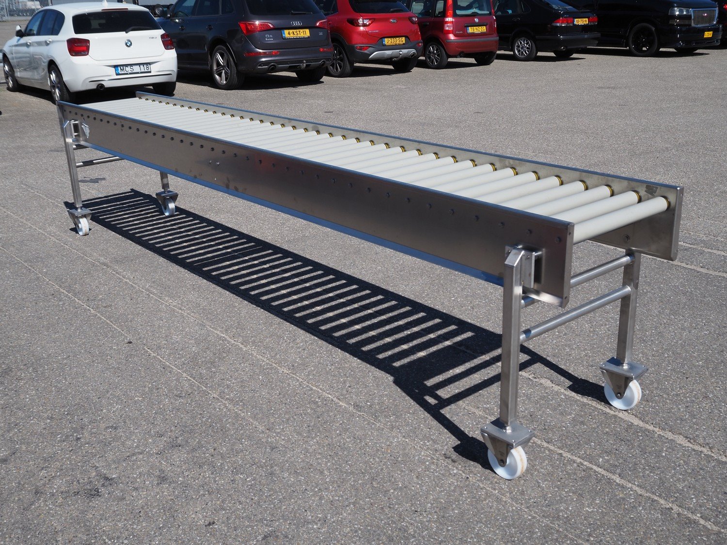 Mobile roller conveyor, s/s frame, plastic rollers, roller width: 500 mm, total dimensions: 3900 mm x 550 mm x 850 mm. Kavel locatie: Ertveldweg 31, 5231 XA Den Bosch, Nederland
