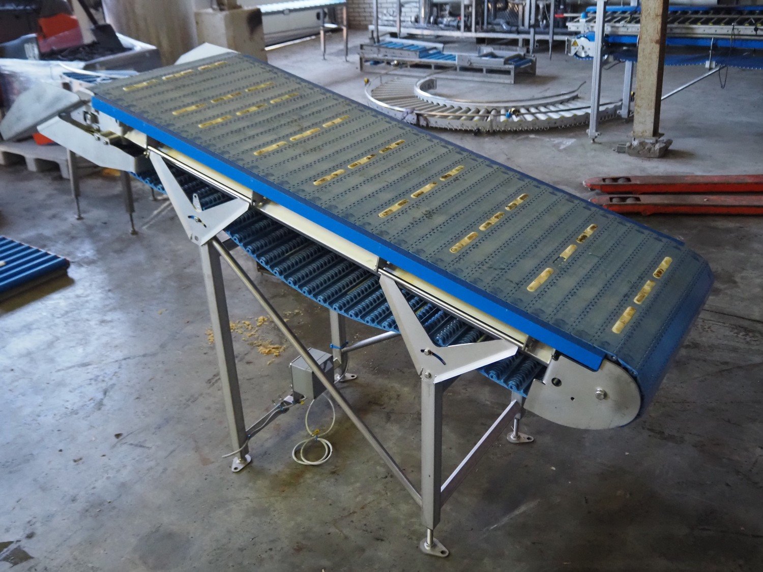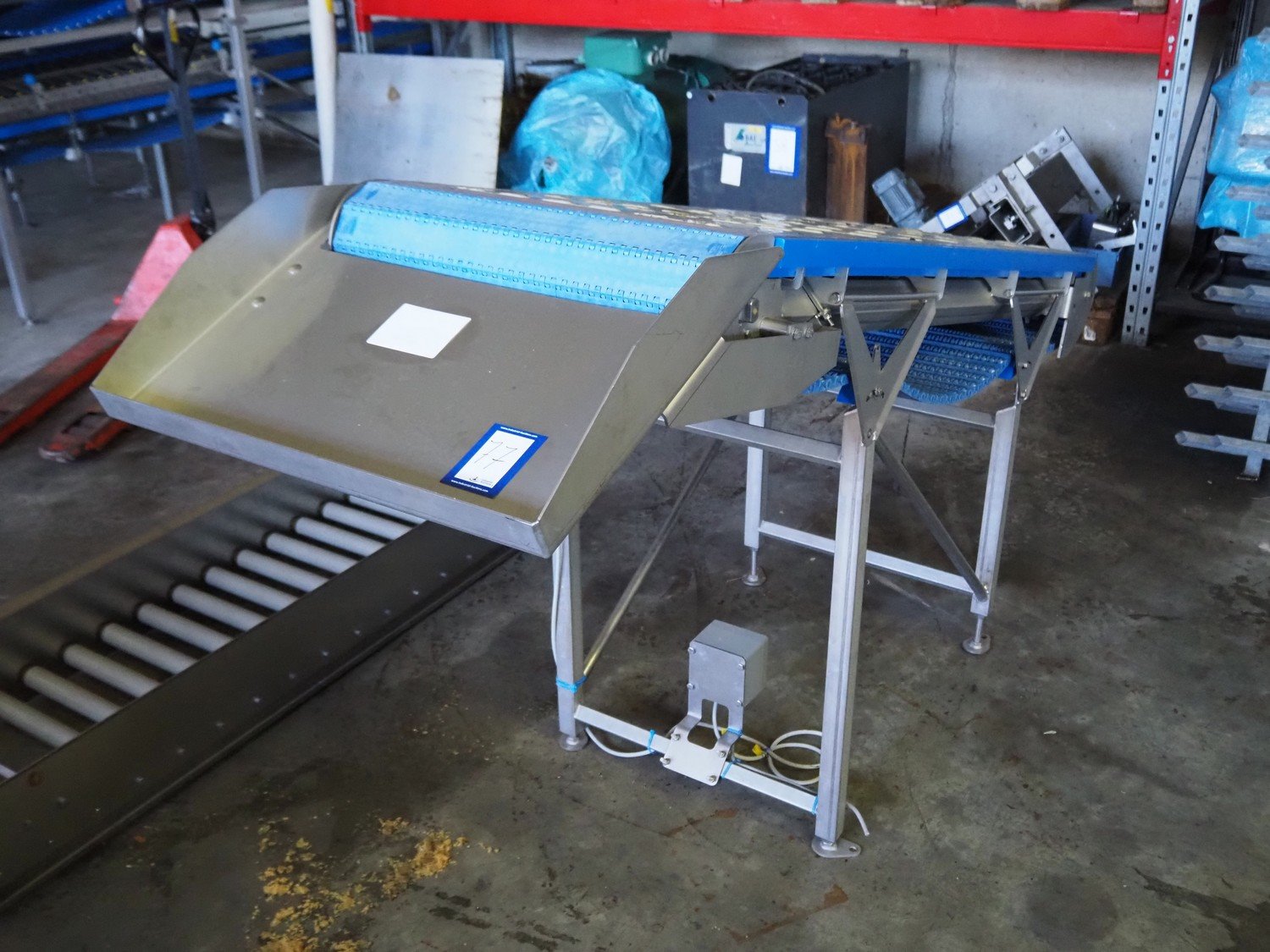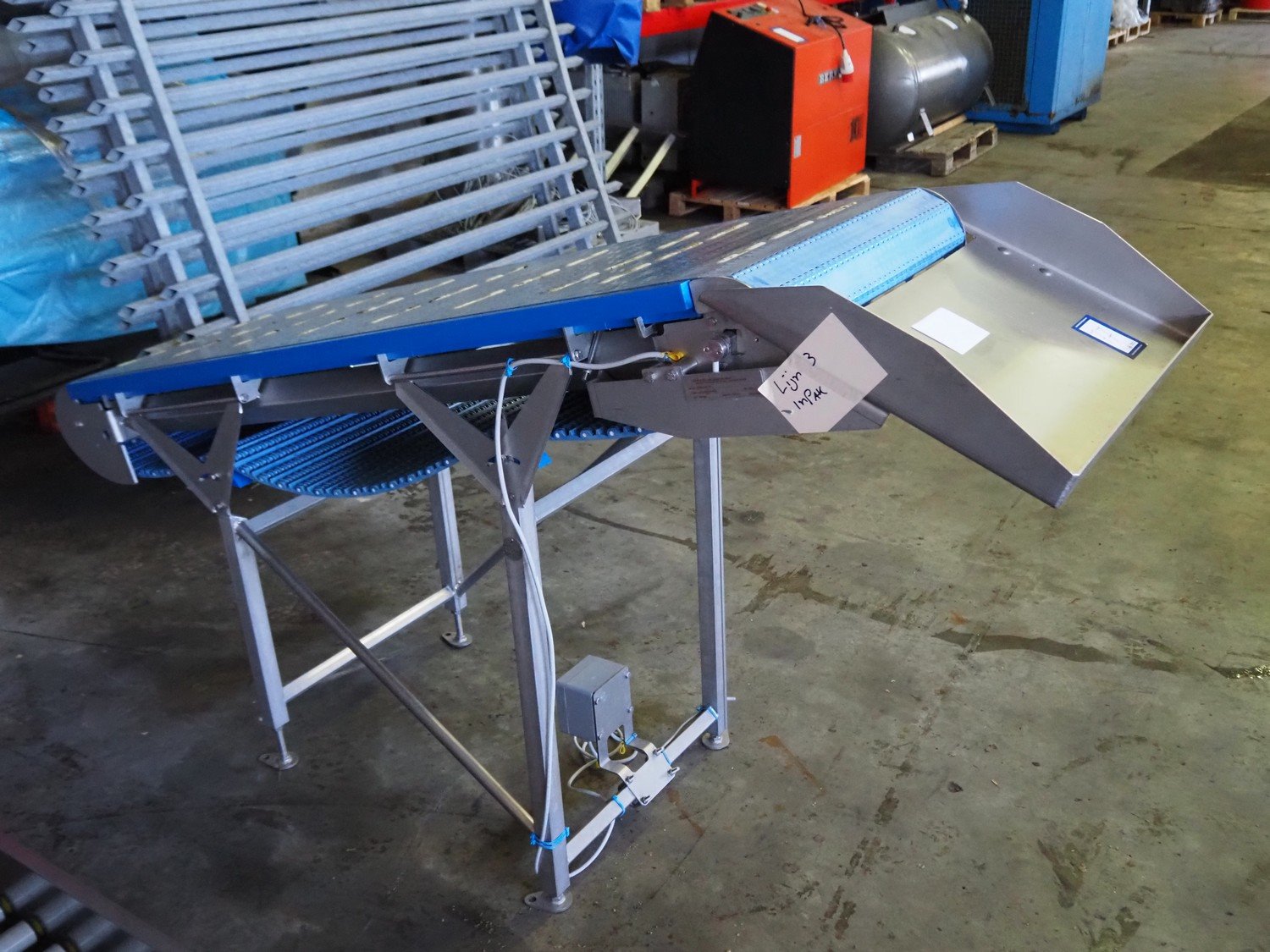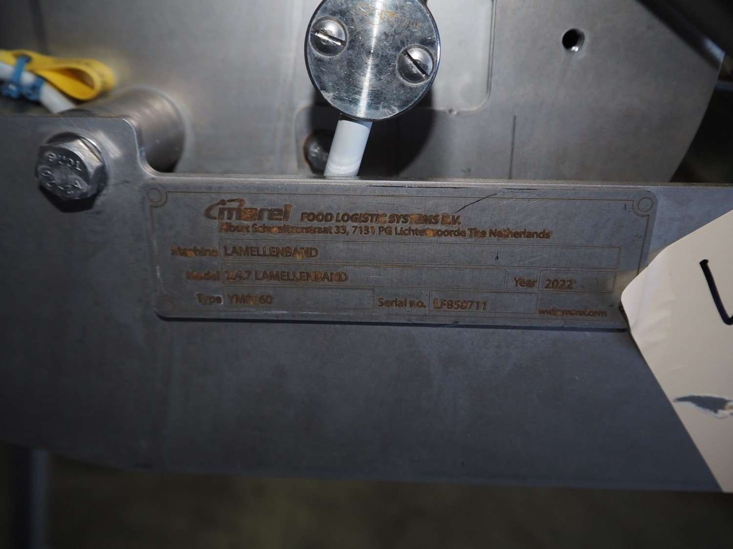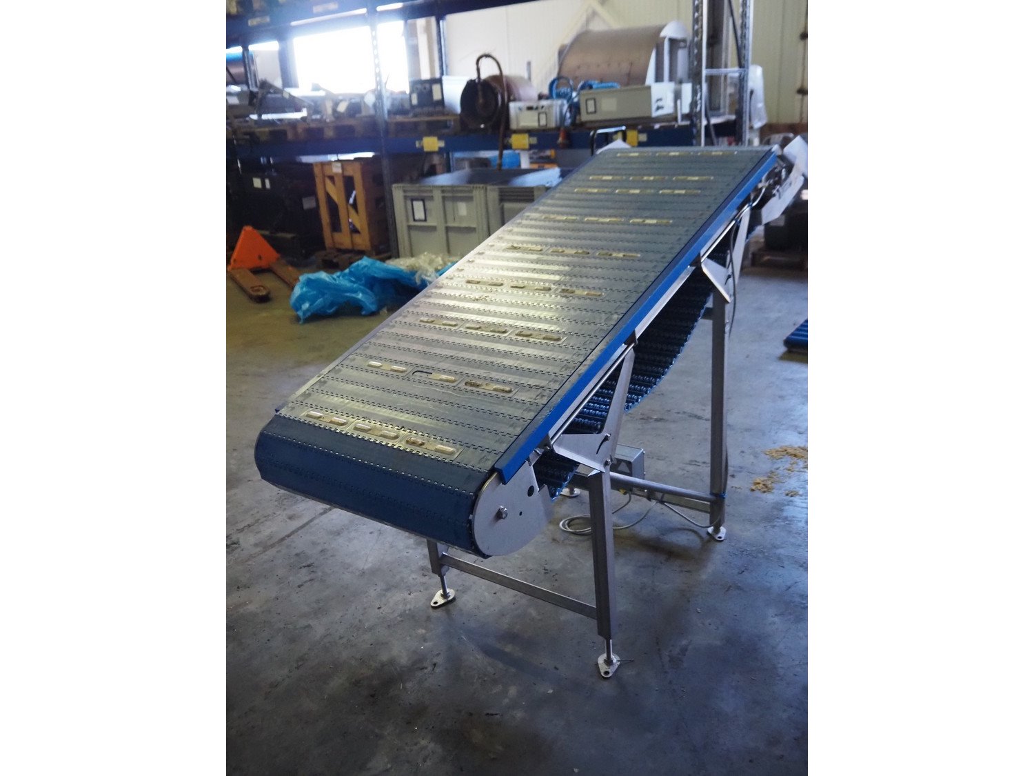 Marel elevating belt, model: 2.4.7 LAMELLENBAND, type: YM0160, serial number: LF858711, year of construction: 2022, s/s frame, plastic belt, belt width: 600 mm, total dimensions: 2000 mm x 700 mm x 1250 mm. Kavel locatie: Ertveldweg 31, 5231 XA Den Bosch, Nederland
