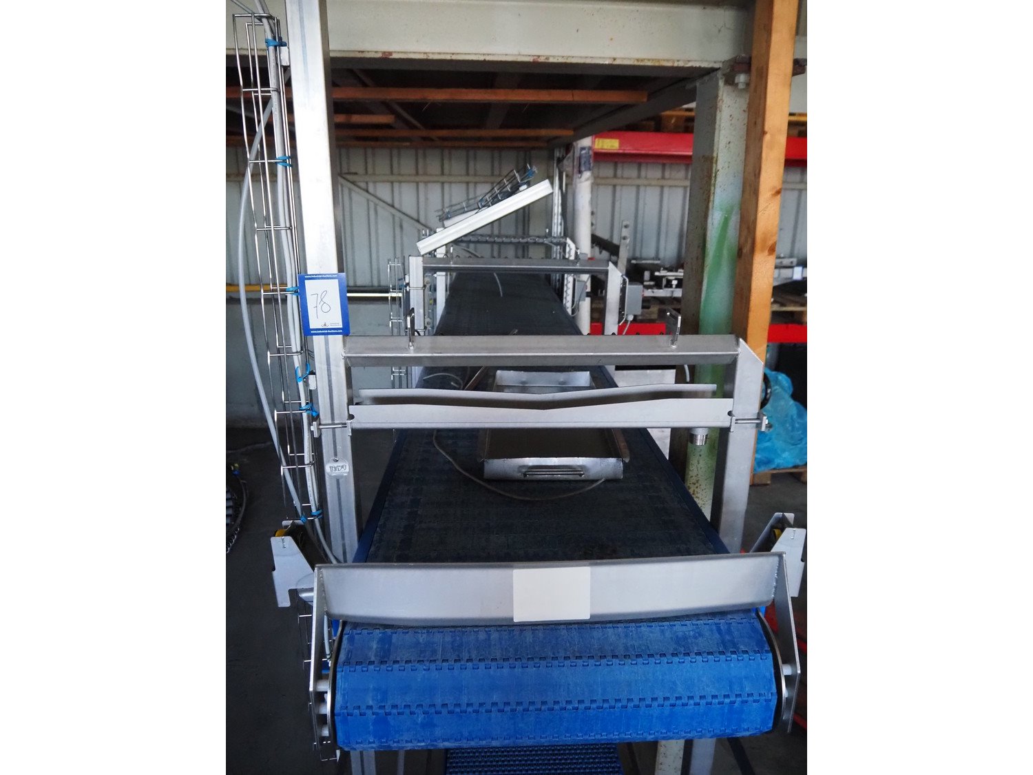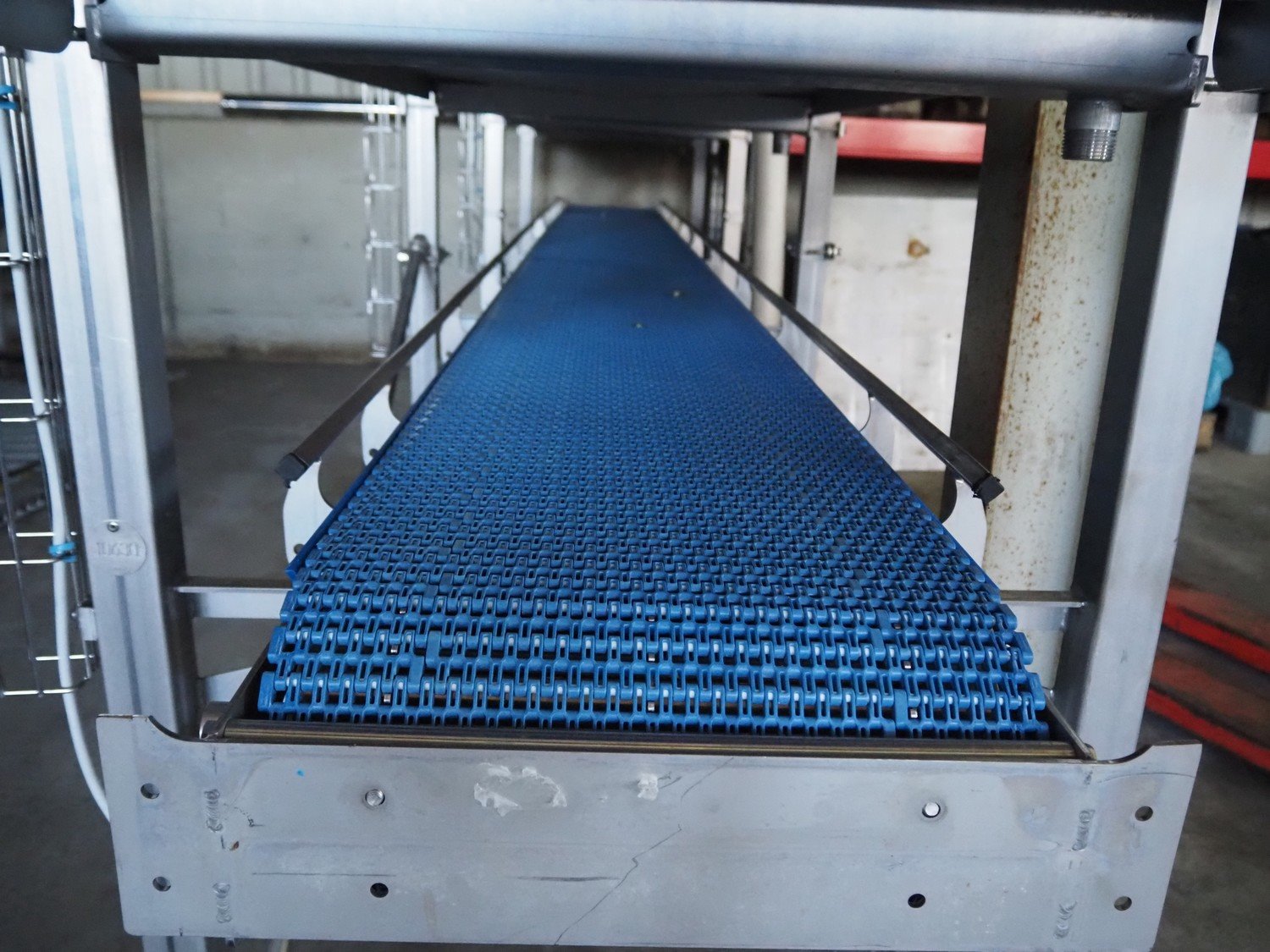 Double transport belt, s/s frame, plastic belts, belt width: 600 mm and 340 mm, total dimensions: 4000 mm x 900 mm x 1800 mm. Kavel locatie: Ertveldweg 31, 5231 XA Den Bosch, Nederland
