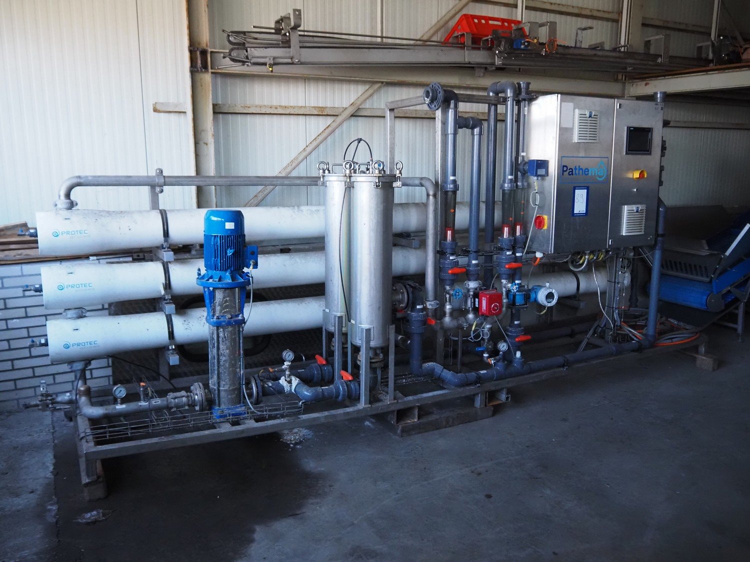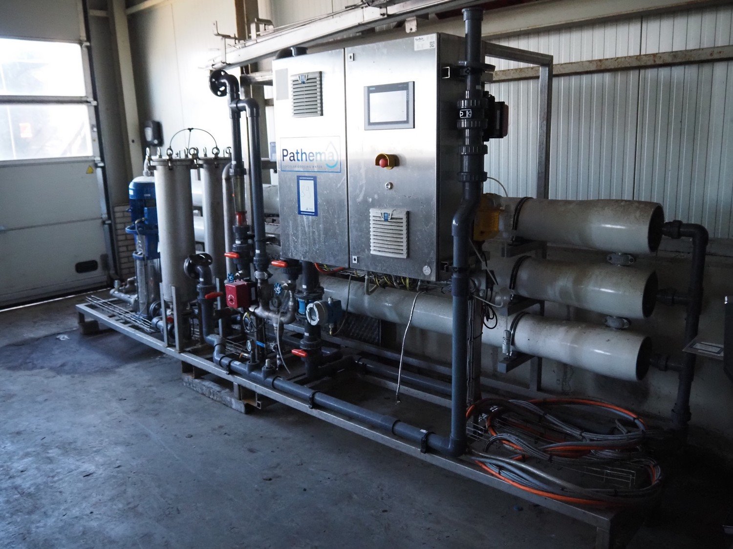 Turbin reverse osmose system, type: RO-10, serial number: PAT2020-384, year of construction: 11-1-2021, design volume: 10 m³ per hour, 16 bar, 32 amp, dimensions: 4600 mm x 1000 mm x 2000 mm. Kavel locatie: Ertveldweg 31, 5231 XA Den Bosch, Nederland