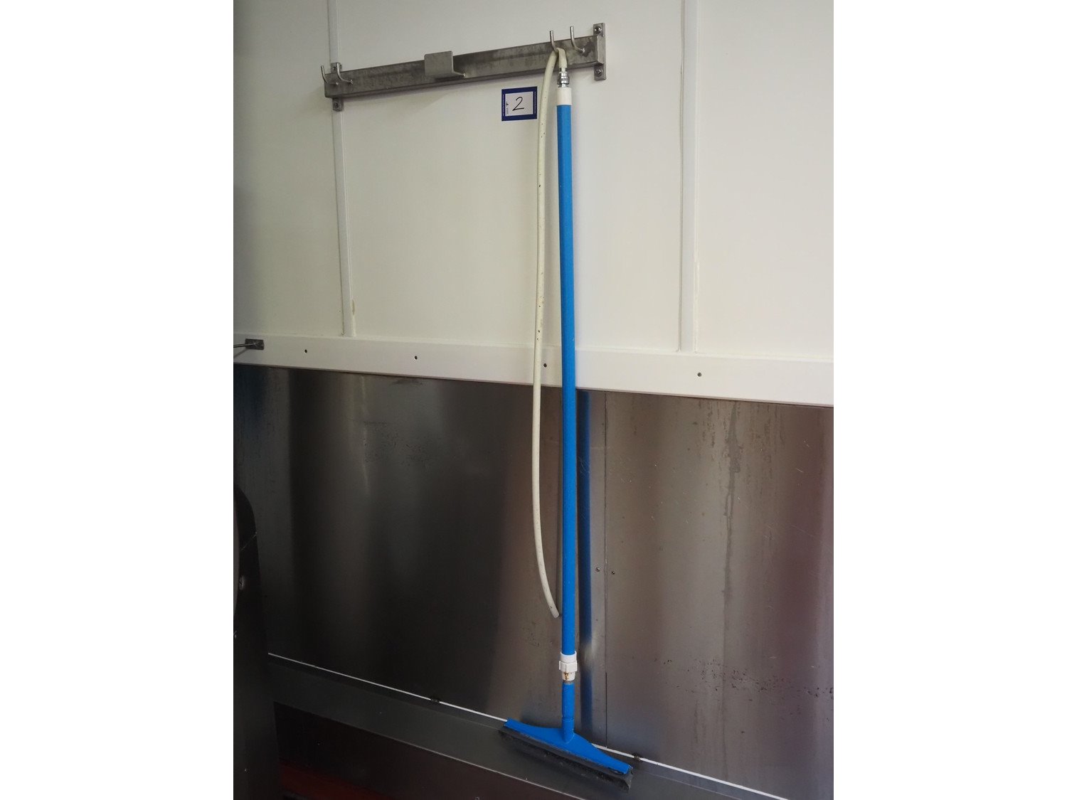 S/s peg with Vikan squeegee, dimensions peg: 800 mm x 100 mm x 120 mm. Kavel locatie: Bunsenstraat 79, 3316 GC Dordrecht, Nederland
